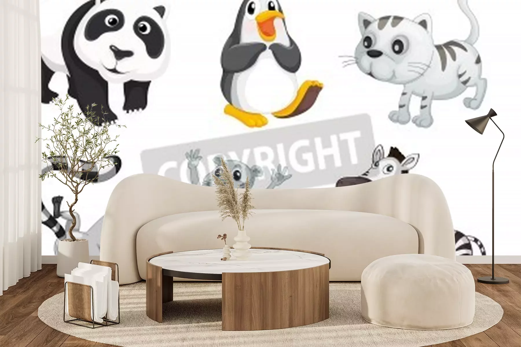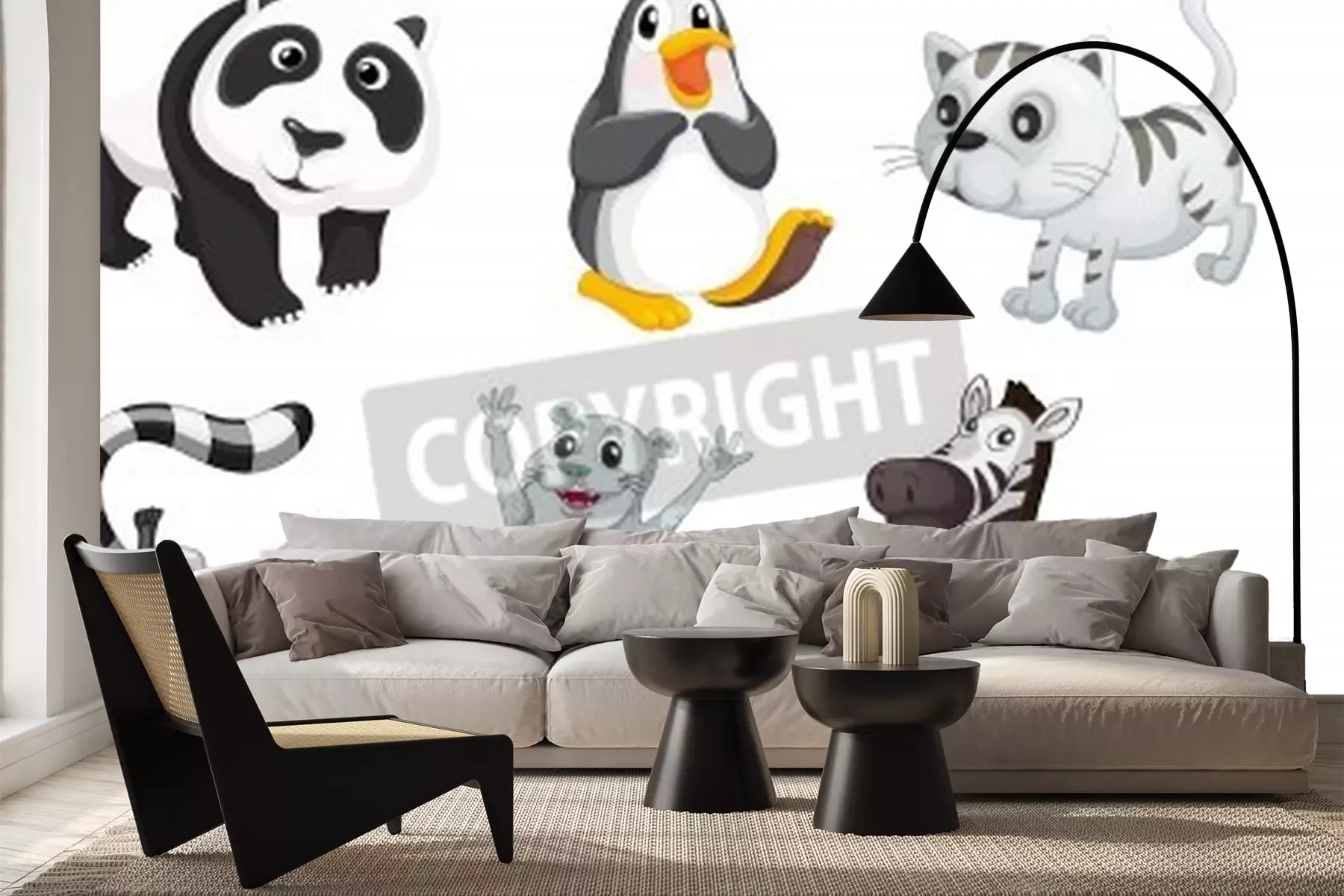 Sticker  Animaux en couleurs noir et blanc et gris