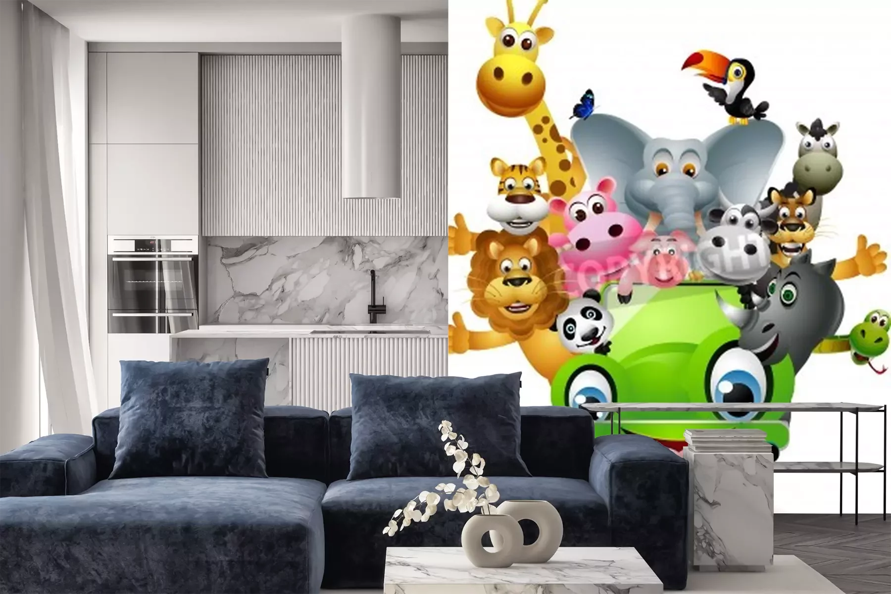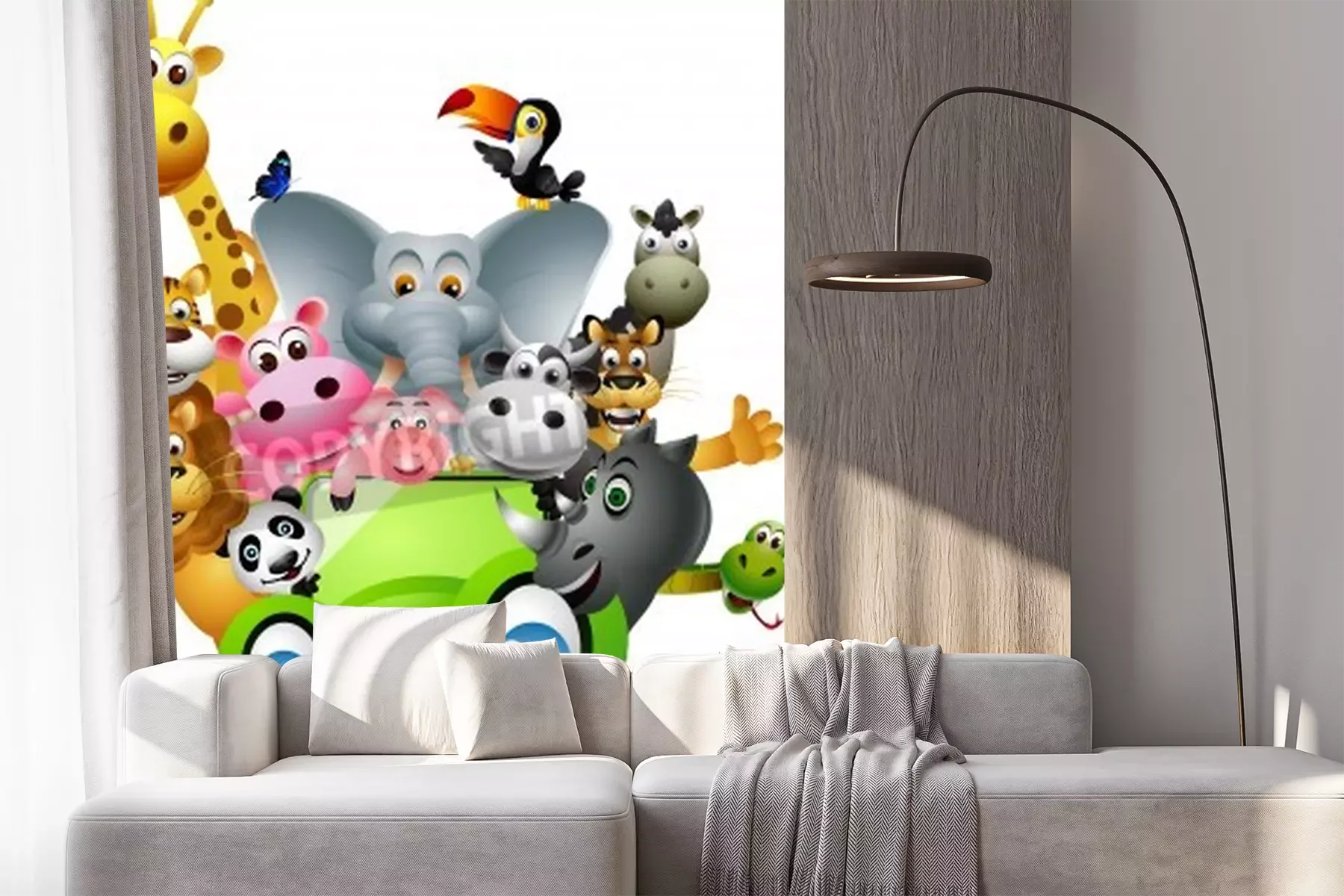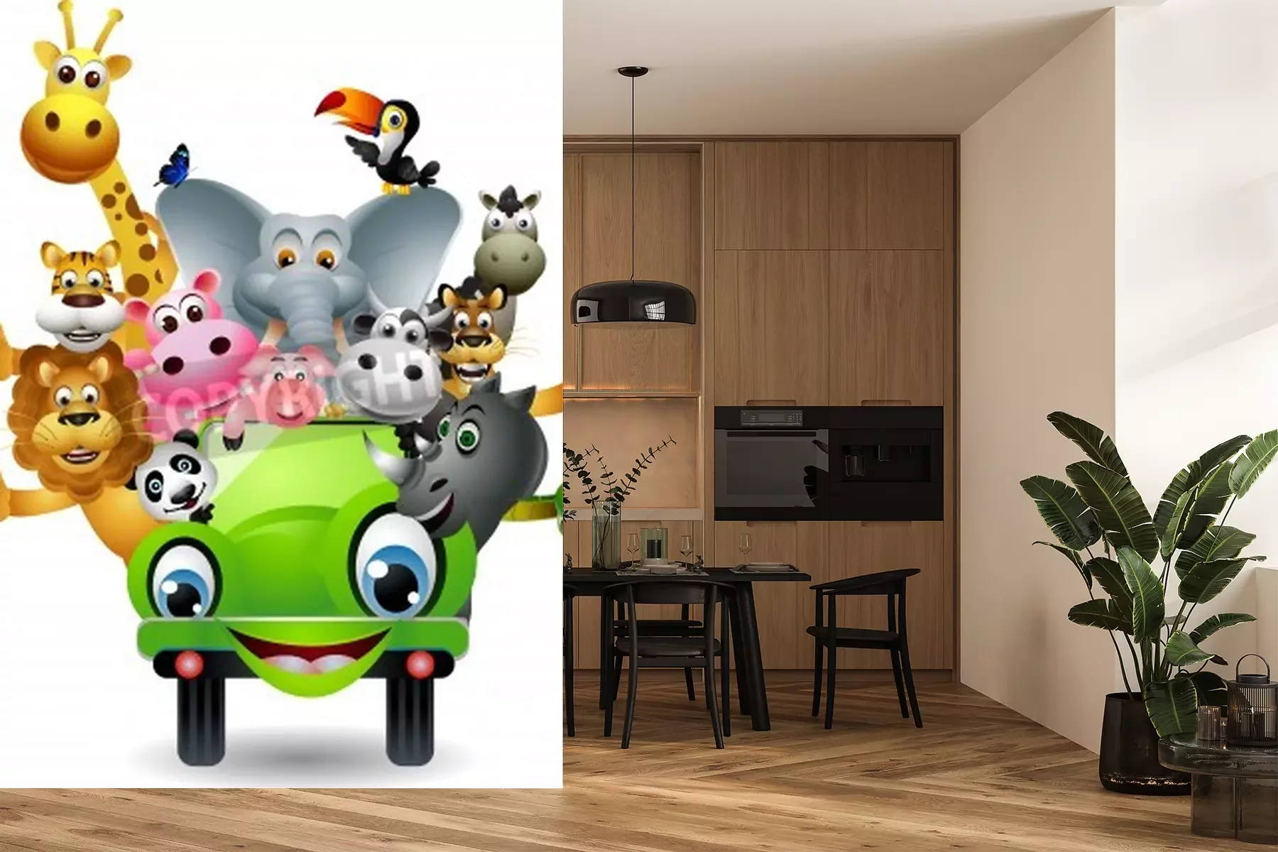 Sticker  Animaux exotiques dans une voiture tout-terrain verte