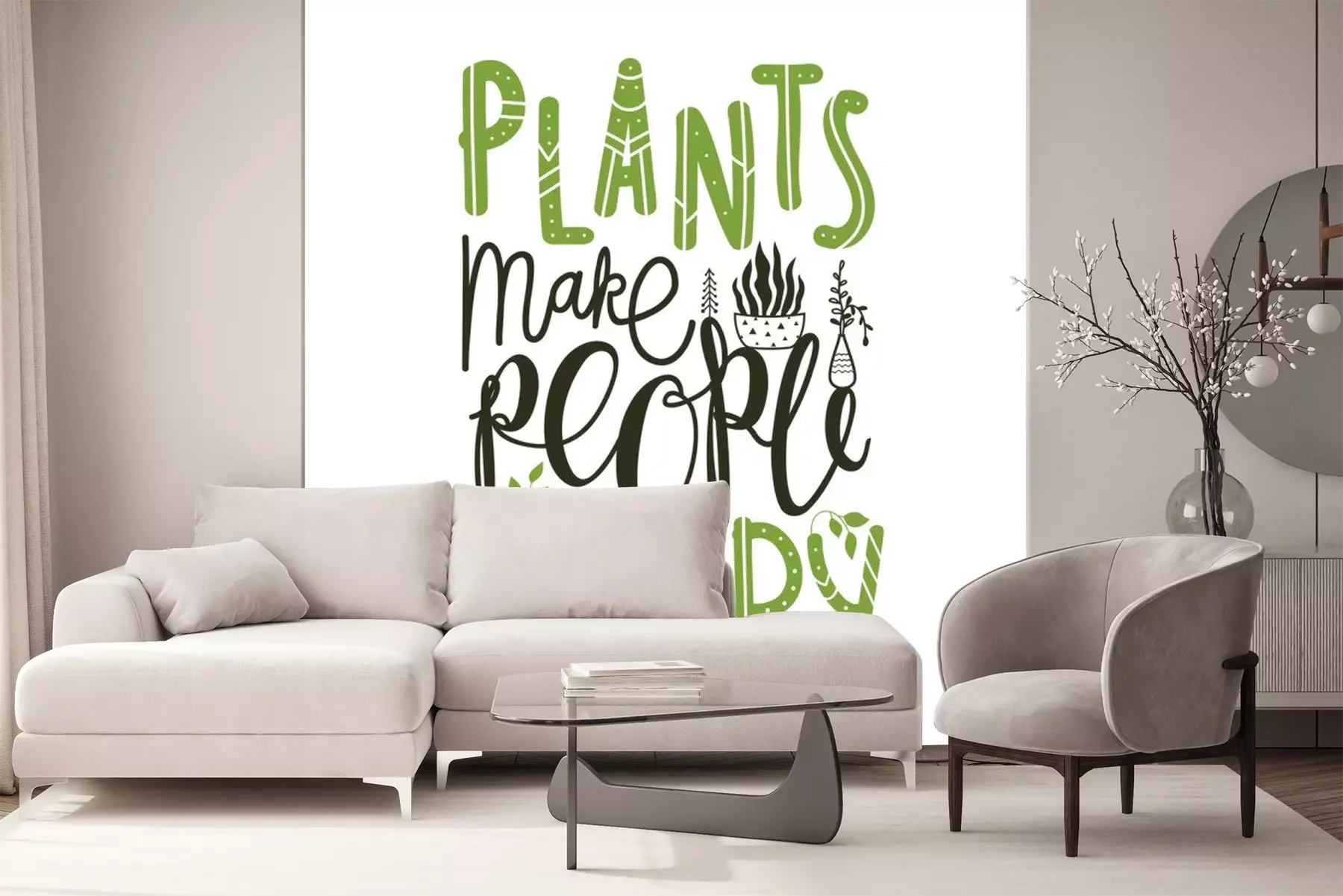 Sticker  Apparel lettering and calligraphy print with quote - plants make people happy.