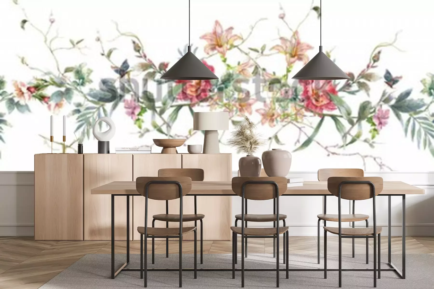 Sticker  Aquarelle de feuilles et de fleurs, modèle sans couture sur fond blanc