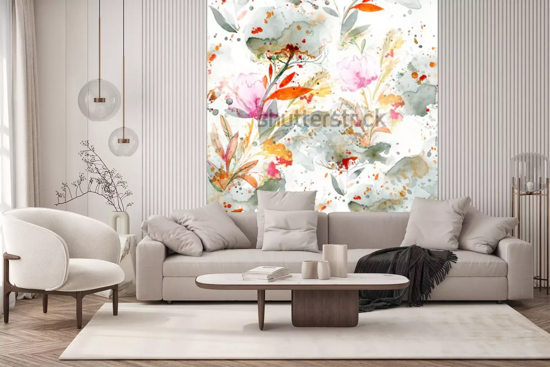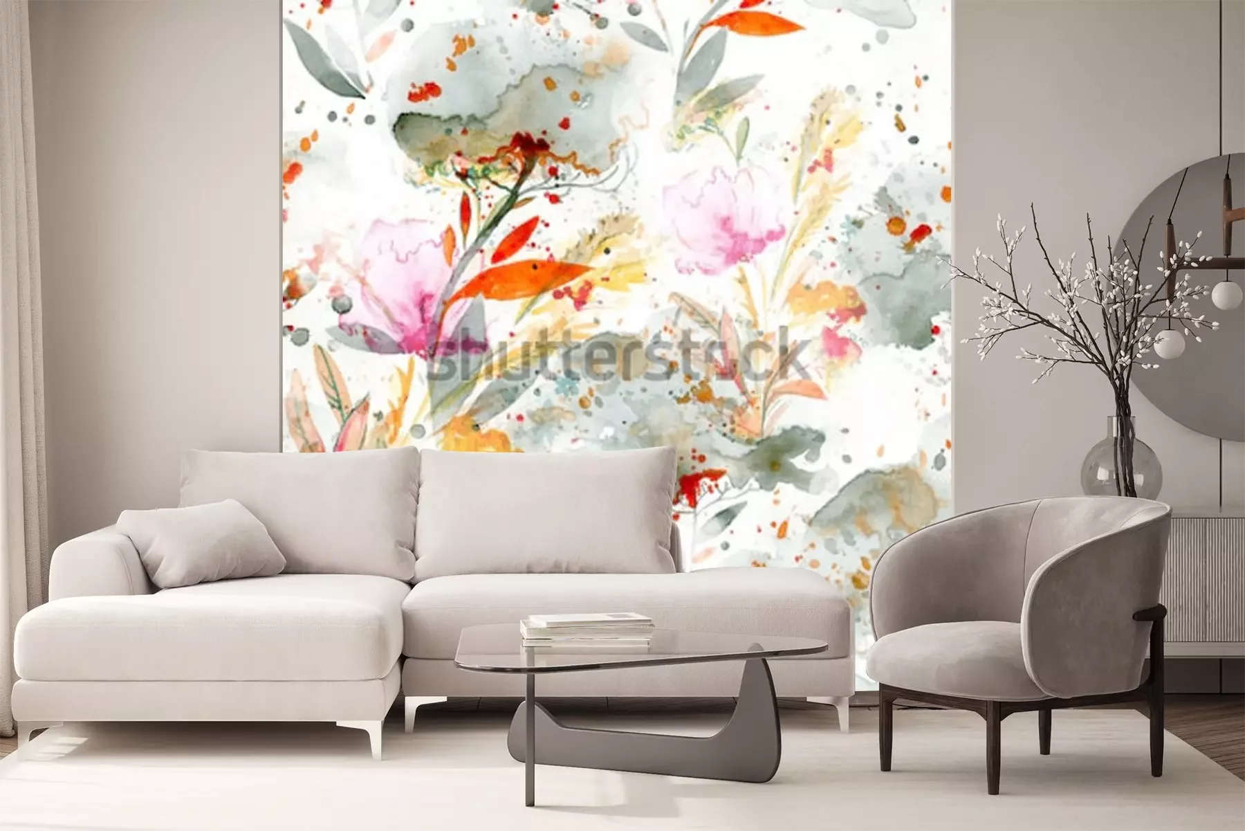 Sticker  aquarelle naïve - verser et éclabousser. motifs floraux. modèle sans couture peint à la main. fond pour la décoration et le design textile. papier peint botanique. cadre floral art boho chic