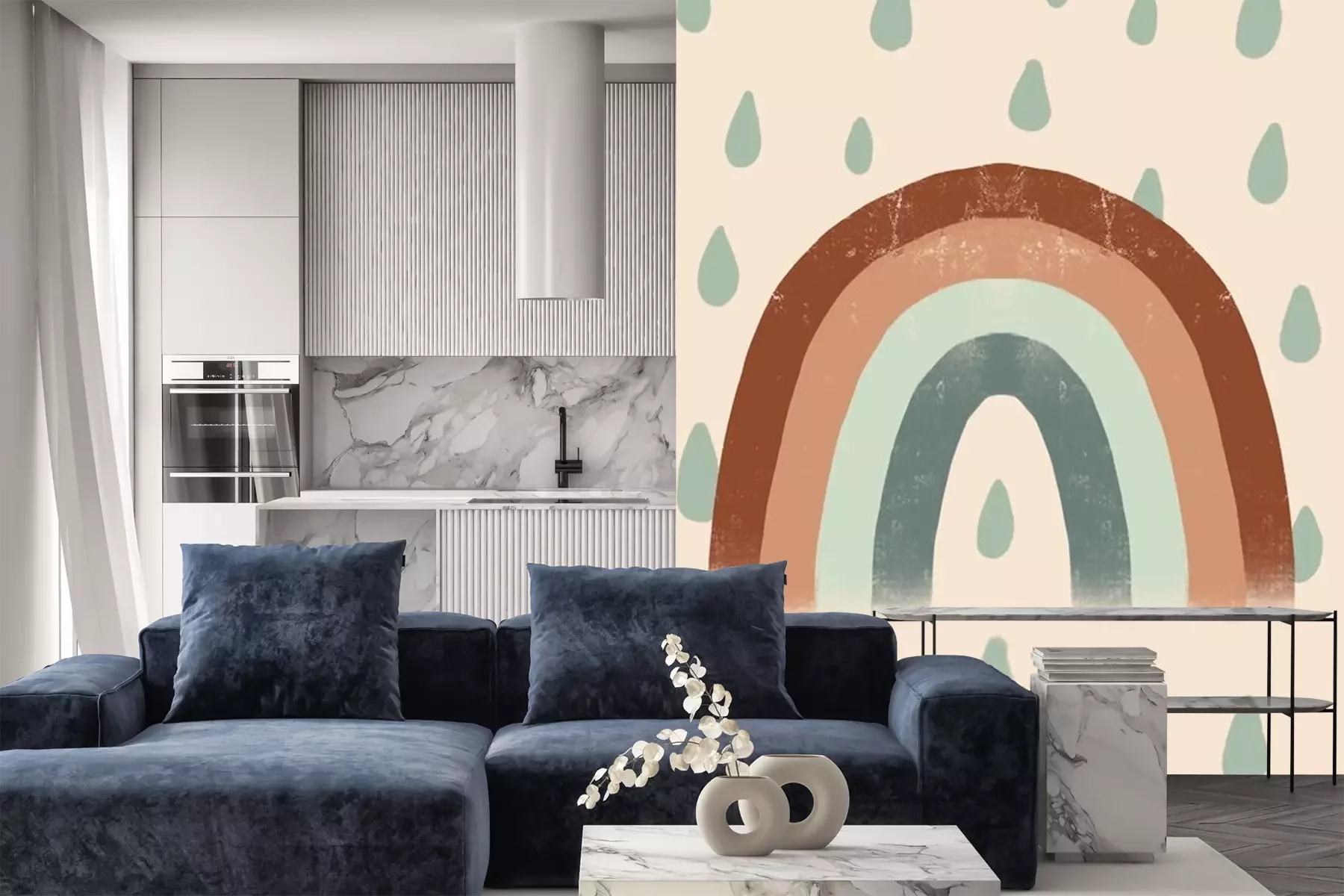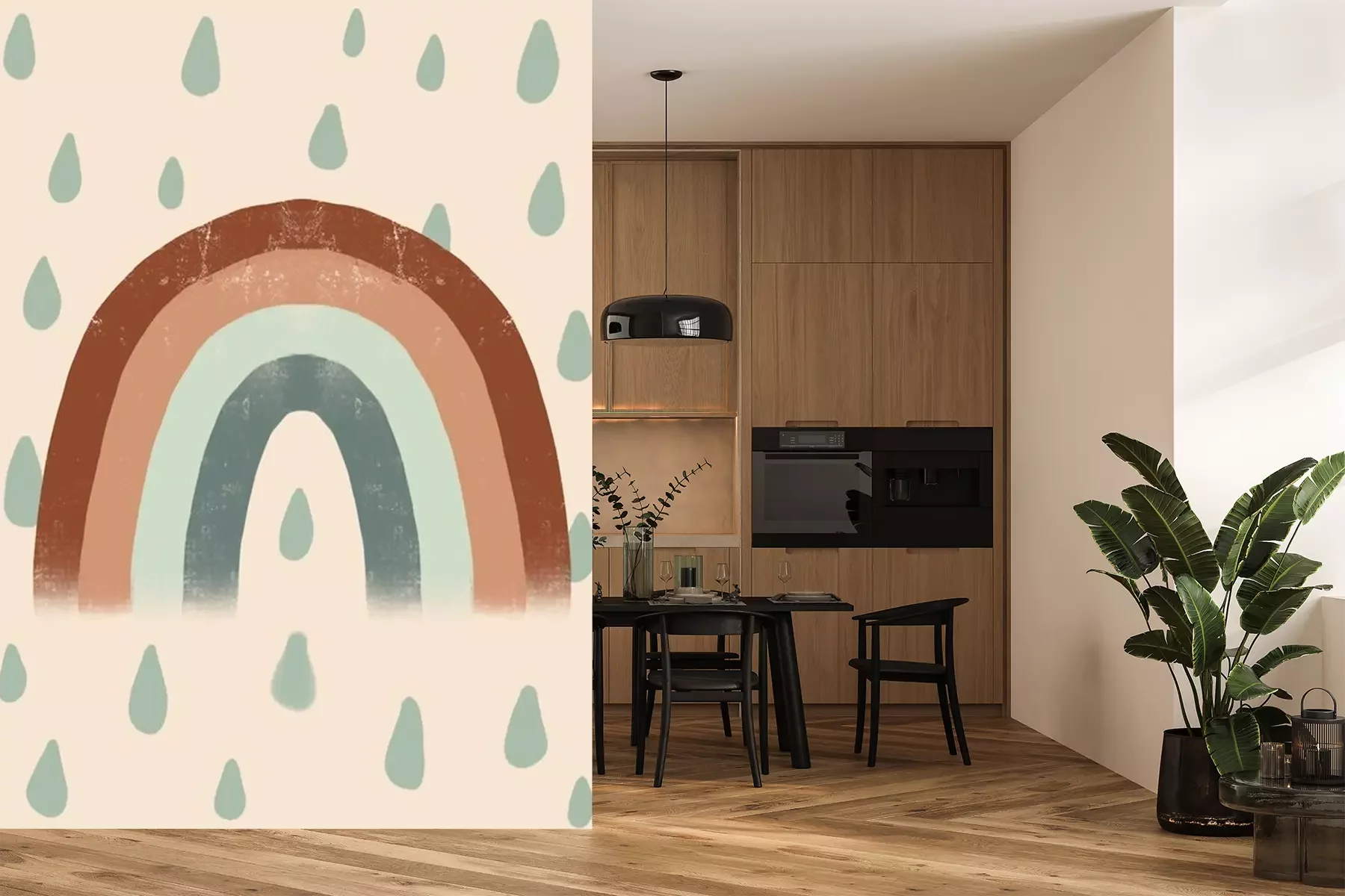 Sticker  Arc-en-ciel avec des gouttes de pluie version style scandinave