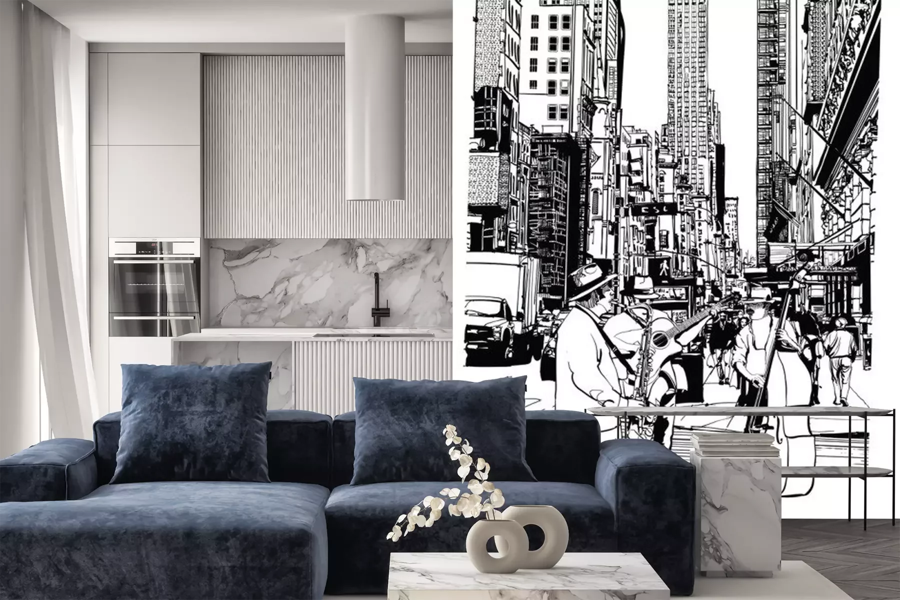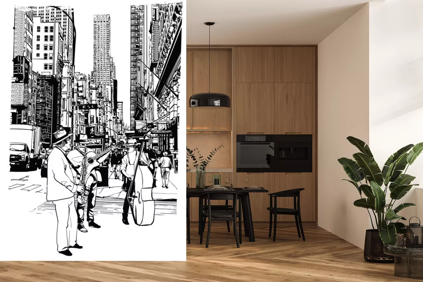 Sticker  Artistes de rue jouant de la musique sur la 5ème avenue à New York