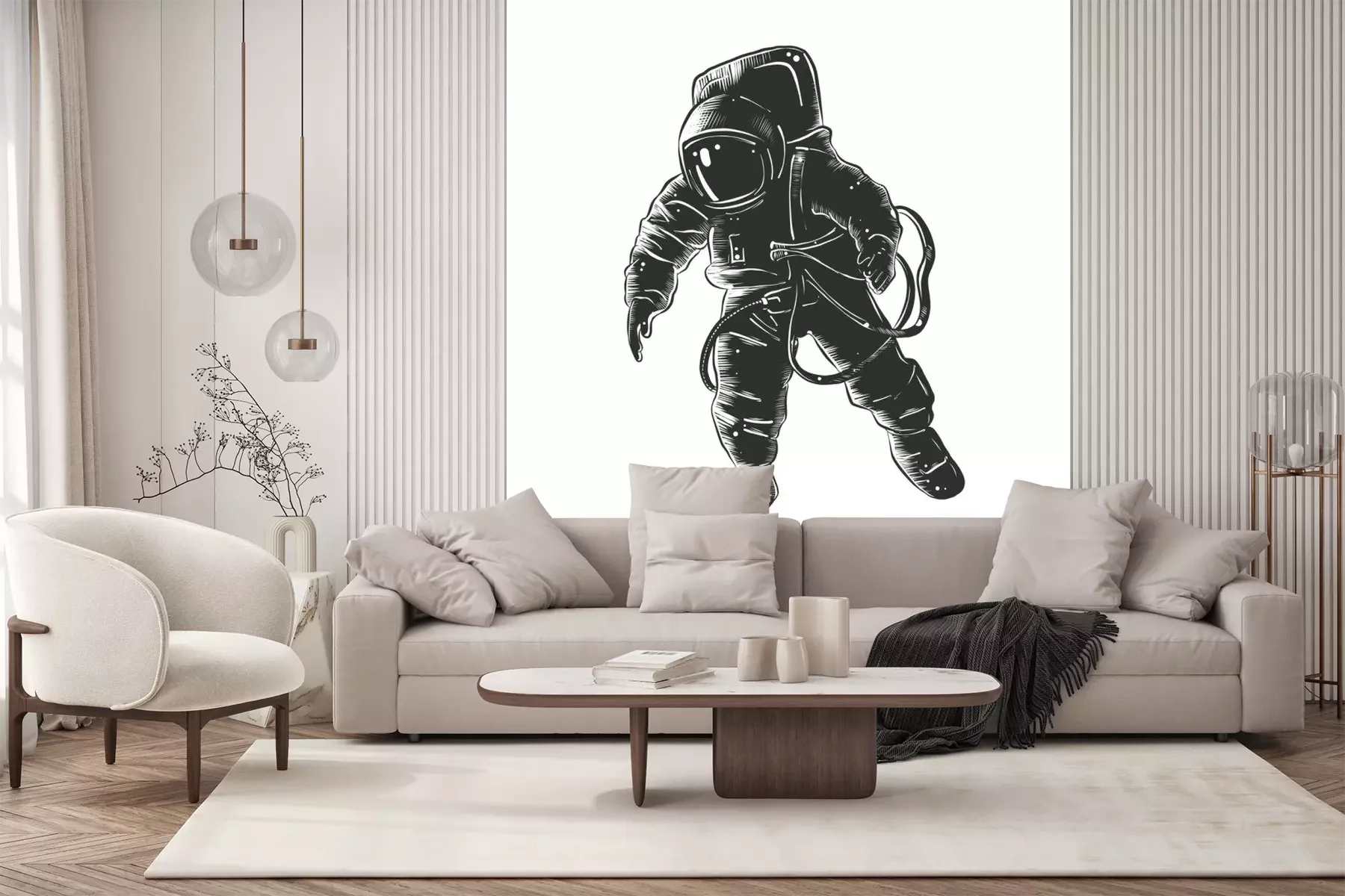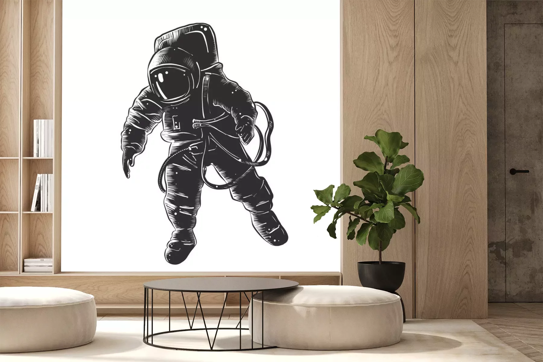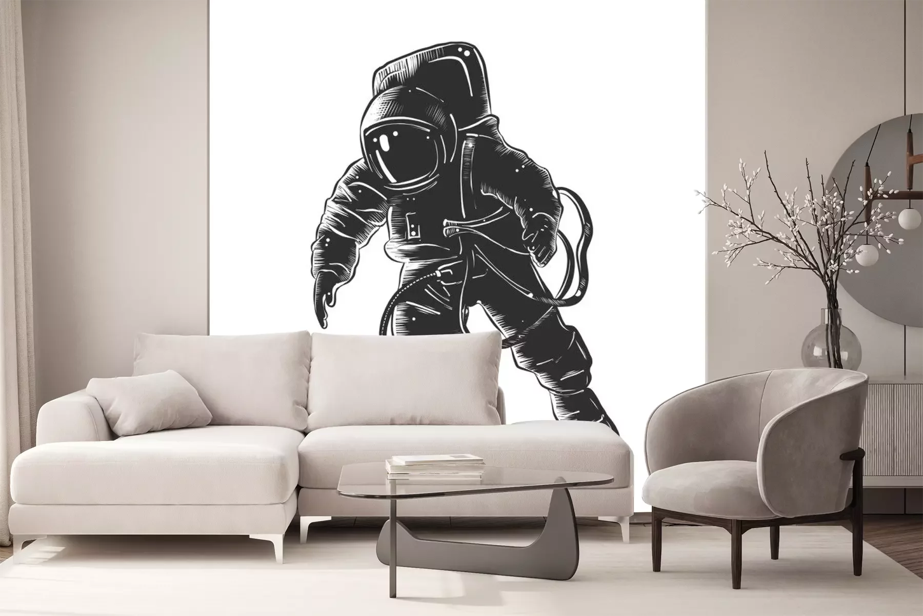 Sticker  Astronaute dans une combinaison spatiale illustration en noir et blanc