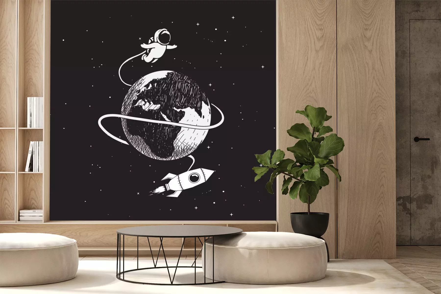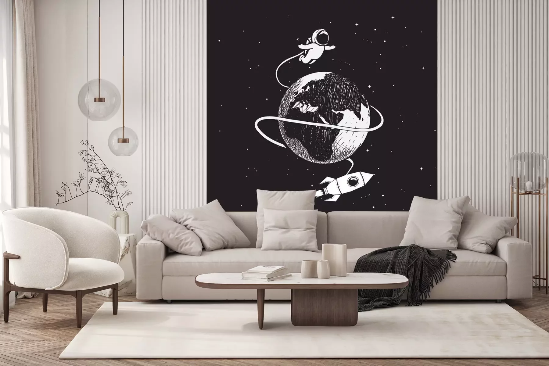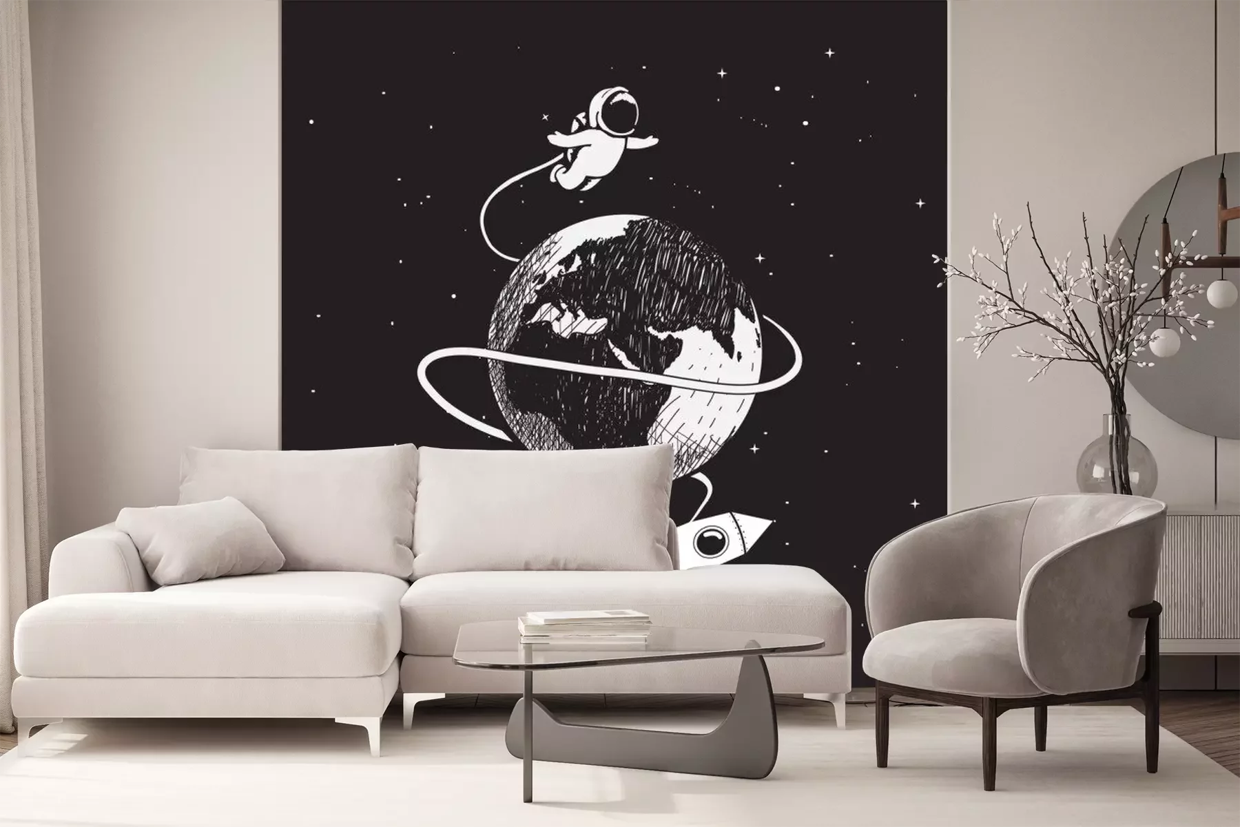 Sticker  Astronaute volant au-dessus du dessin de la terre