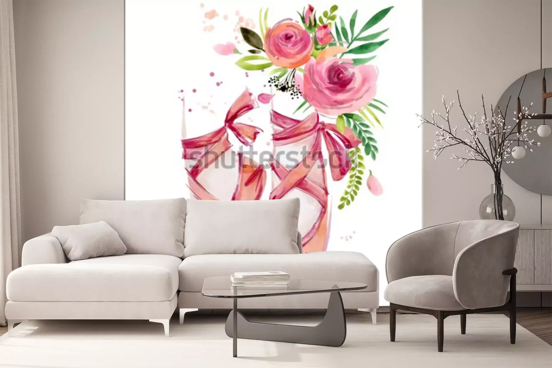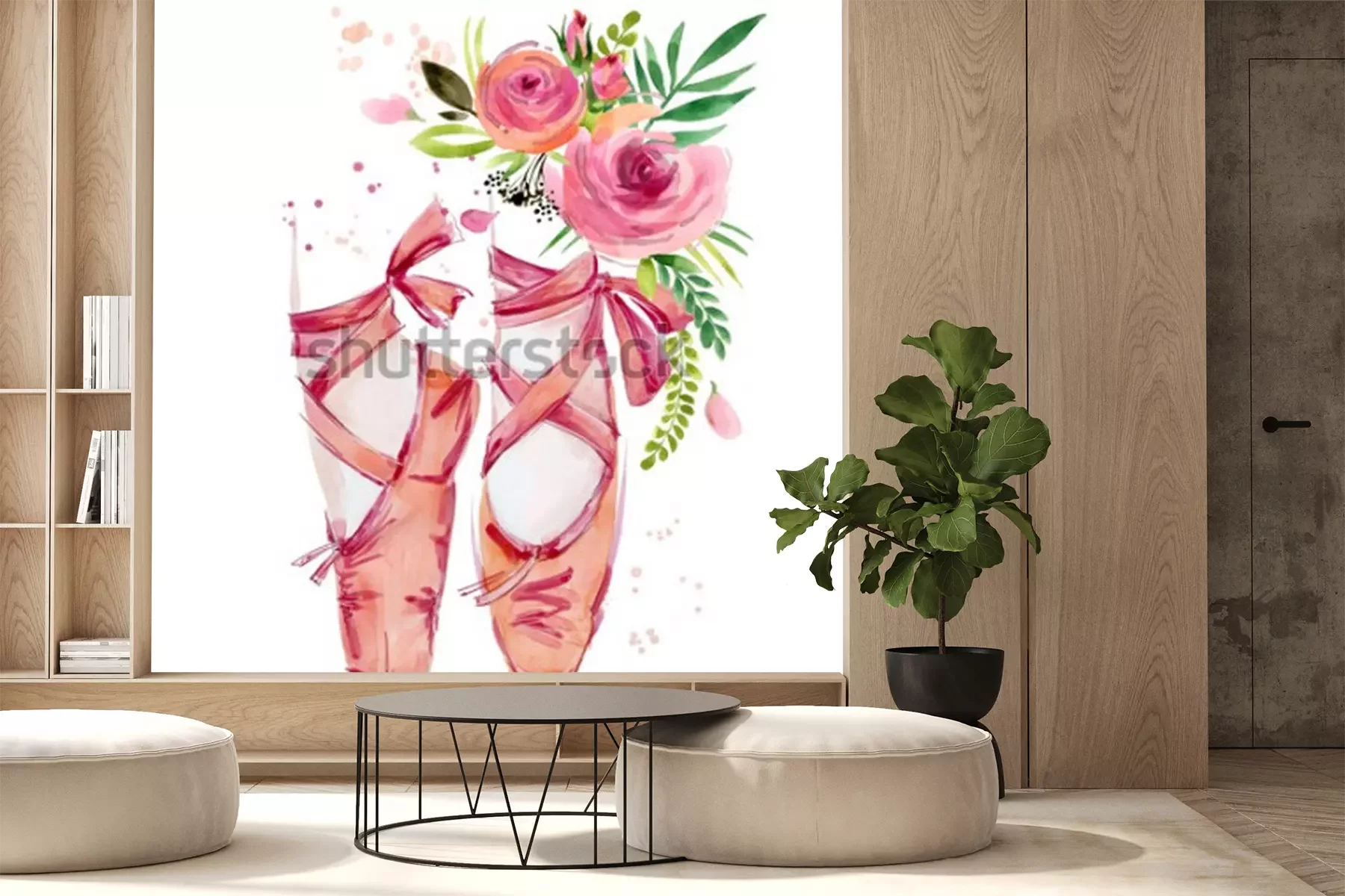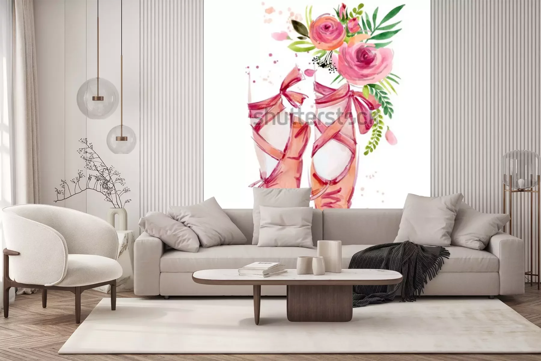 Sticker  Ballerine pieds et fleurs aquarelle illustration