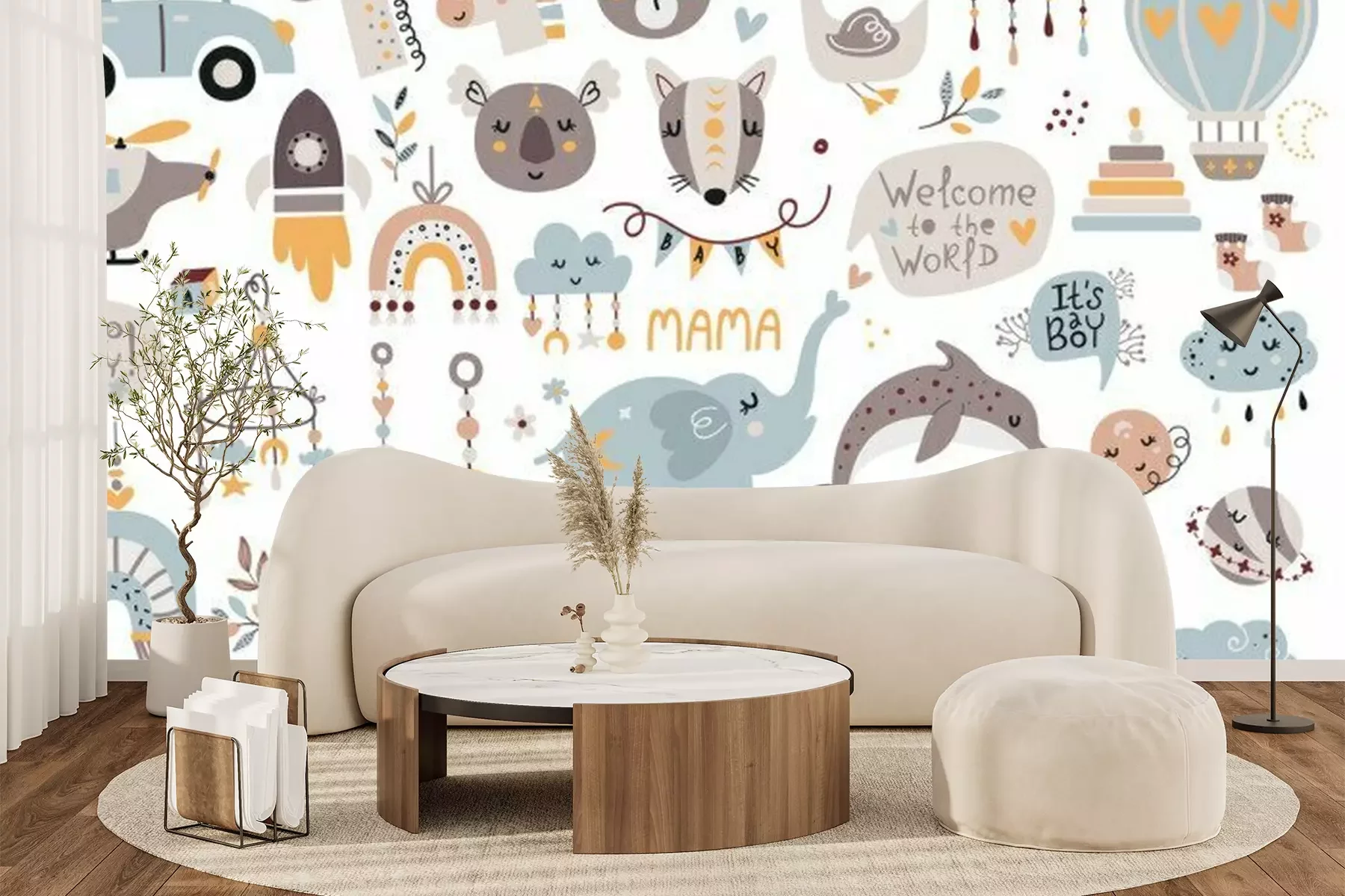 Sticker  Big set of bohemian baby shower elements.