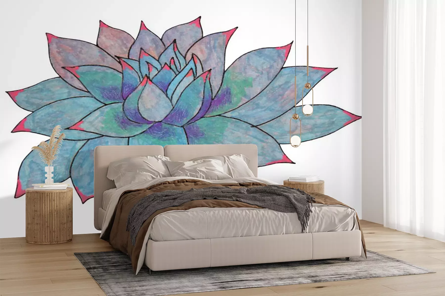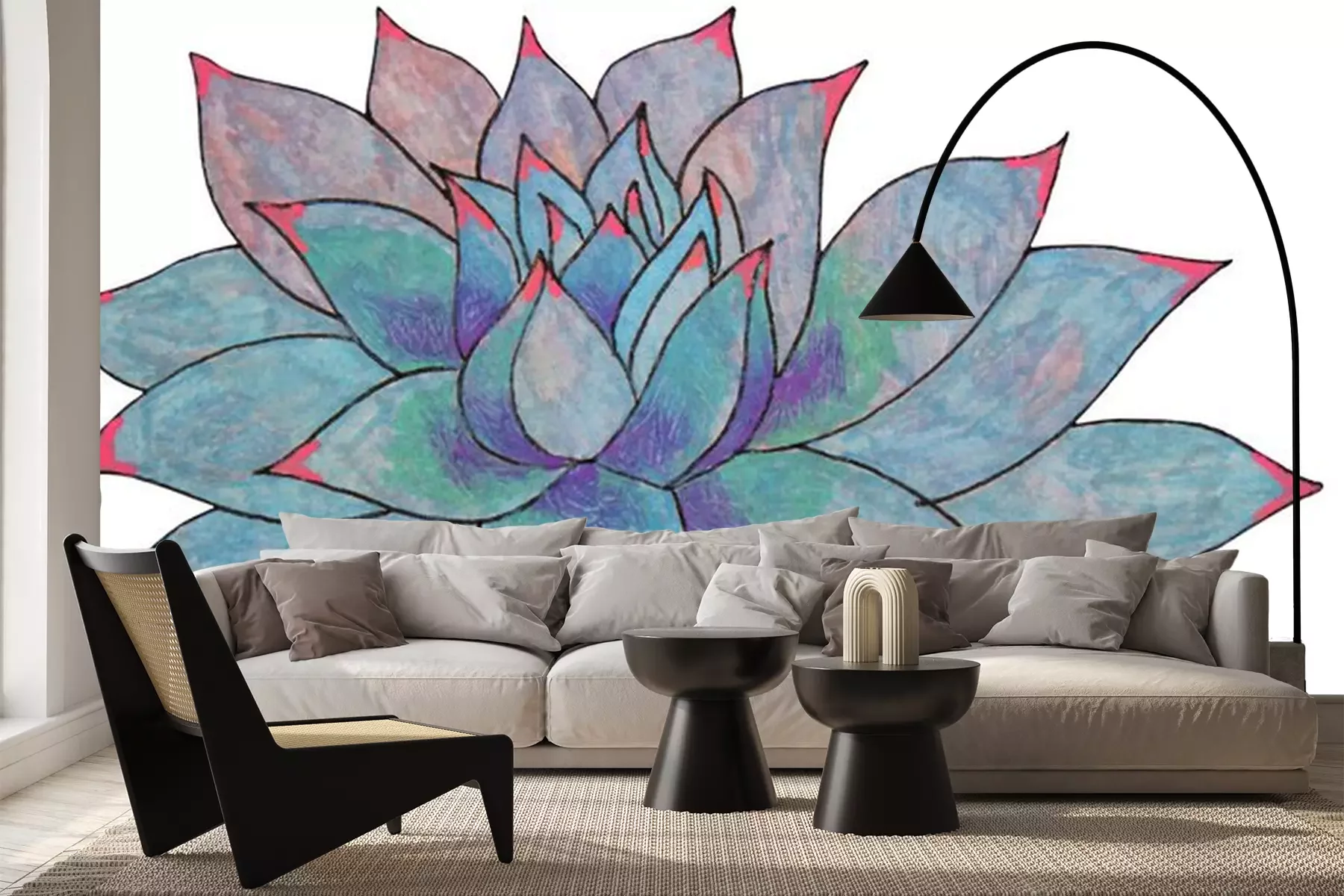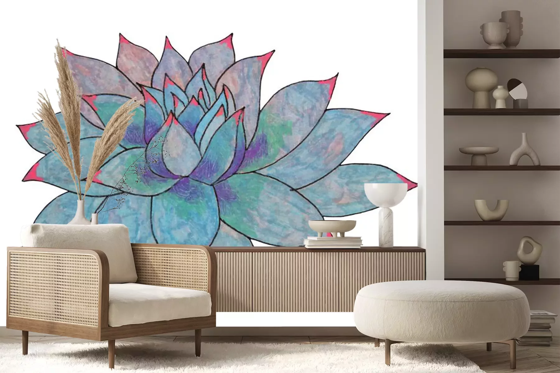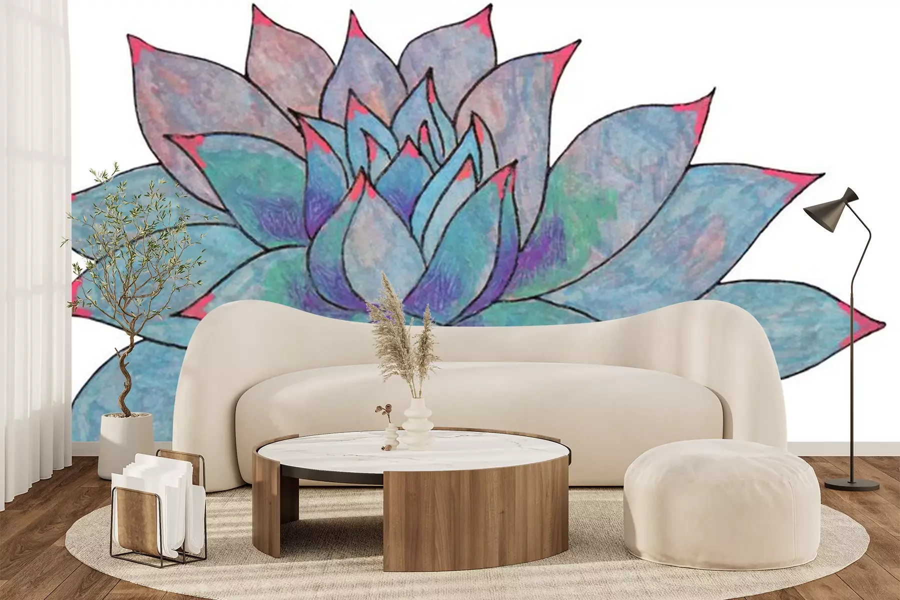 Sticker  Blue leaves succulent echeveria home plant isolated on white background. Art creative nature hand-drawn object for card, sticker, wallpaper, textile, wrapping, poster, florist, notebook