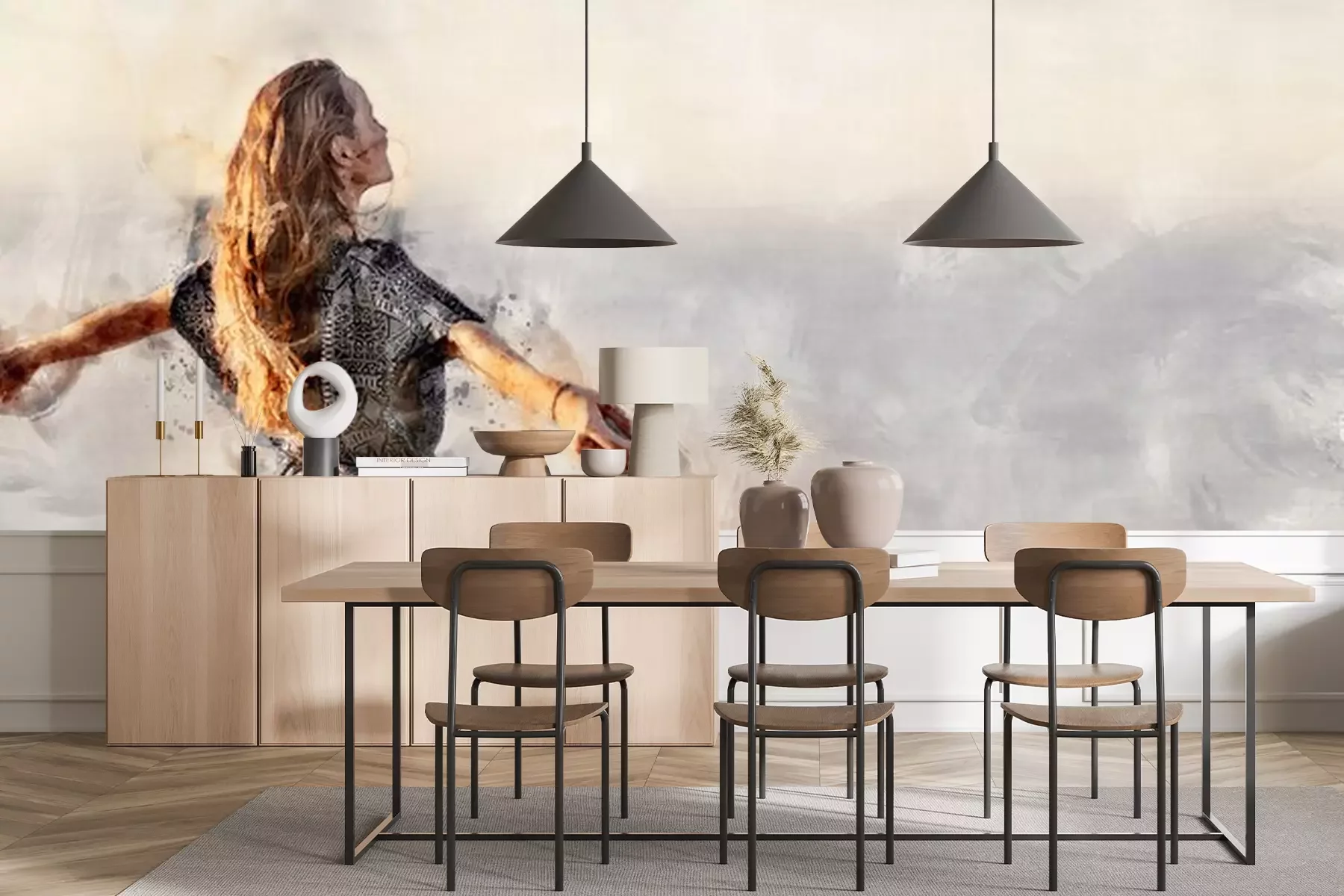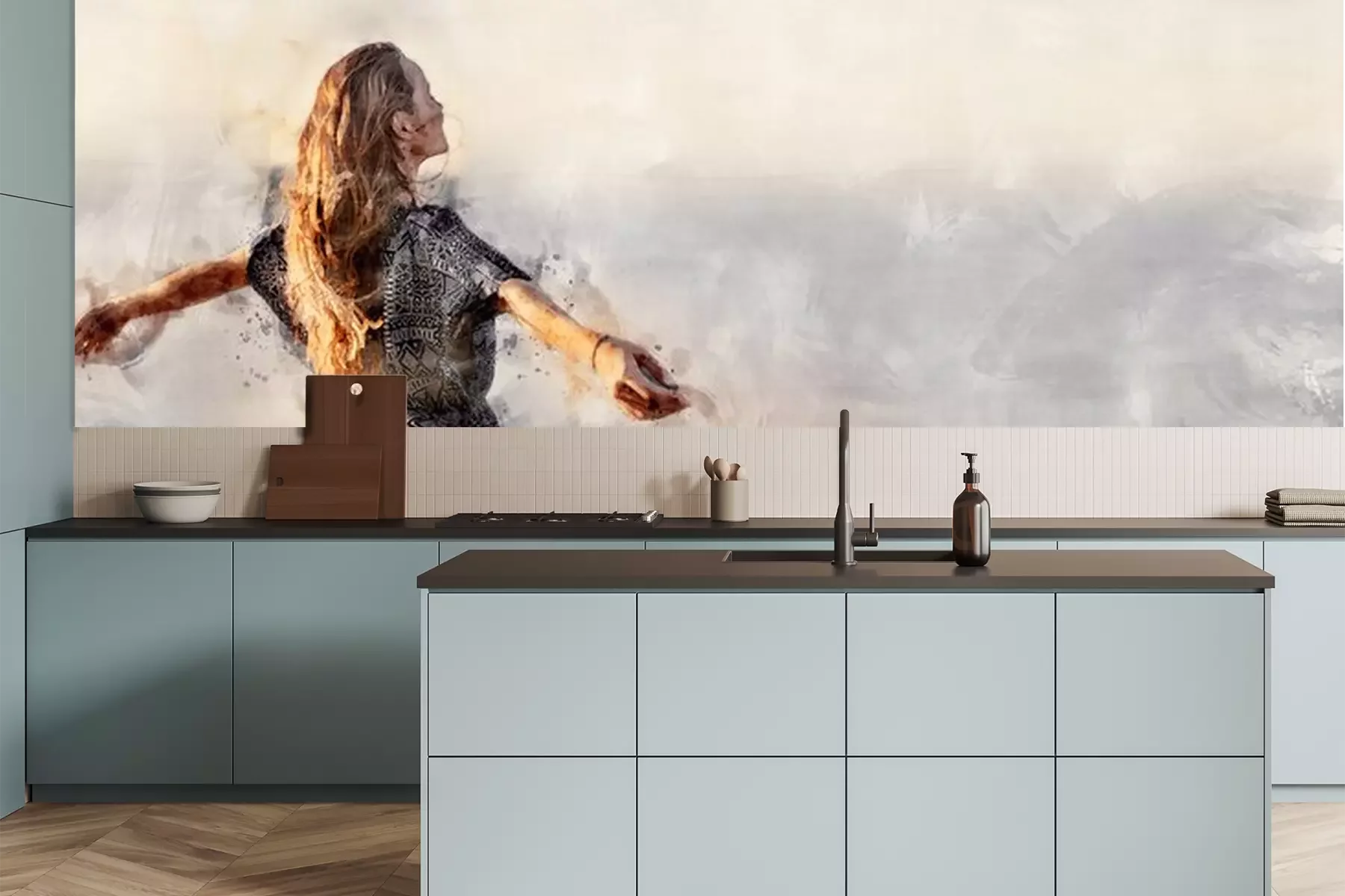 Sticker  Christian worship and praise. A young woman is praying and worshiping in the evening. Watercolor style. Copy space.