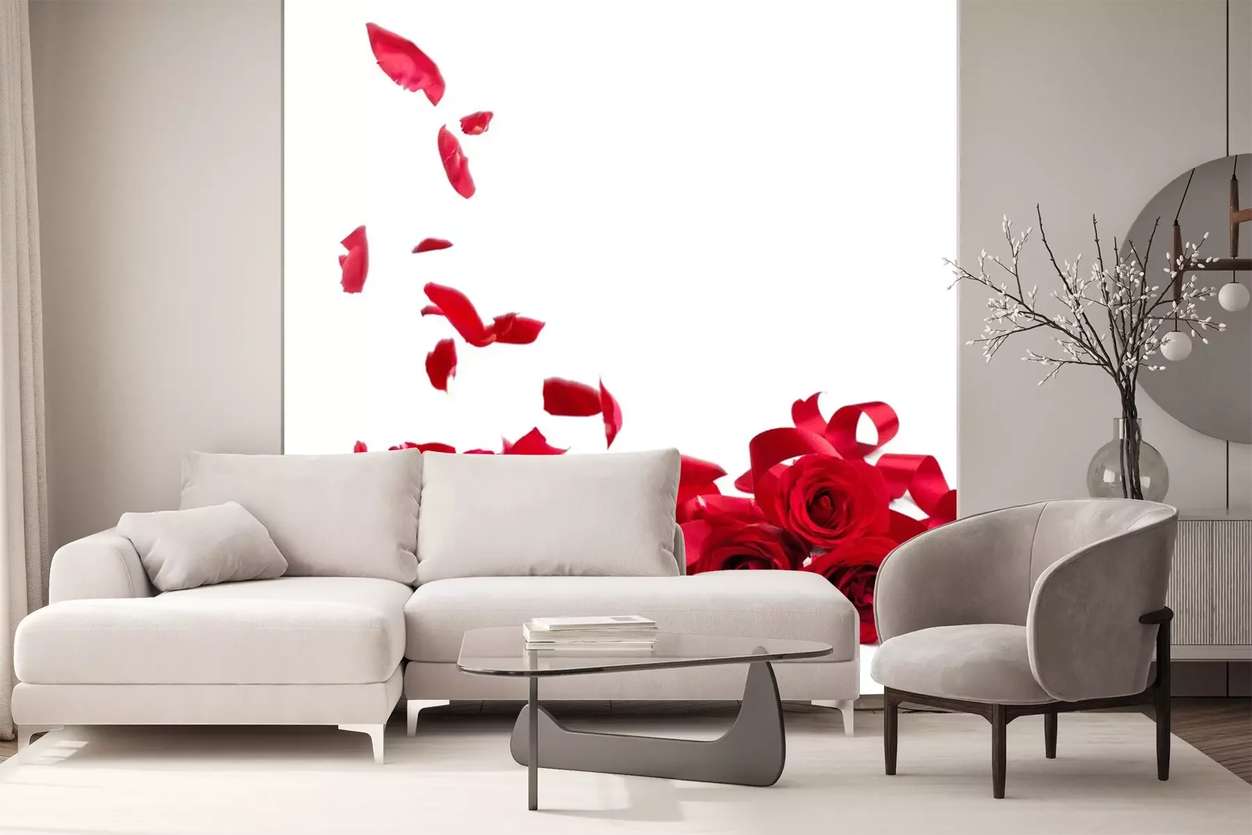 Sticker  Chute de pétales de roses rouges