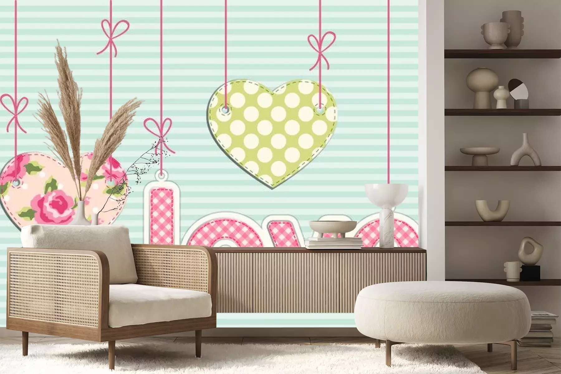 Sticker  Coeurs et inscription style shabby chic