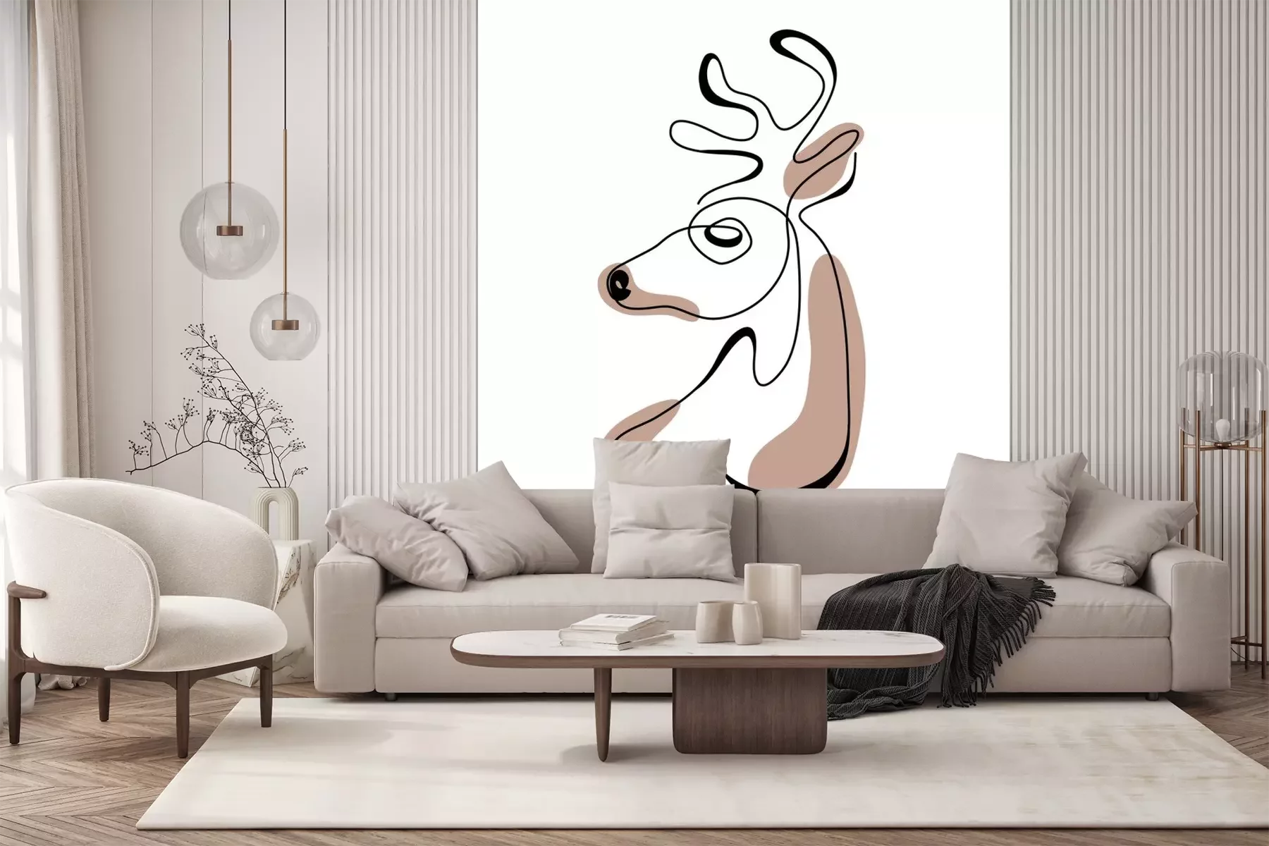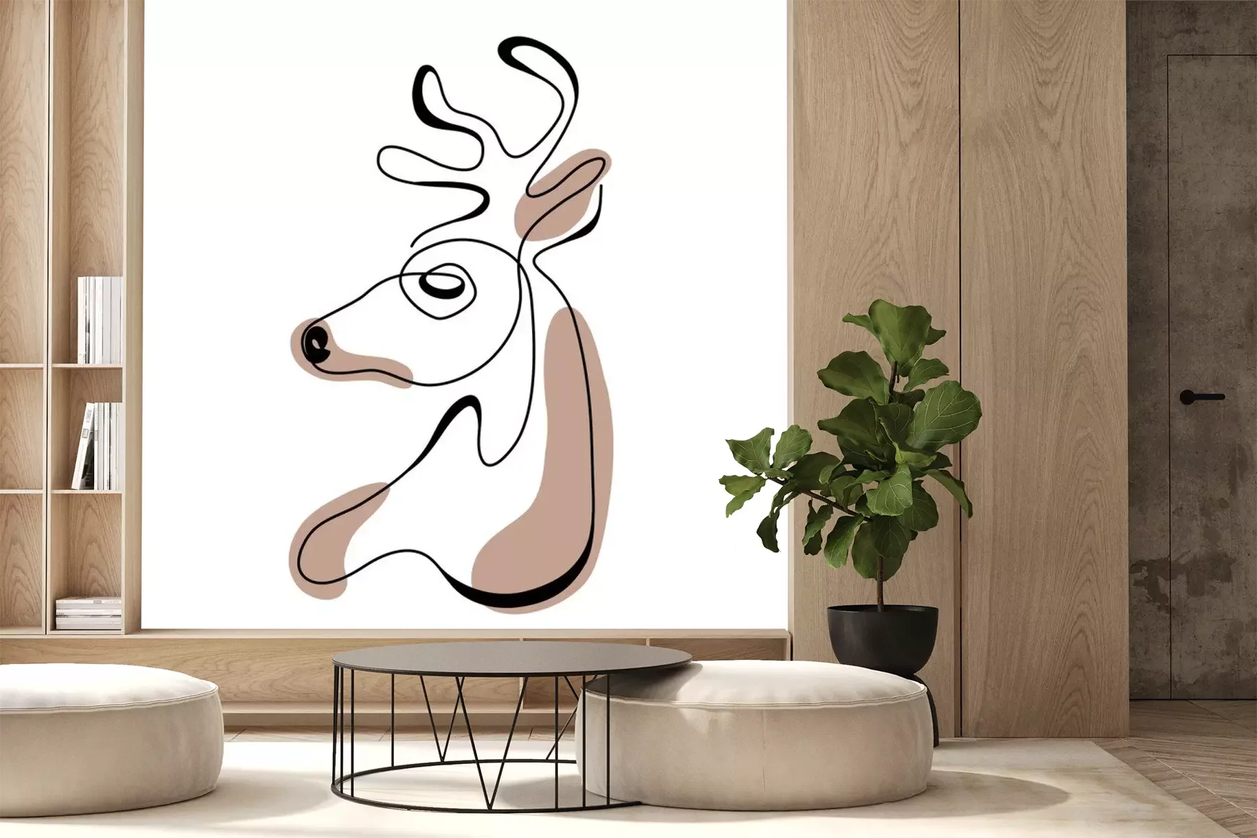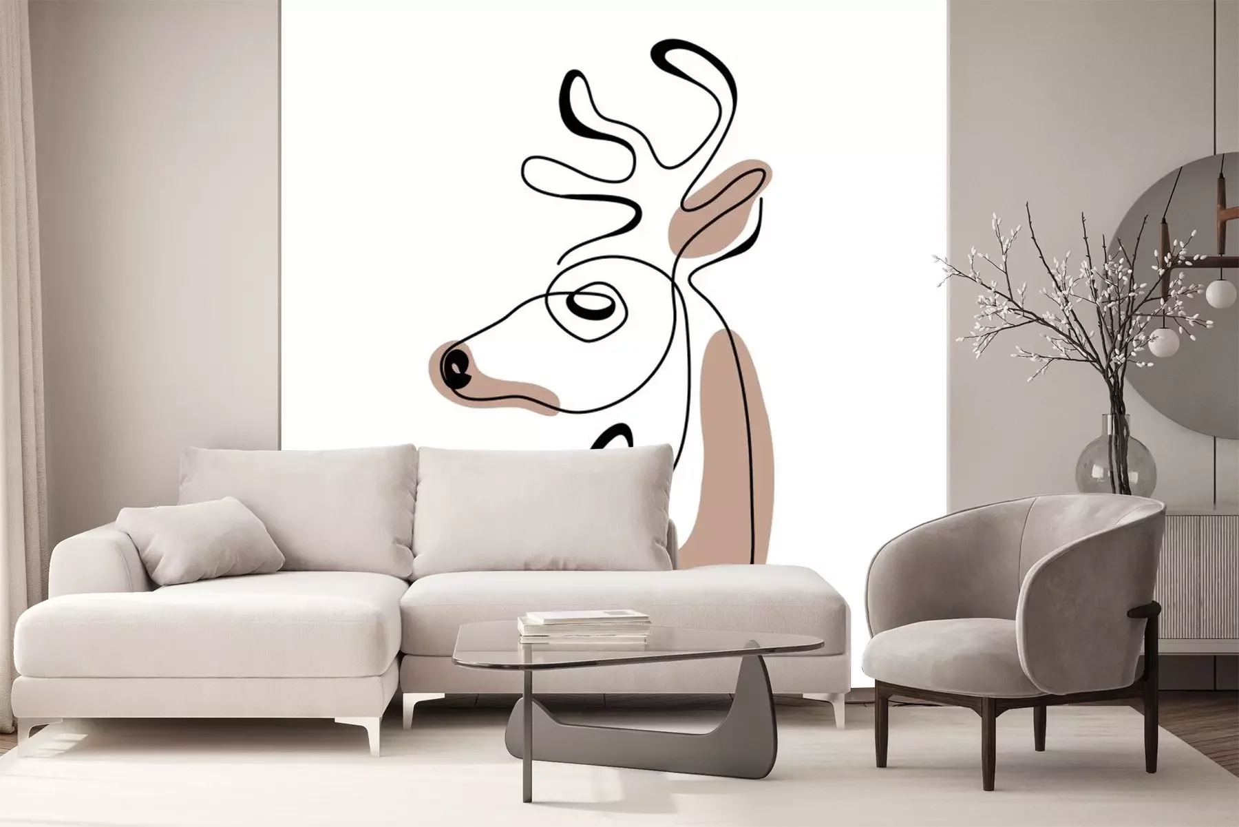 Sticker  Continuous line drawing abstract deer. Modern one line animal illustration, aesthetic contour. Head of Christmas Santa reindeer for greeting cards, prints, poster, sticker, logo. banner. Vector