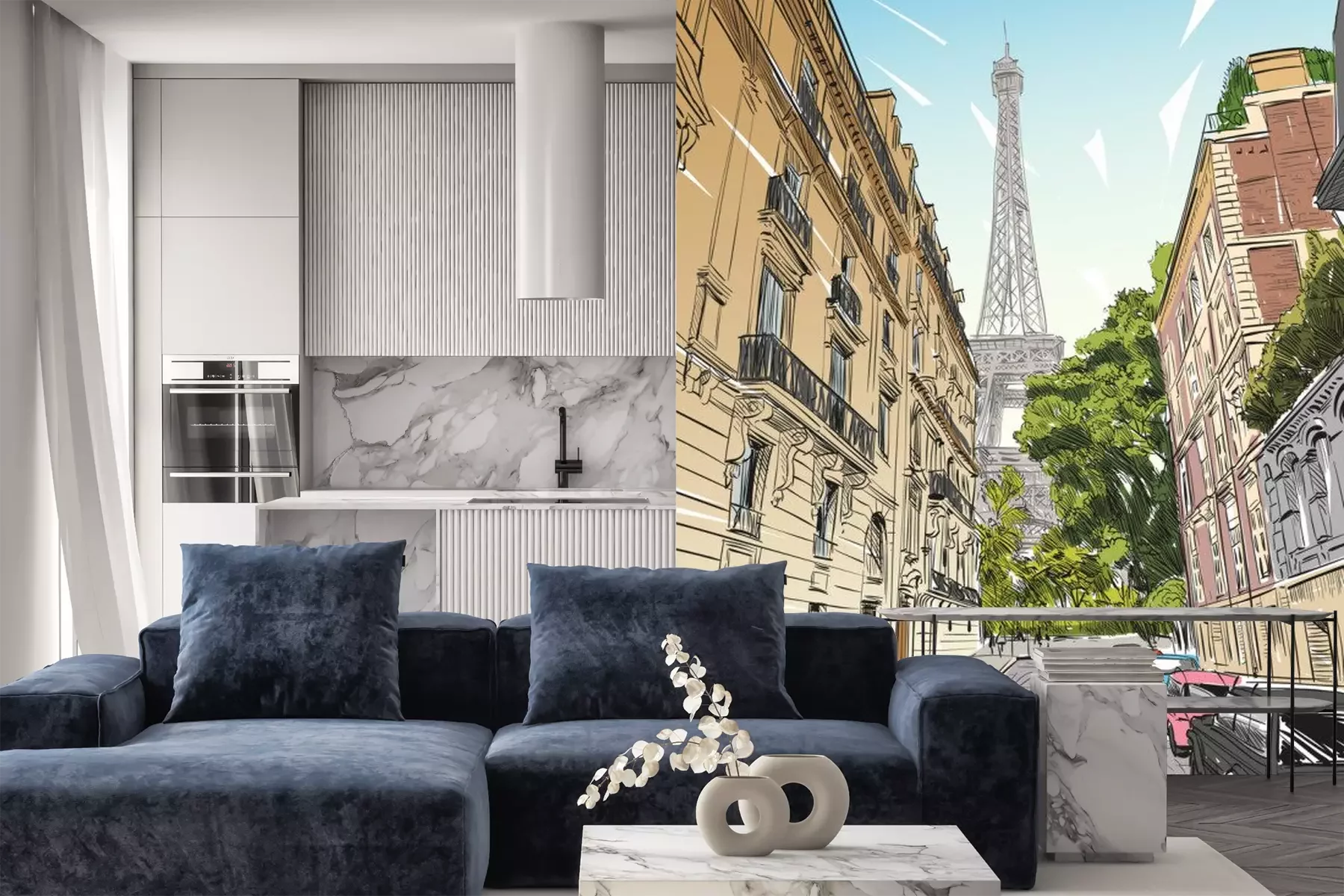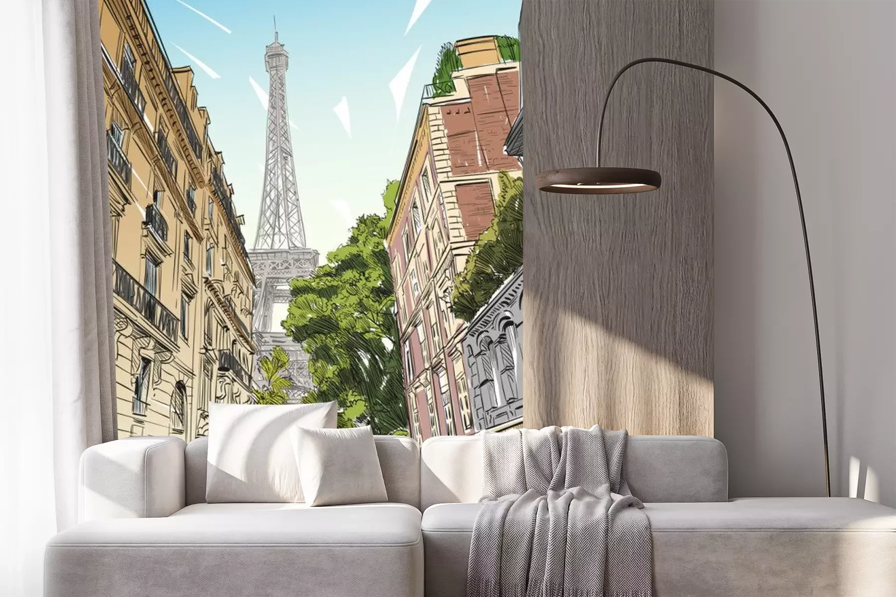 Sticker  Croquis de vecteur de la Tour Eiffel. Paris, France. Illustration vectorielle dessinés à la main