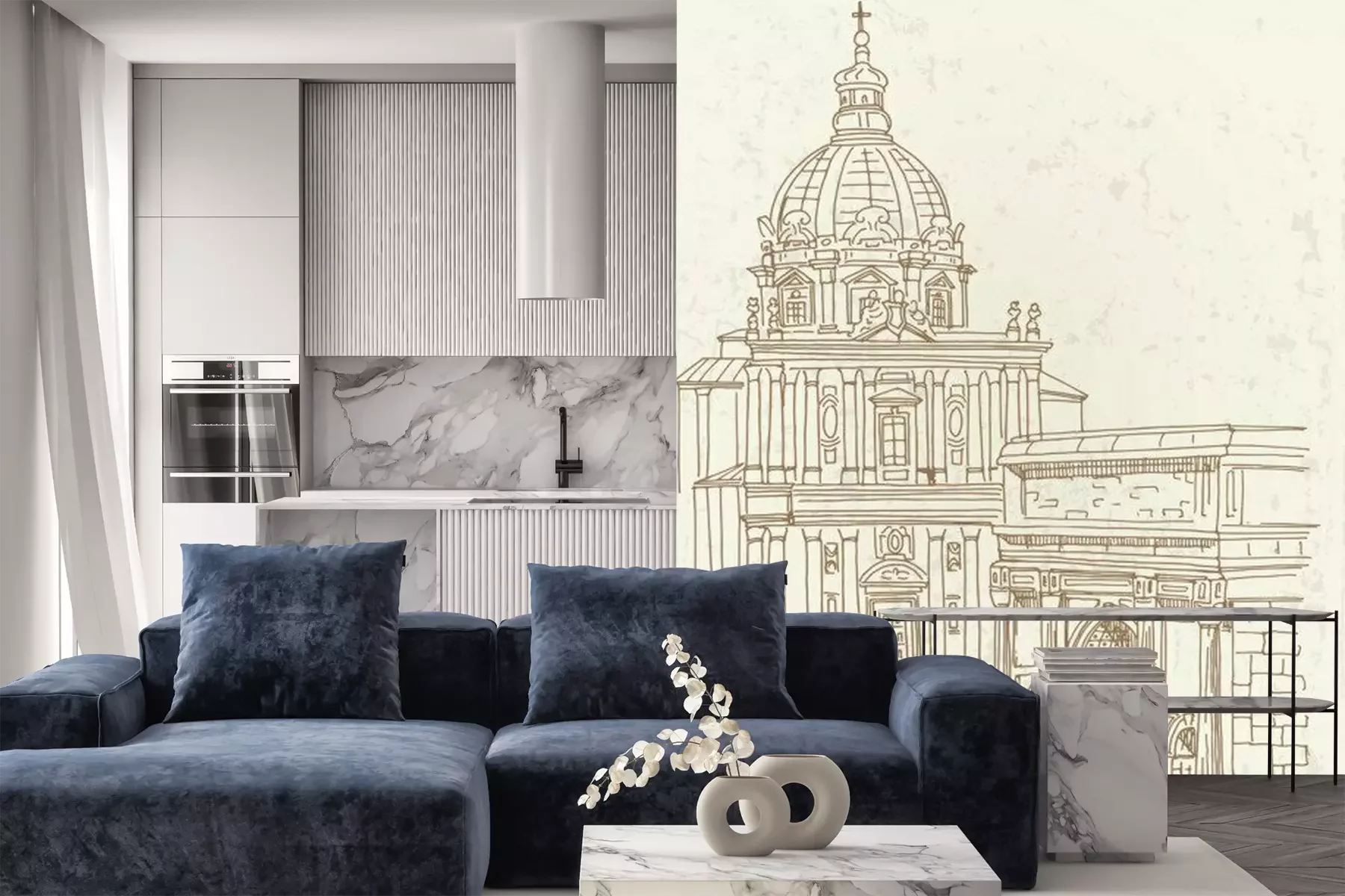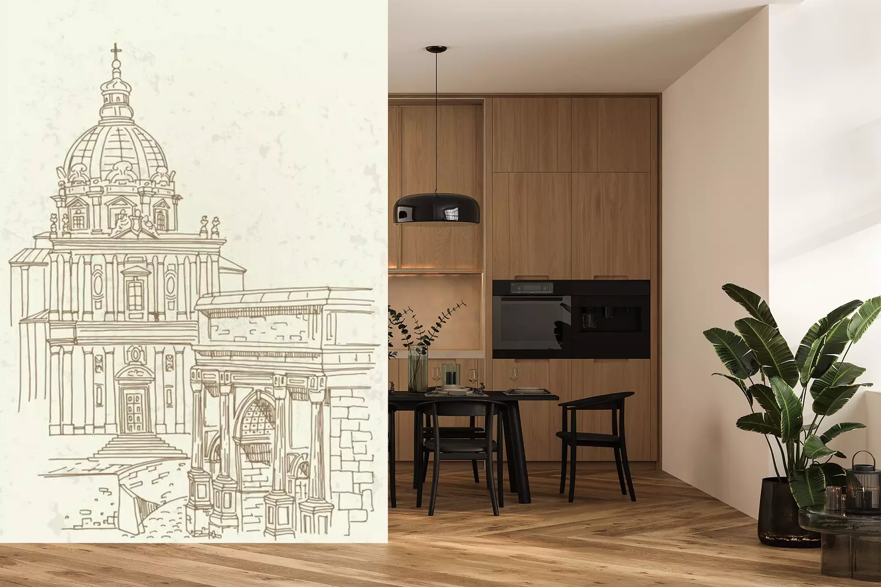 Sticker  croquis de vecteur de ruines antiques d'un forum romain ou Foro Romano, Rome, Italie.