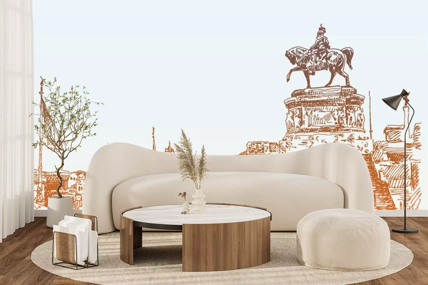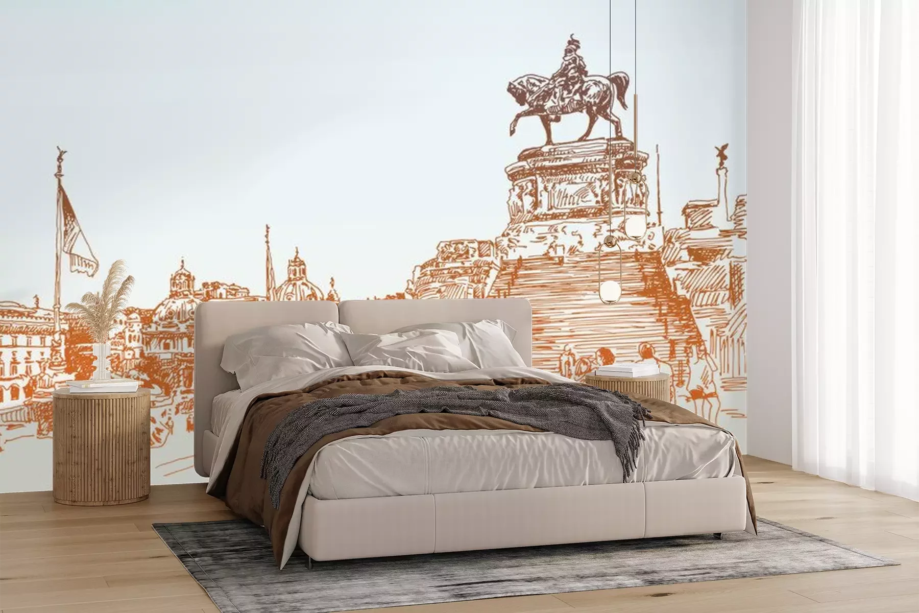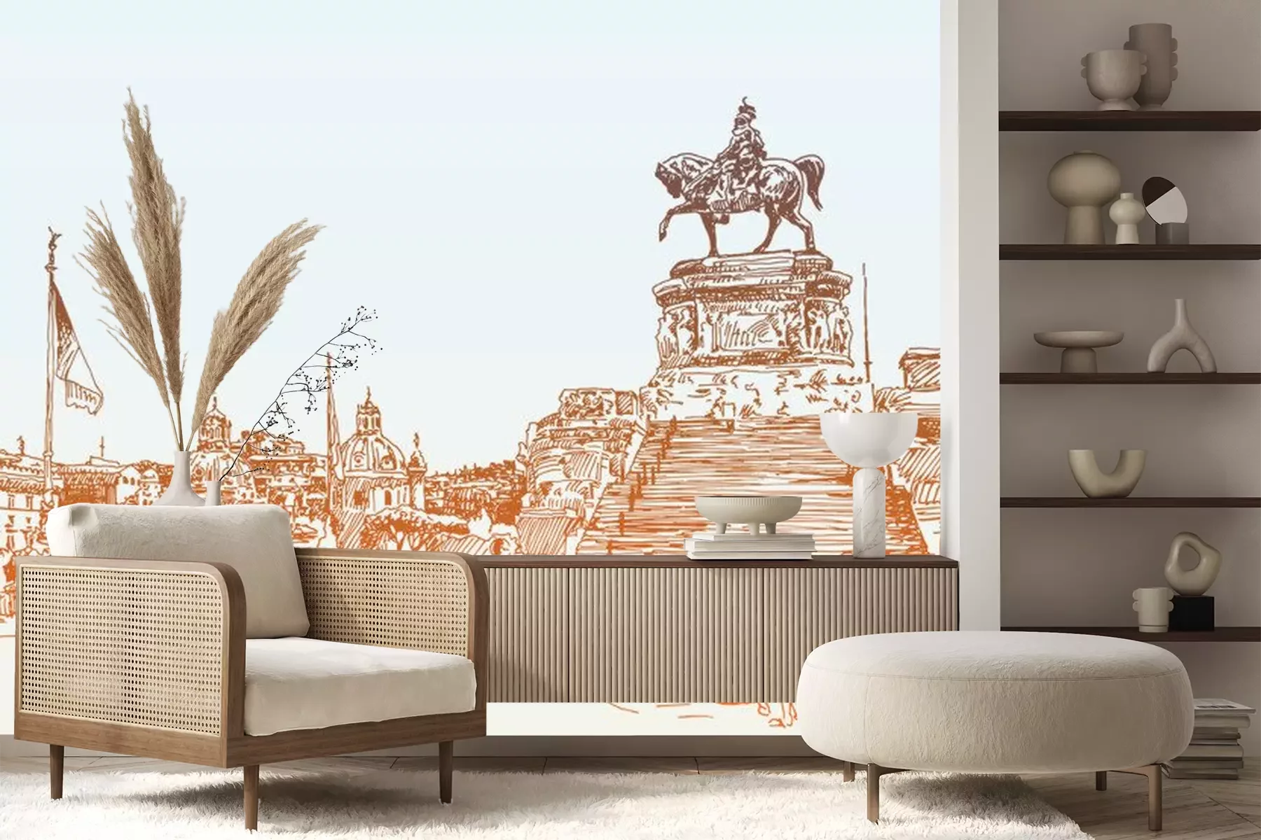Sticker  Croquis, main, dessin, Rome, Italie, célèbre, Cityscape, voyage, carte
