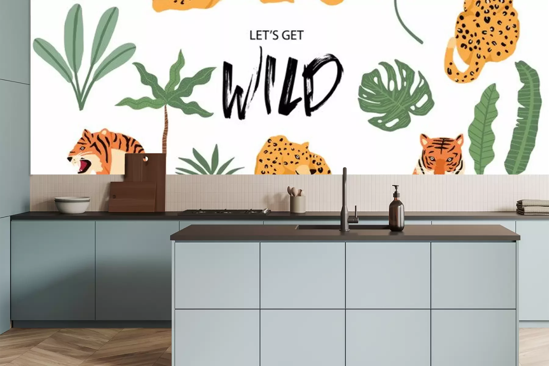 Sticker  Cute animal object collection with leopard,tiger. illustration for icon,logo,sticker,printable.Include wording let's get wild