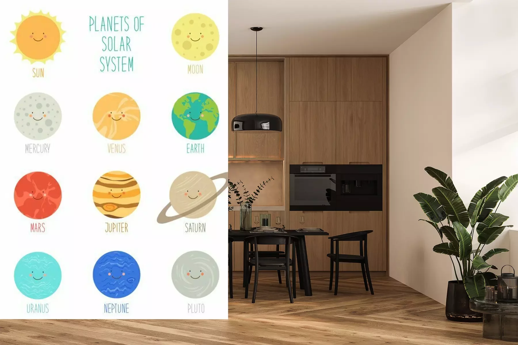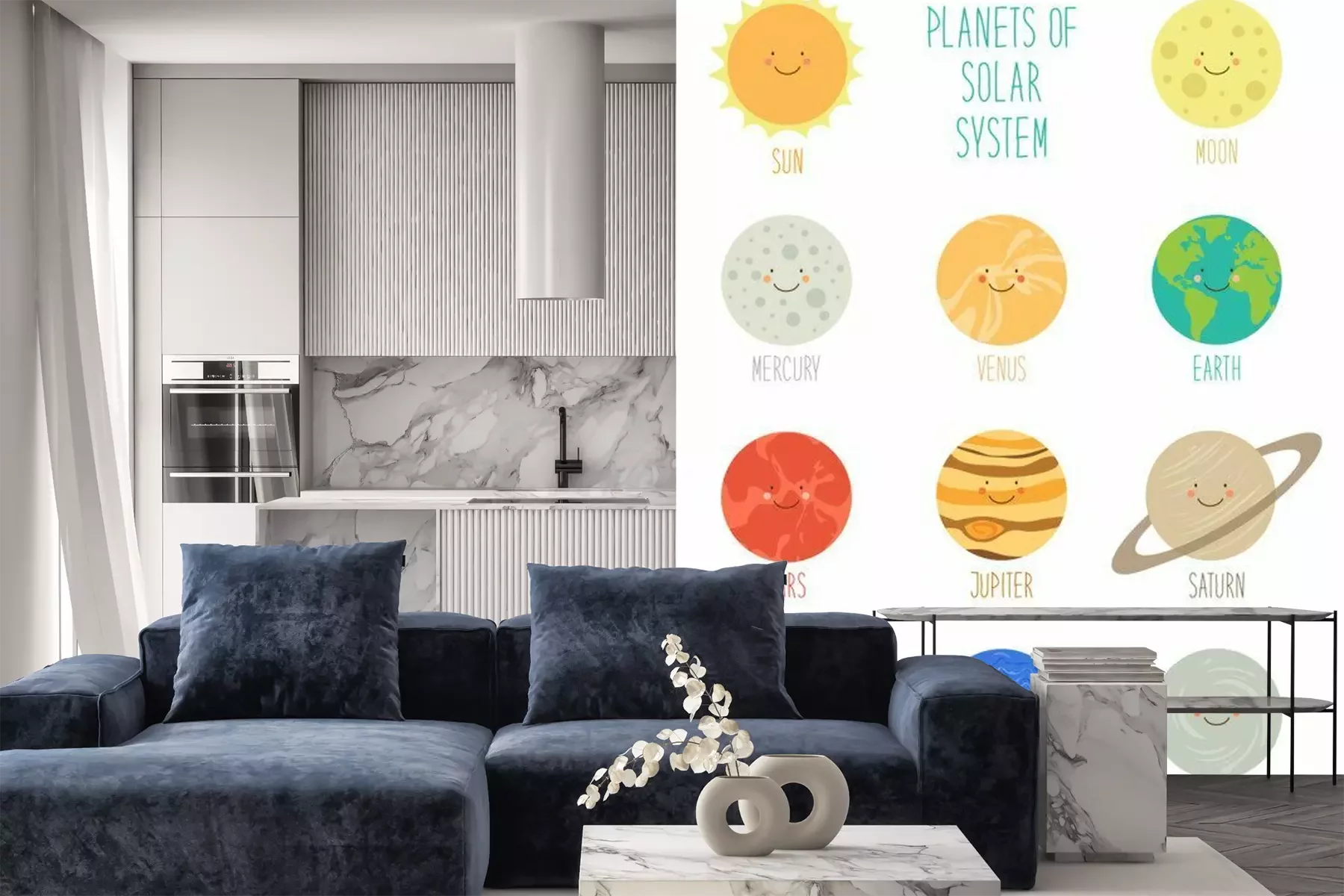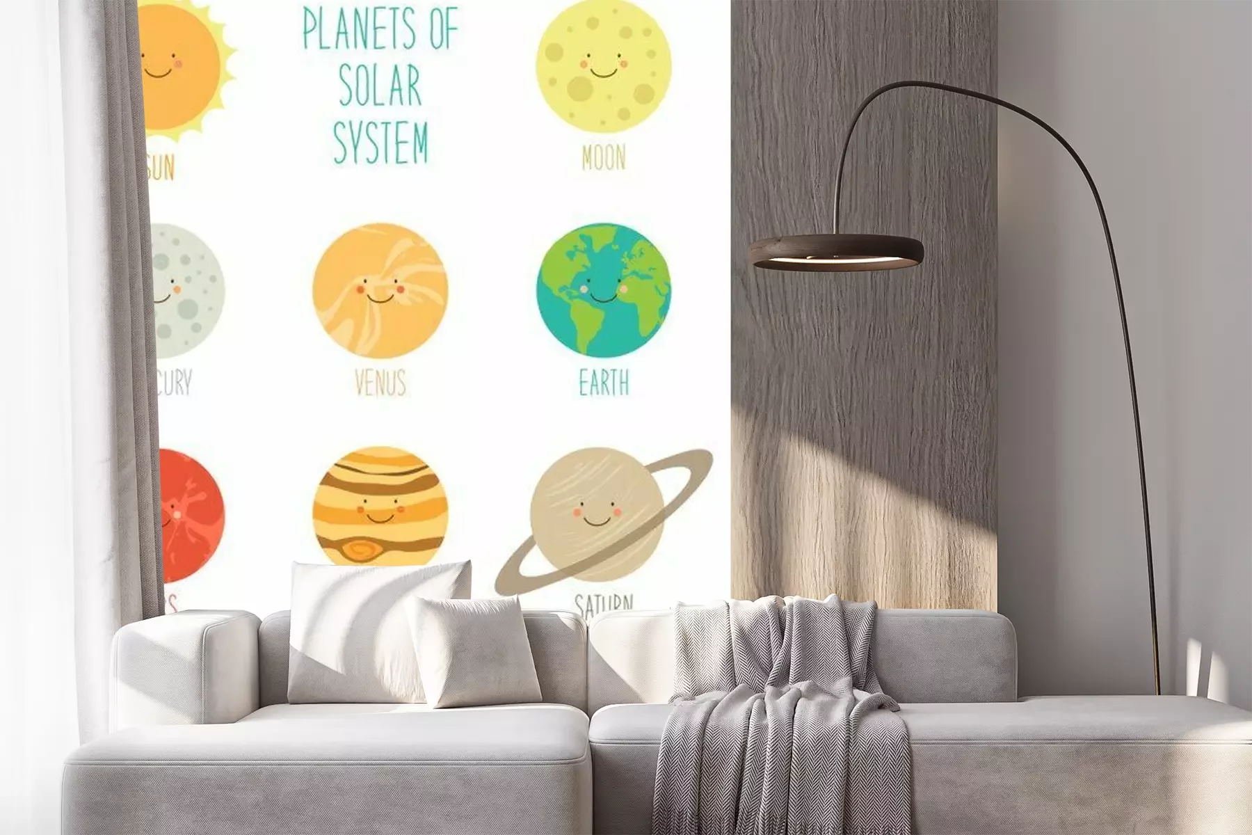 Sticker  Cute personnage souriant de la planète des planètes du système solaire. Contexte enfantin