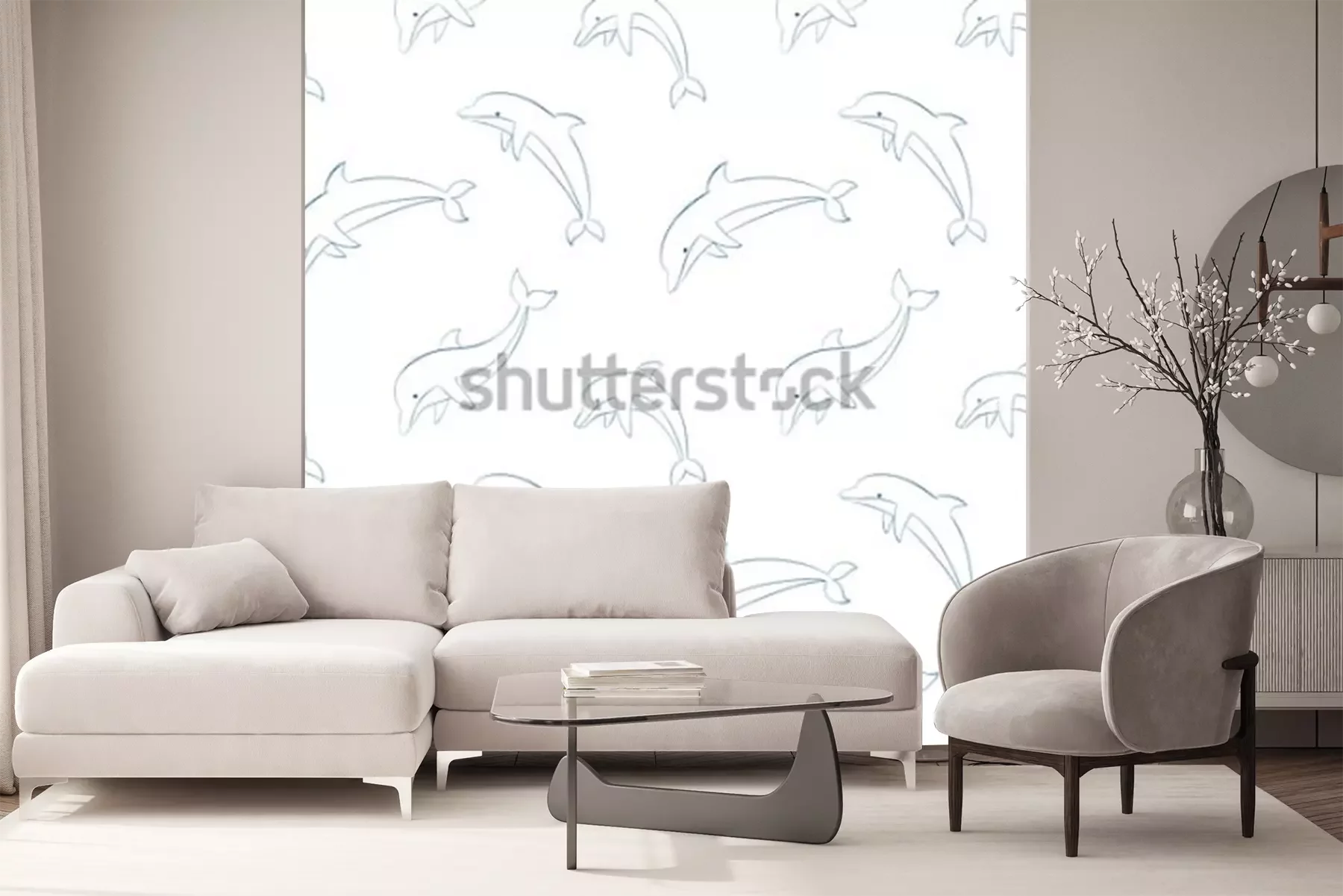 Sticker  Danser dans la mode des dauphins / couture sans couture de contour des dauphins Saut / dauphins vector illustration / mode textile dauphins / fond de dauphins de papier