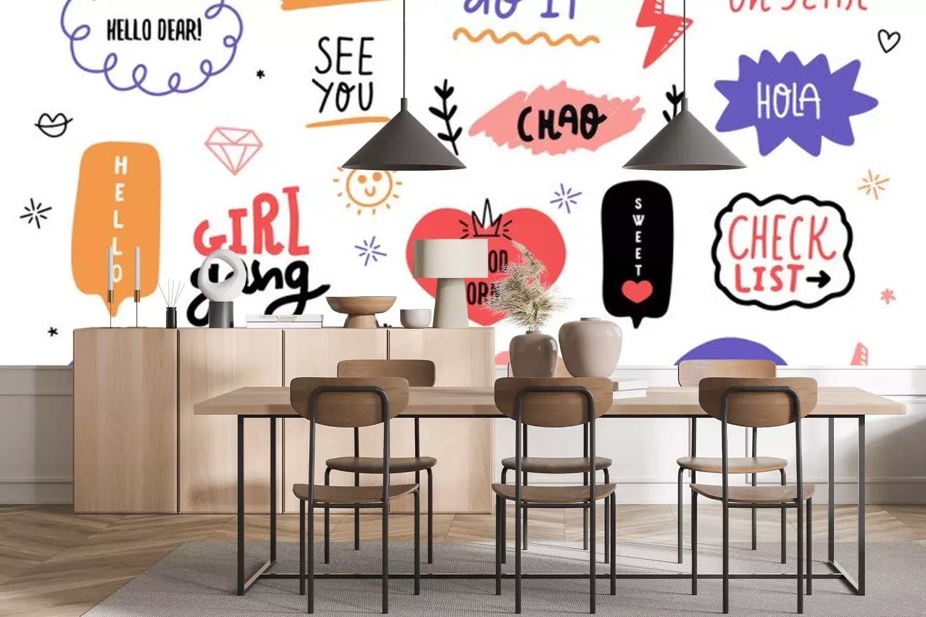 Sticker  Des slogans colorés entre des graphismes joyeux