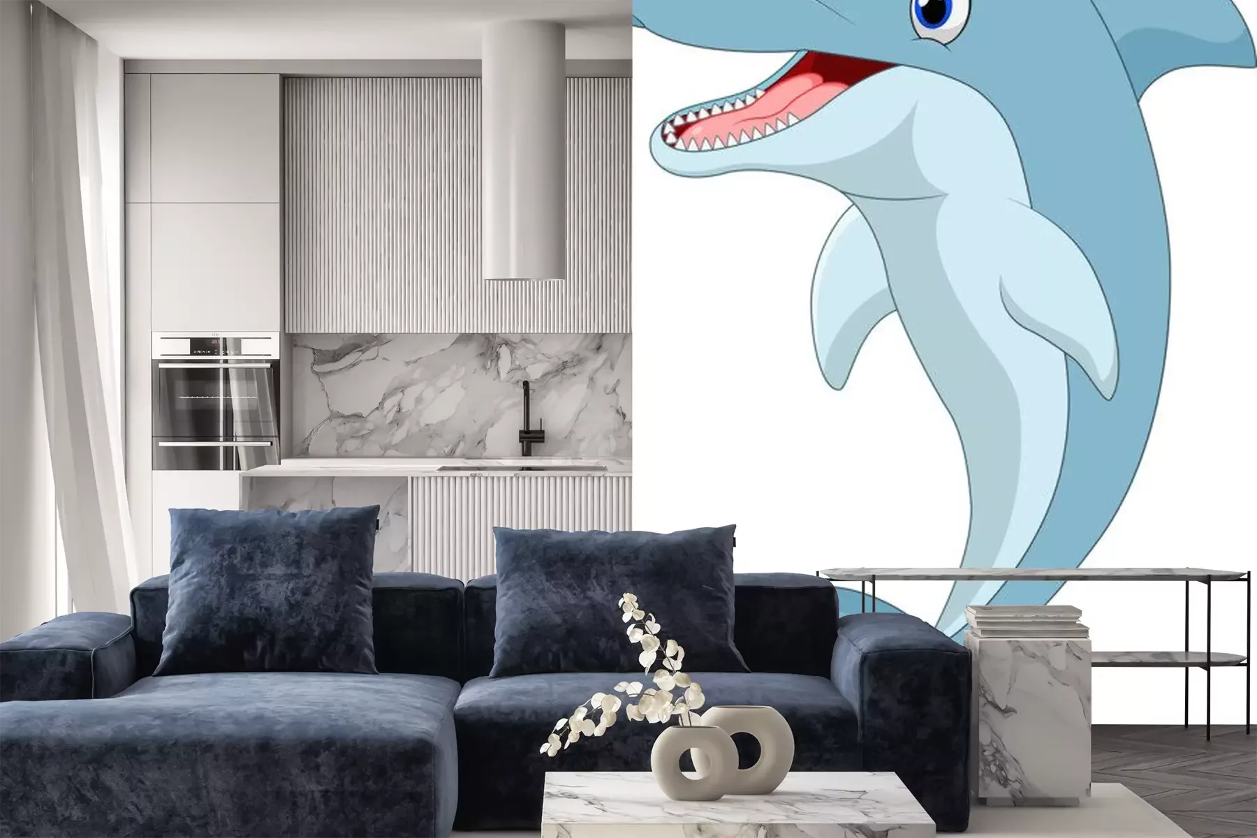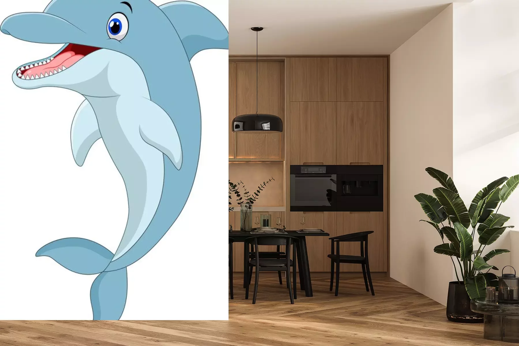 Sticker  Dessin animé, drôle, dauphin, Sauter