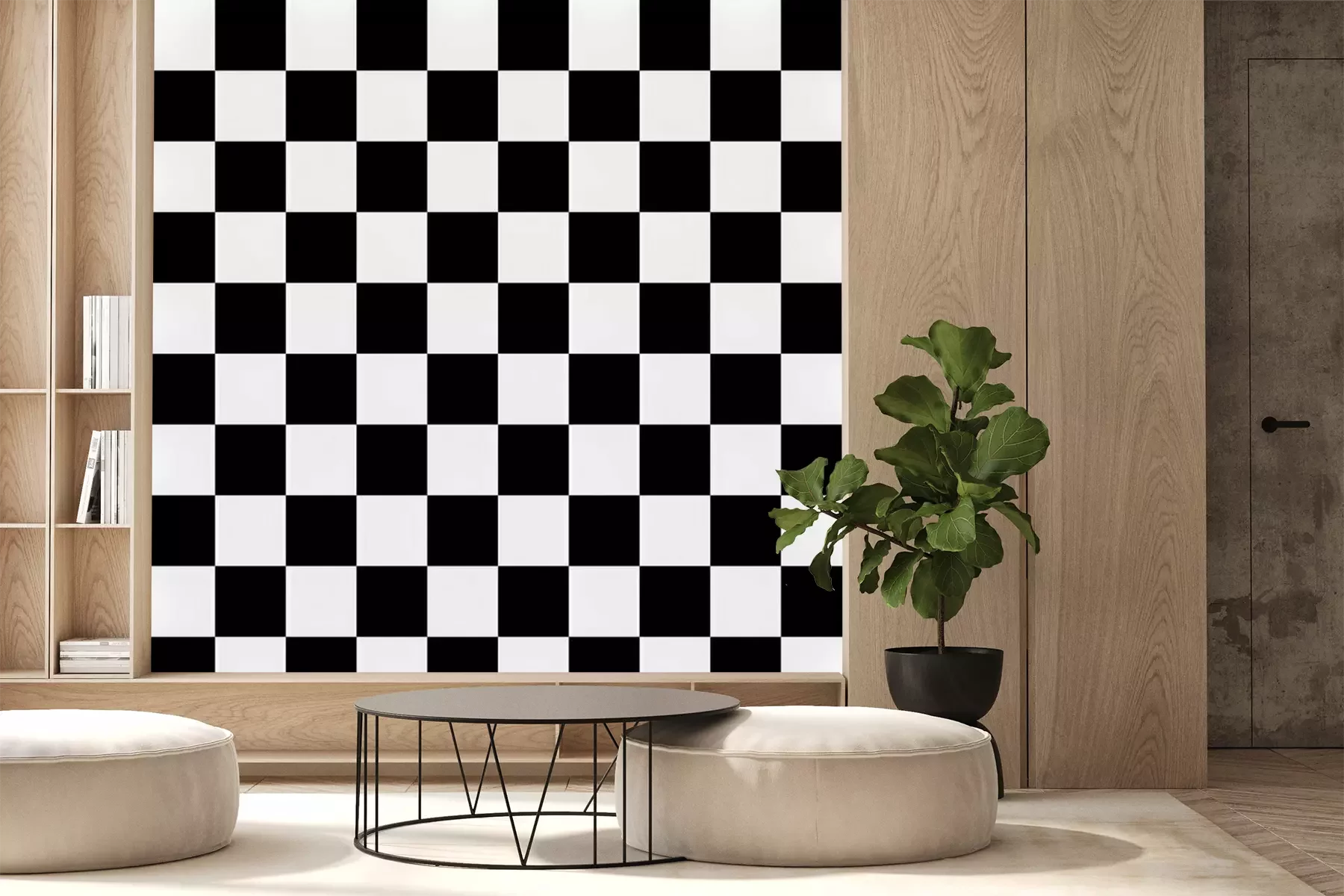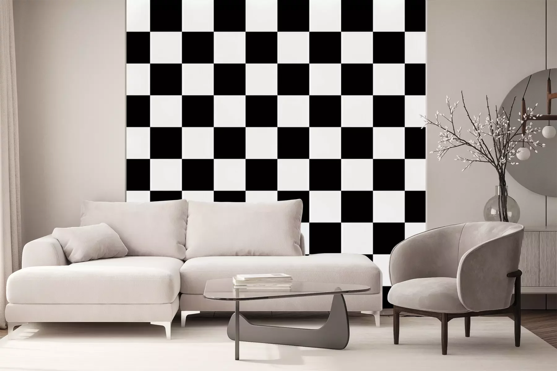 Sticker  Dessin d'échiquier géométrique noir et blanc
