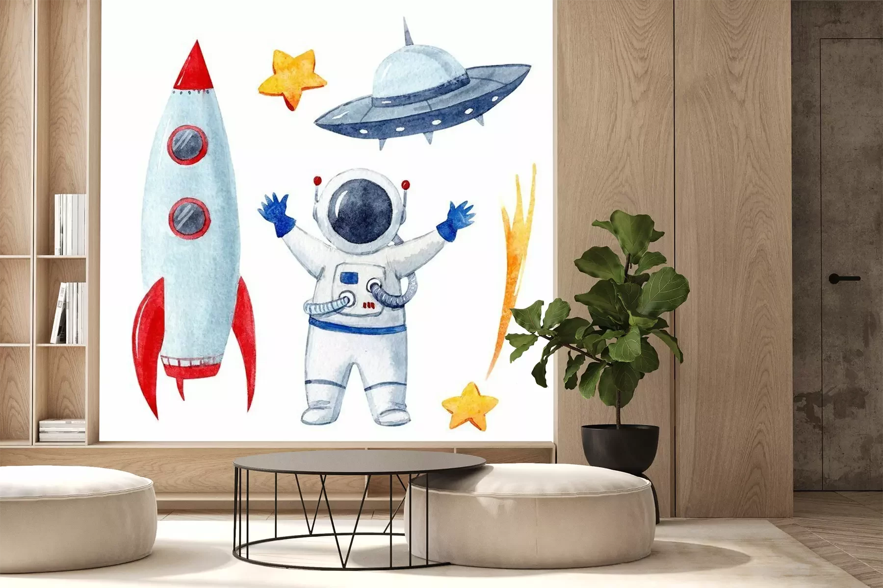 Sticker  Dessin d'étoile et de fusée d'astronaute de comète