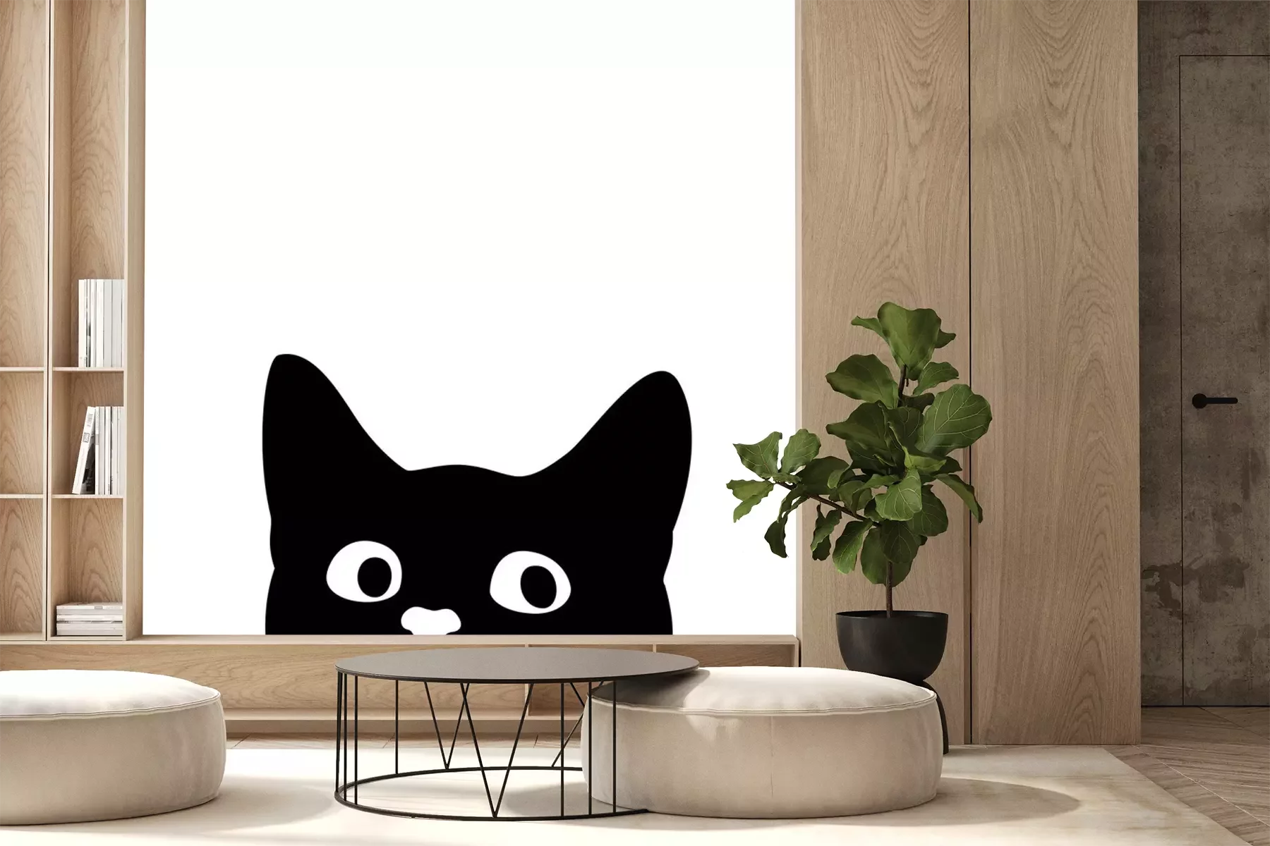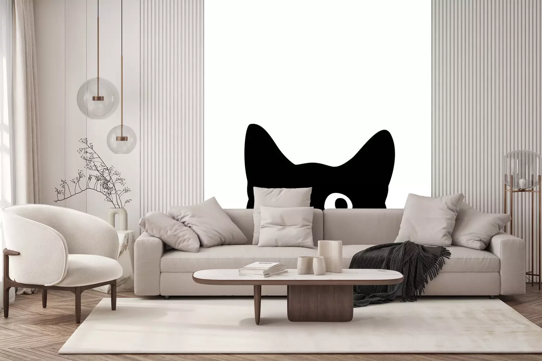 Sticker  Dessin noir et blanc d'un chat jetant un coup d'oeil au-dessus du bord