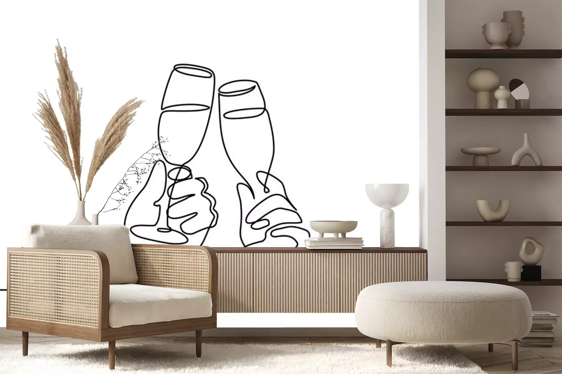 Sticker  Deux mains acclamant avec des coupes de champagne