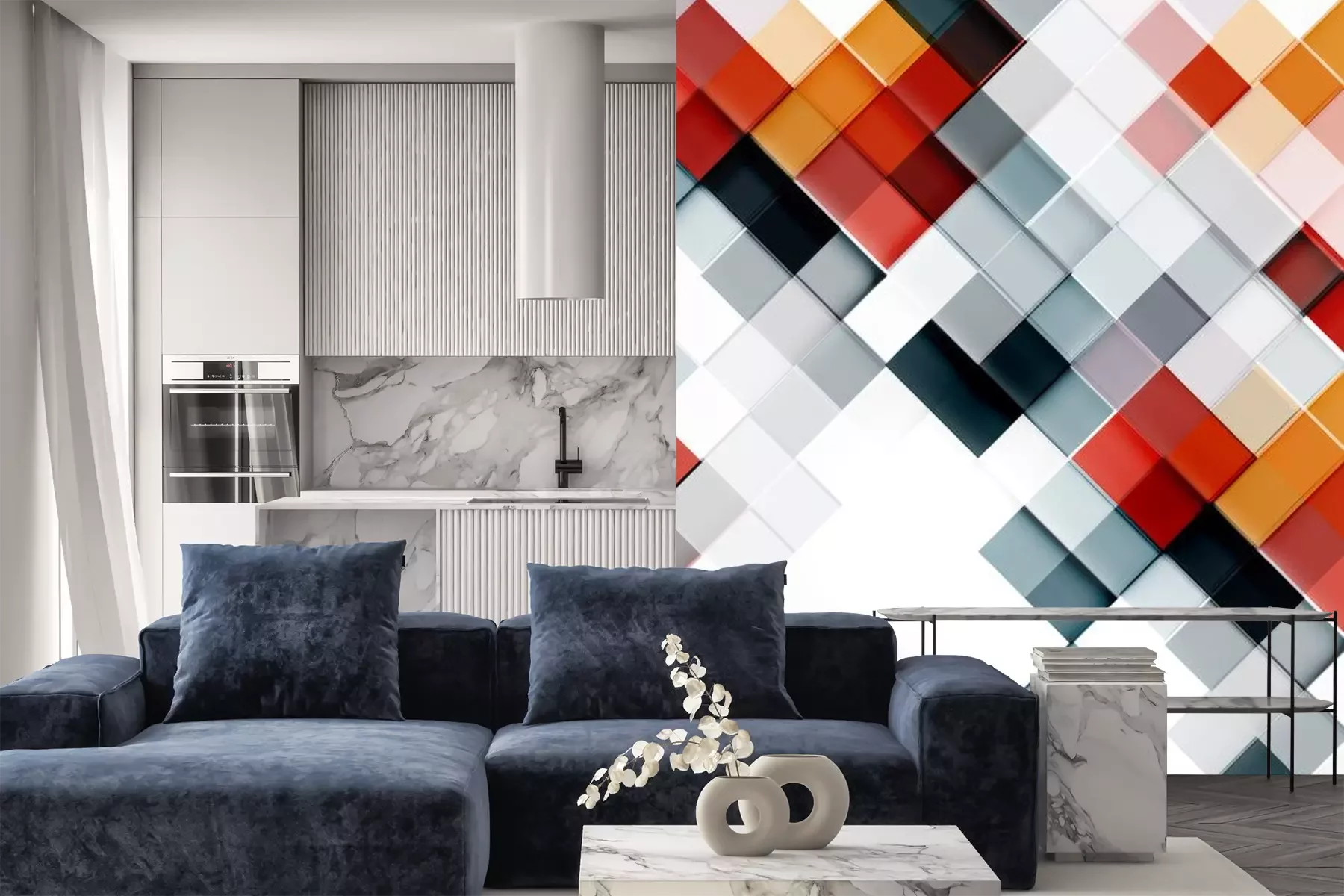 Sticker  Échiquier avec champs multicolores