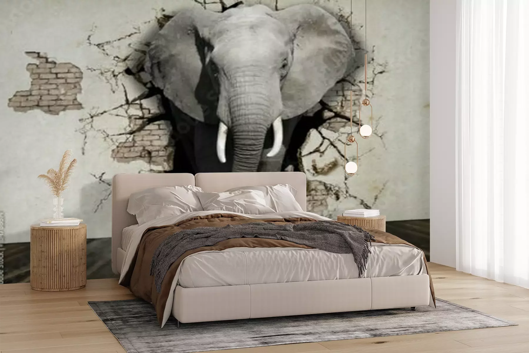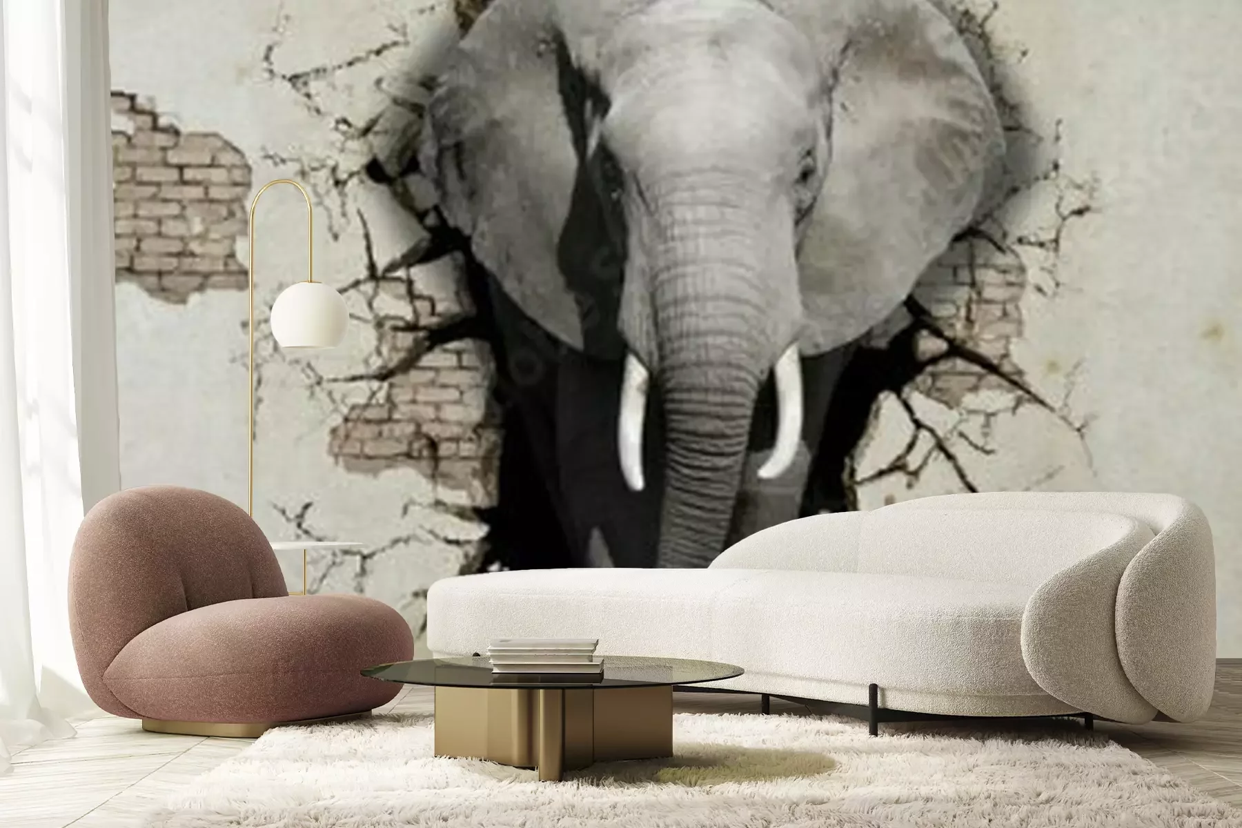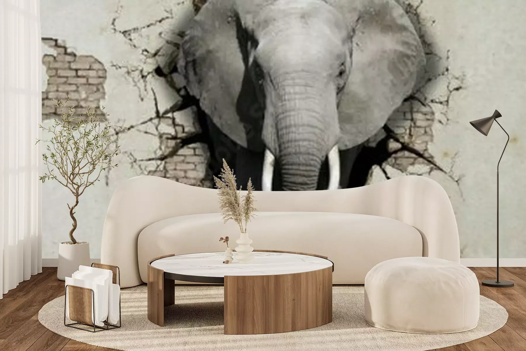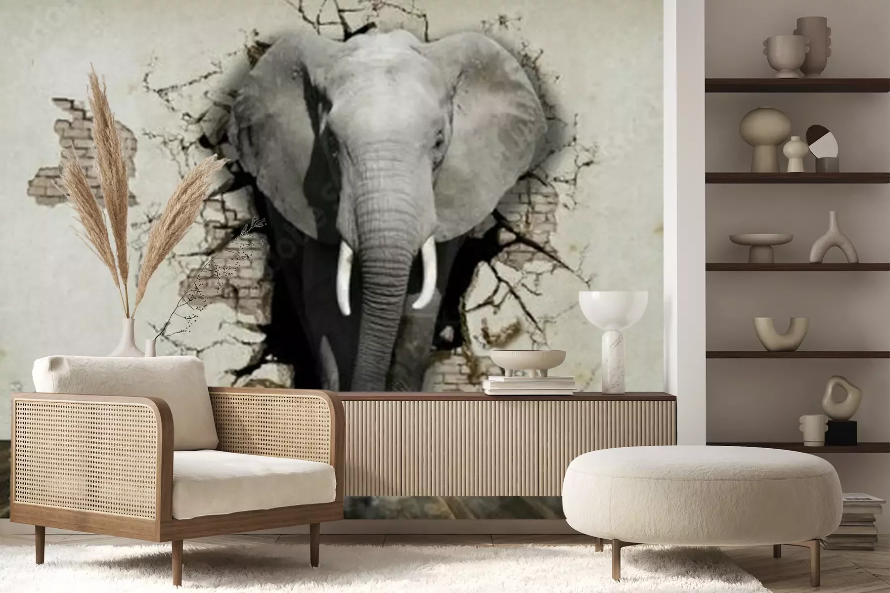 Sticker  Éléphant d'animaux 3d sortant du mur