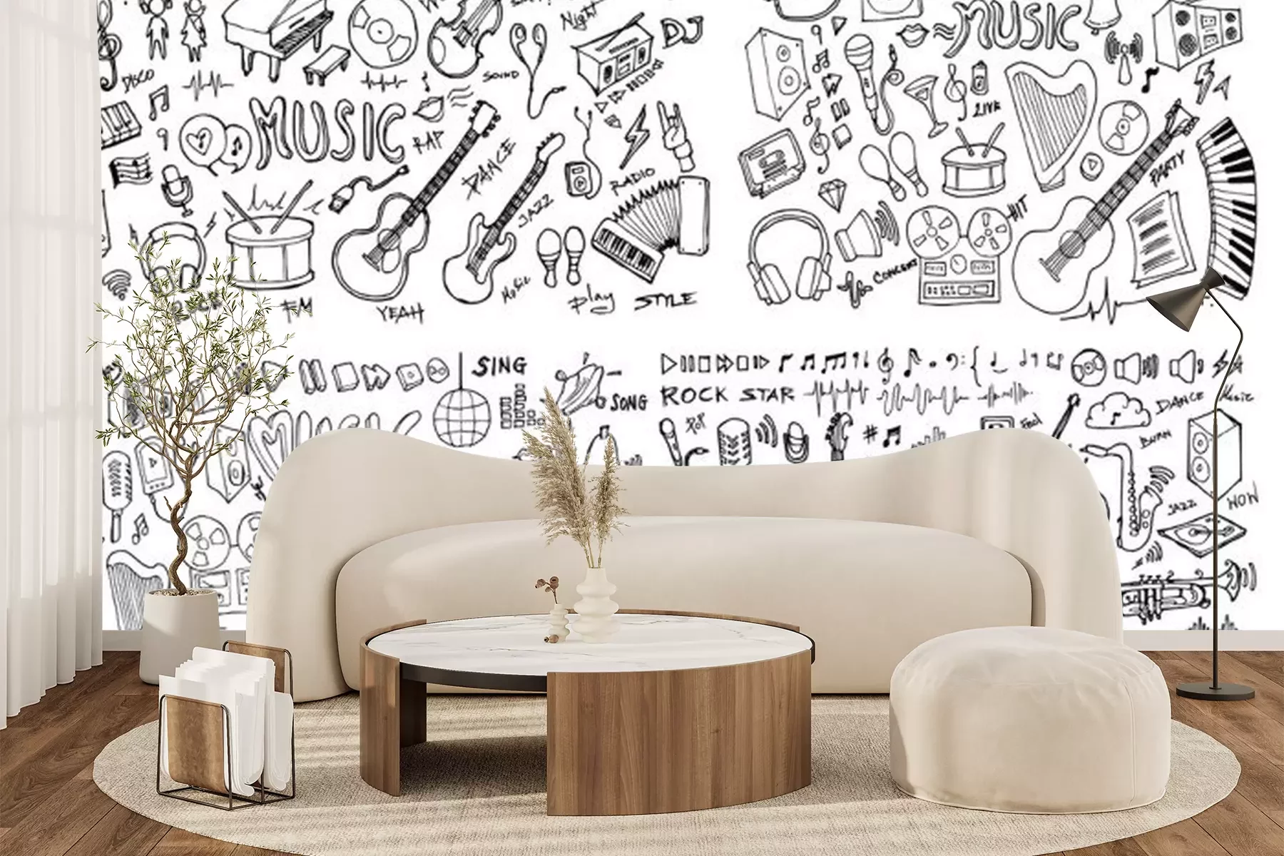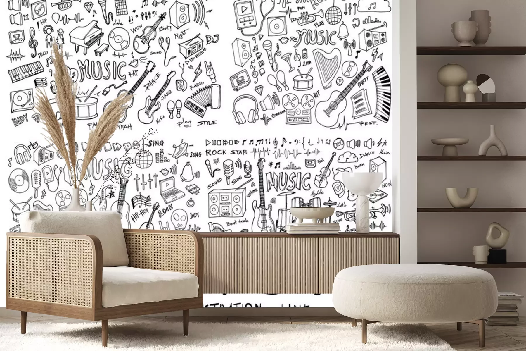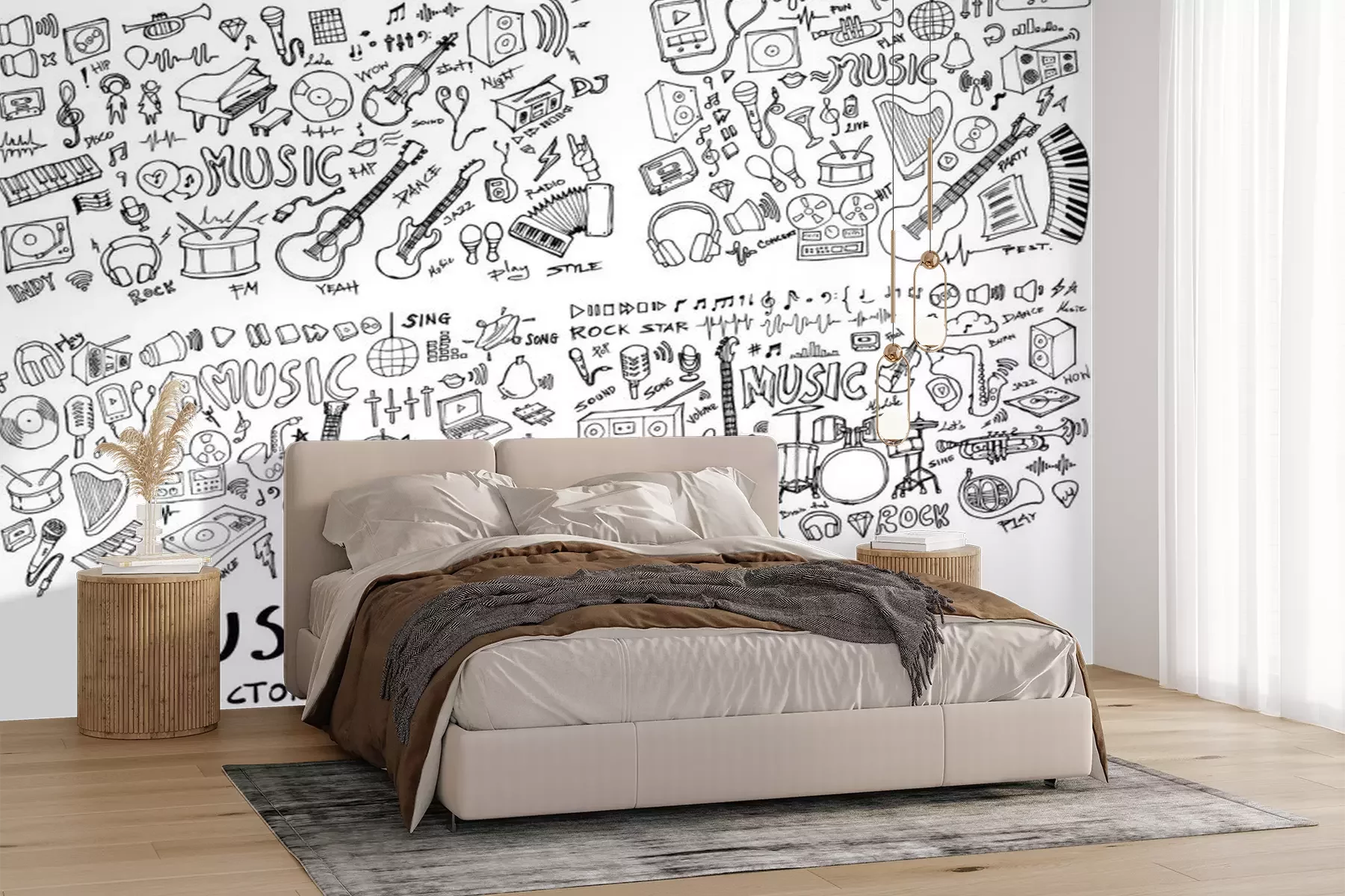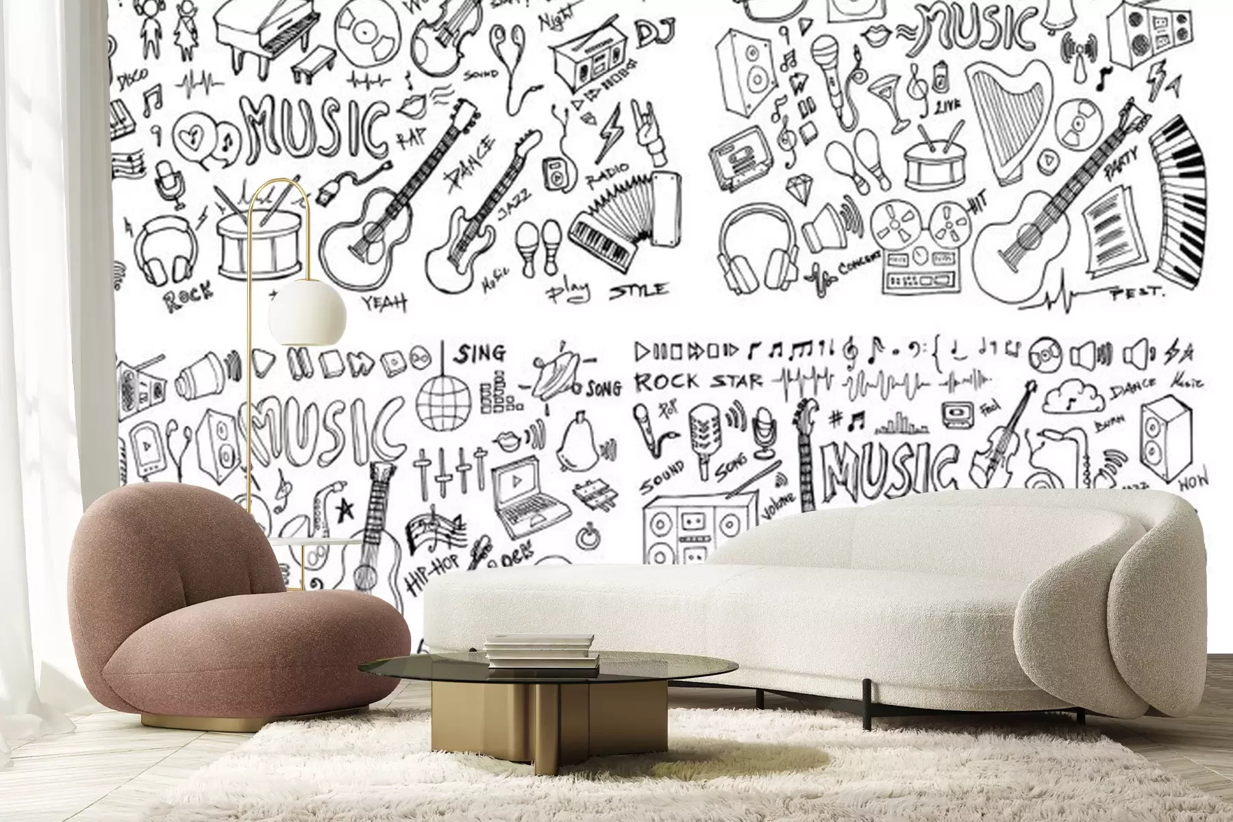 Sticker  Ensemble de musique doodle dessinés à la main Croquis vecteur ligne ebriquet griffonnage eps10