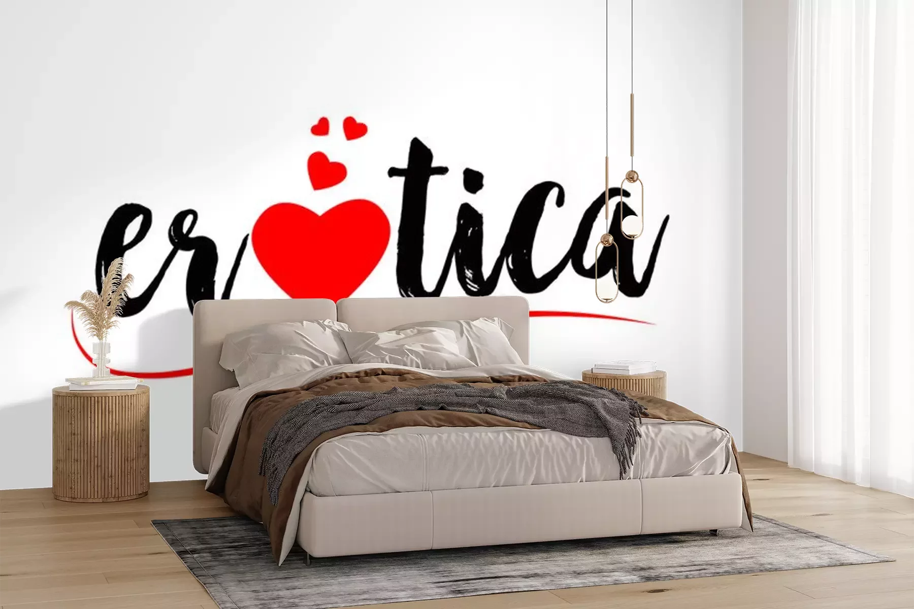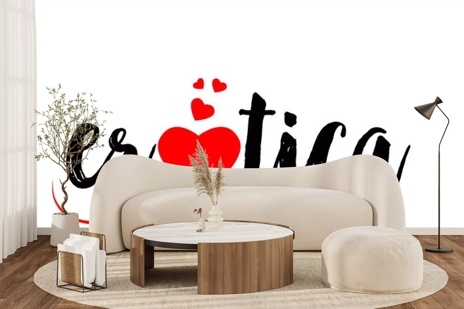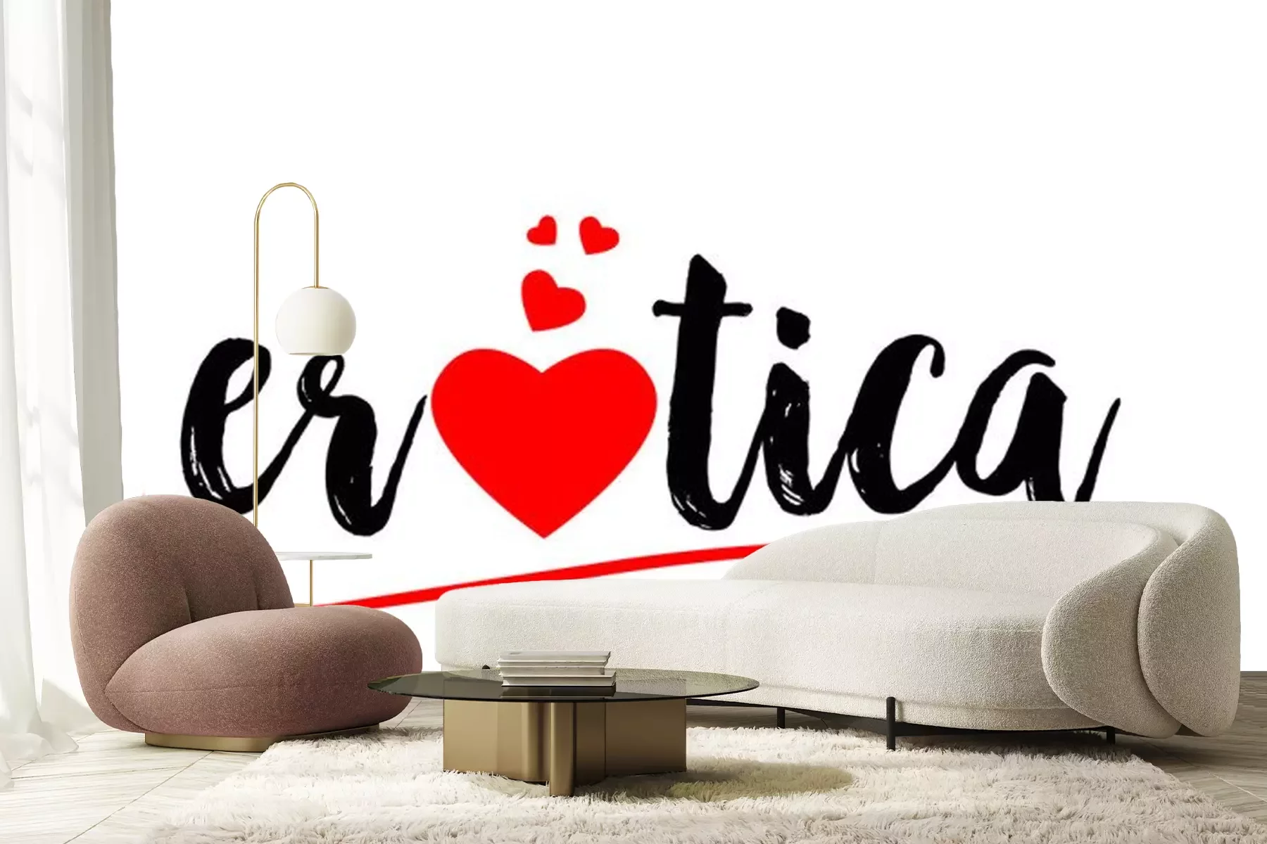 Sticker  erotica mot texte typographie design logo icône avec coeur d'amour rouge