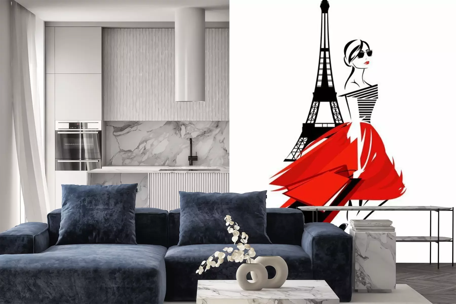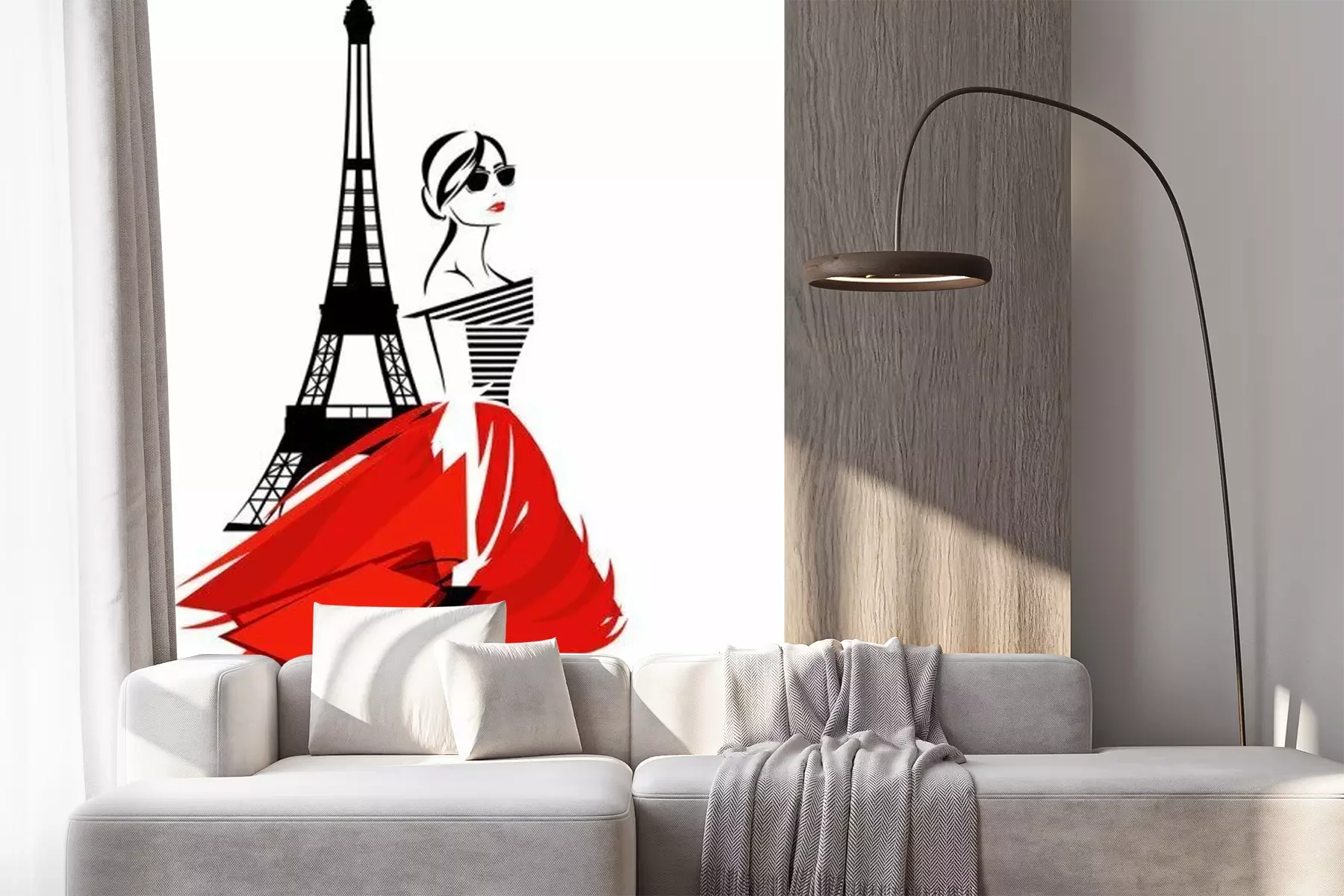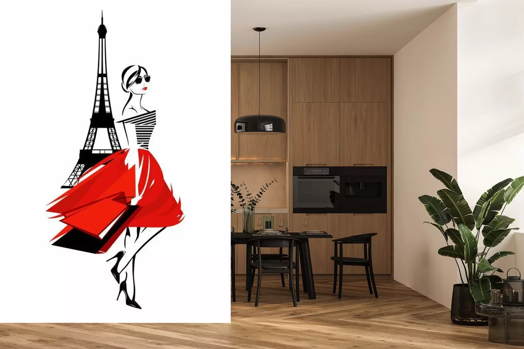 Sticker  femme belle mode à Paris - fashionista française avec des sacs et design vectoriel tour eiffel
