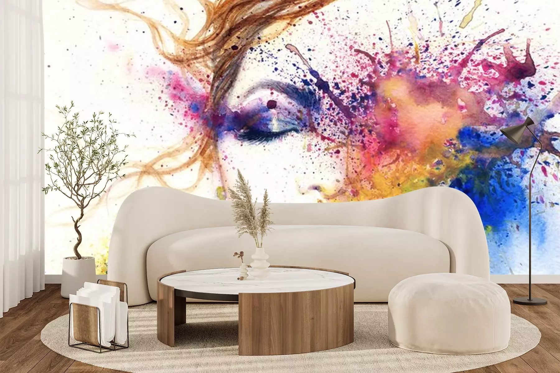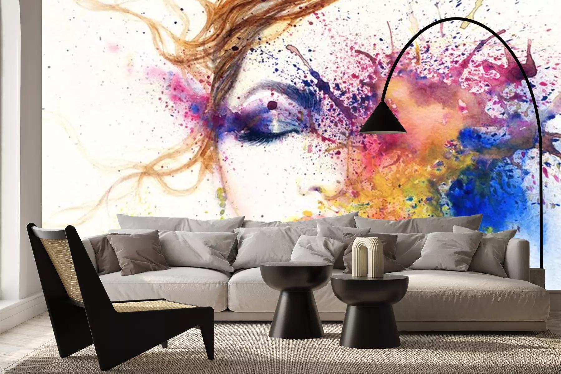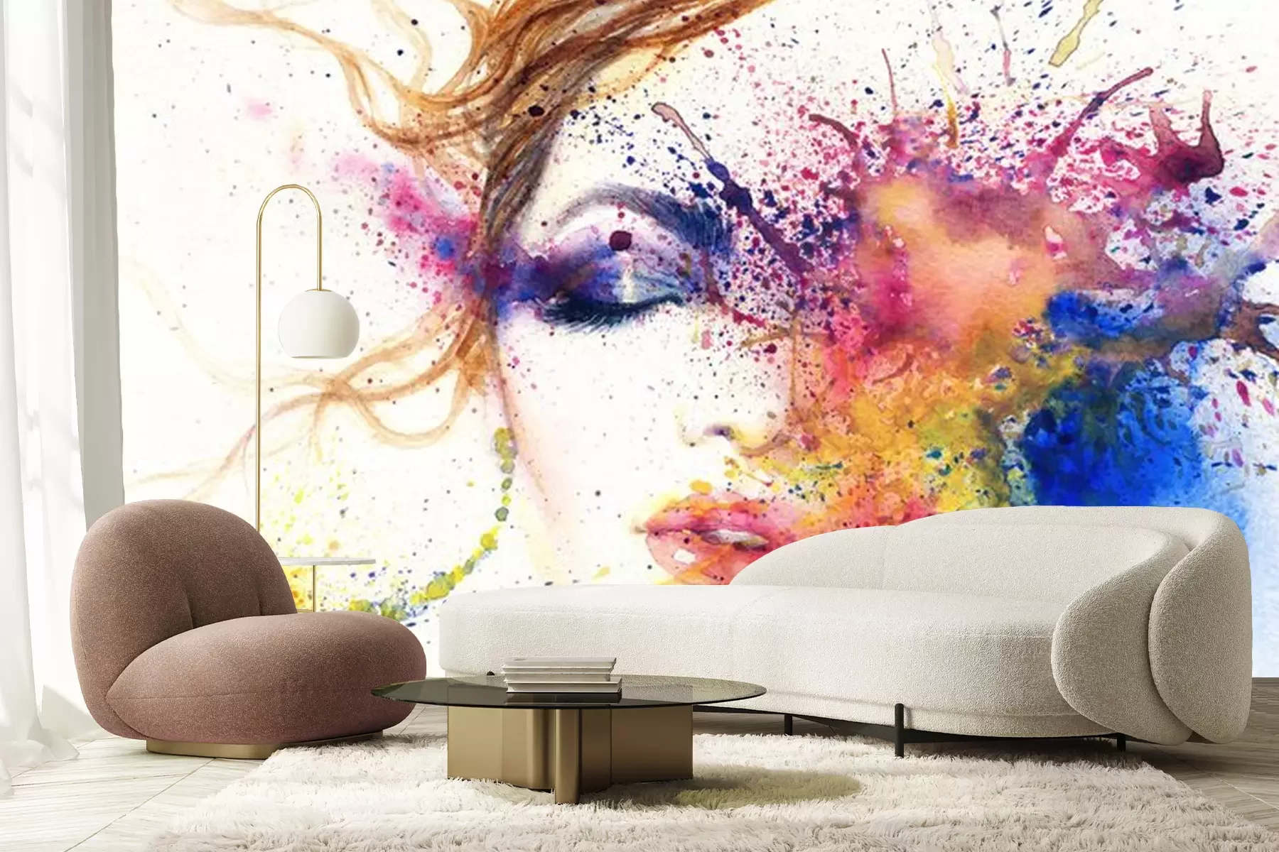 Sticker  Femme, portrait .abstract, aquarelle, .fashion, fond