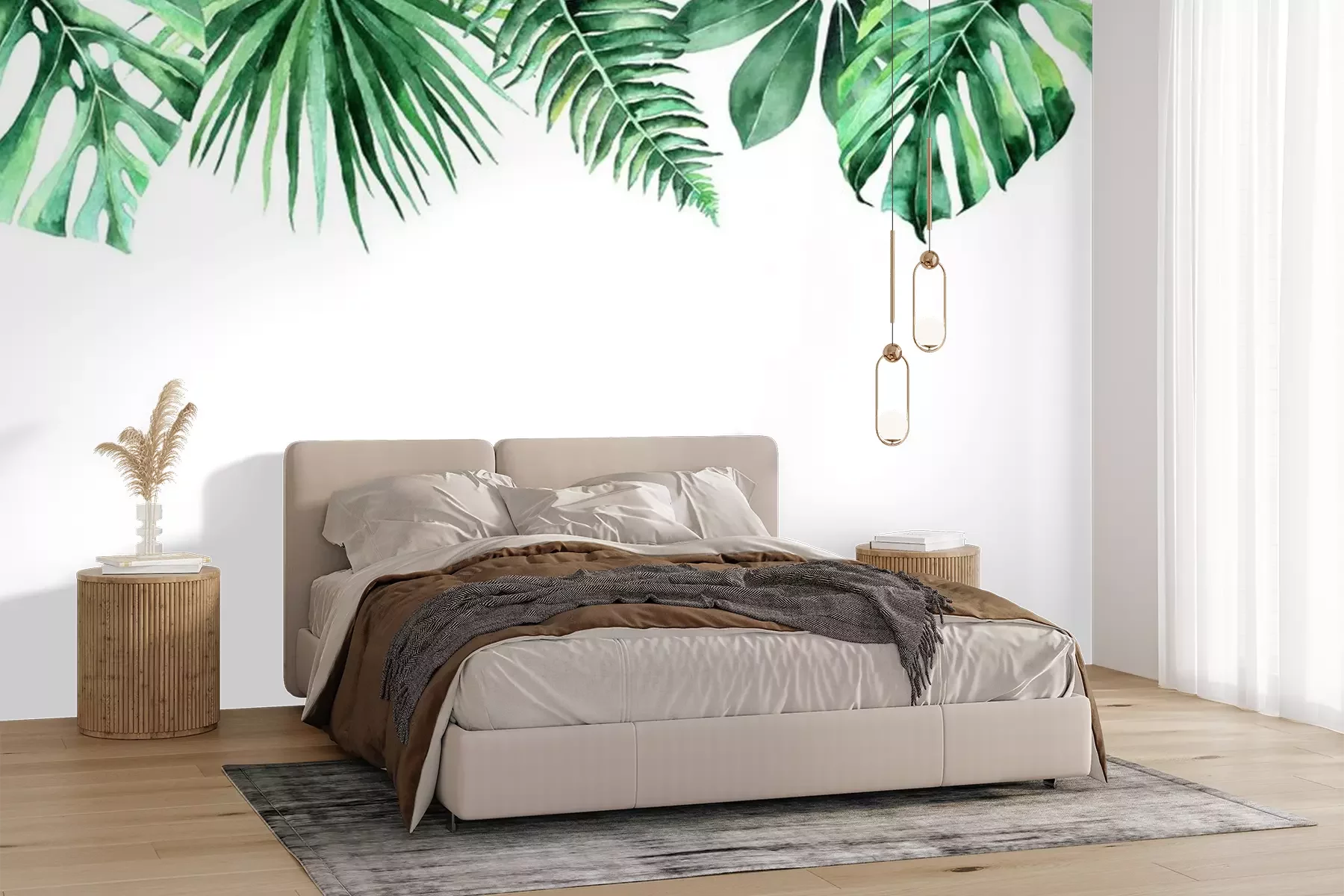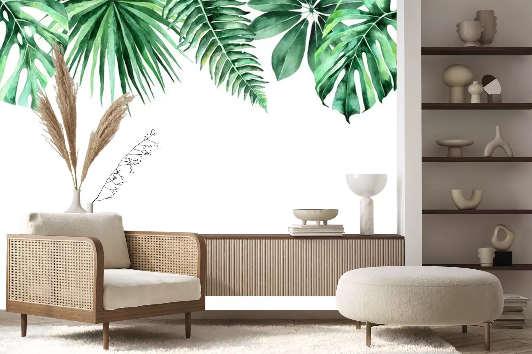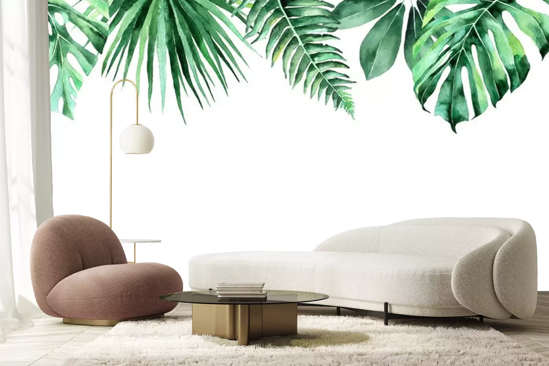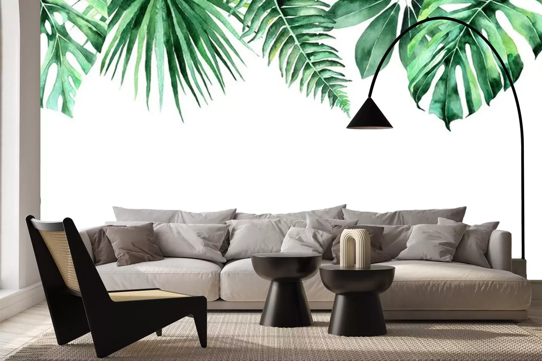 Sticker  Feuilles de plantes tropicales sur fond blanc