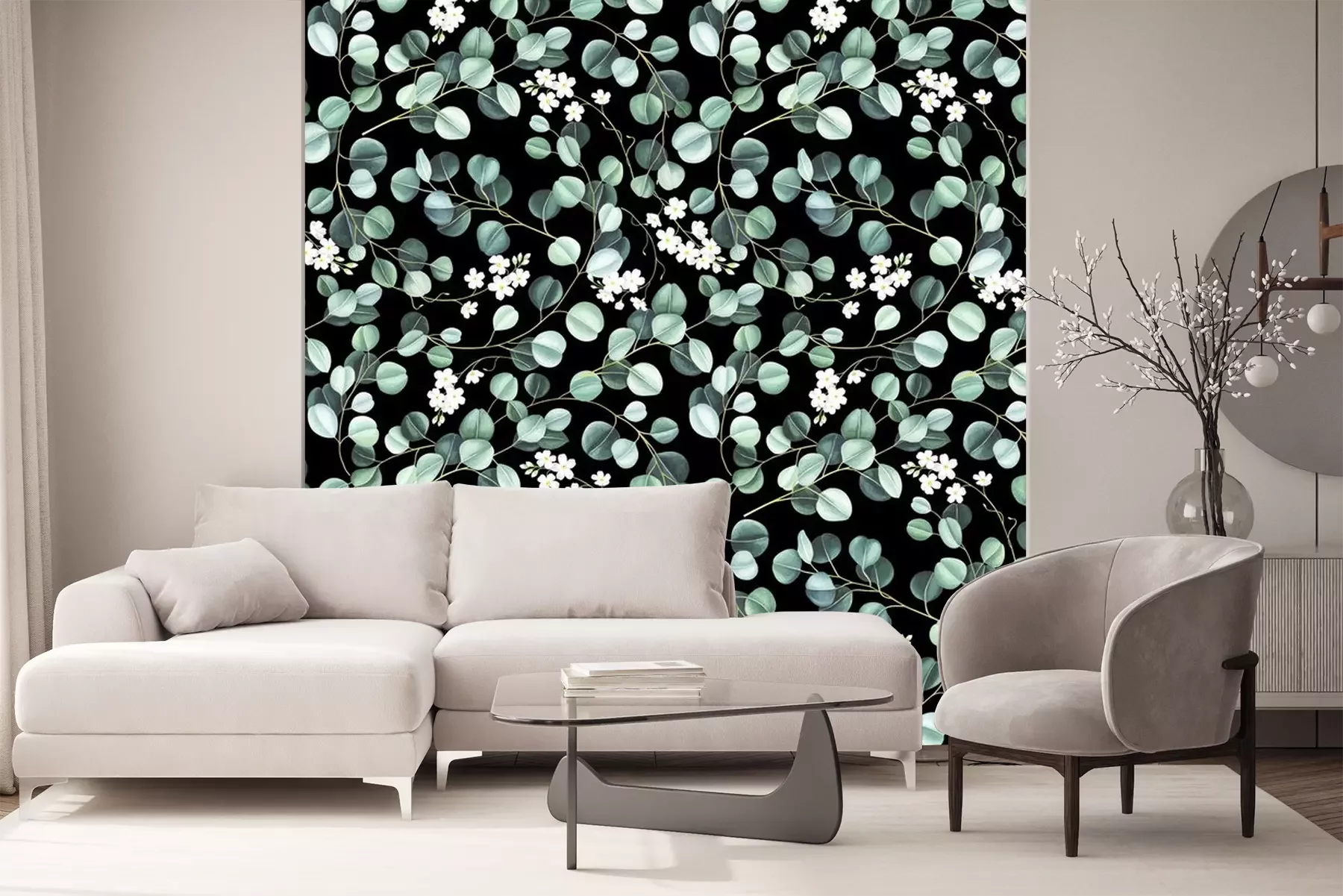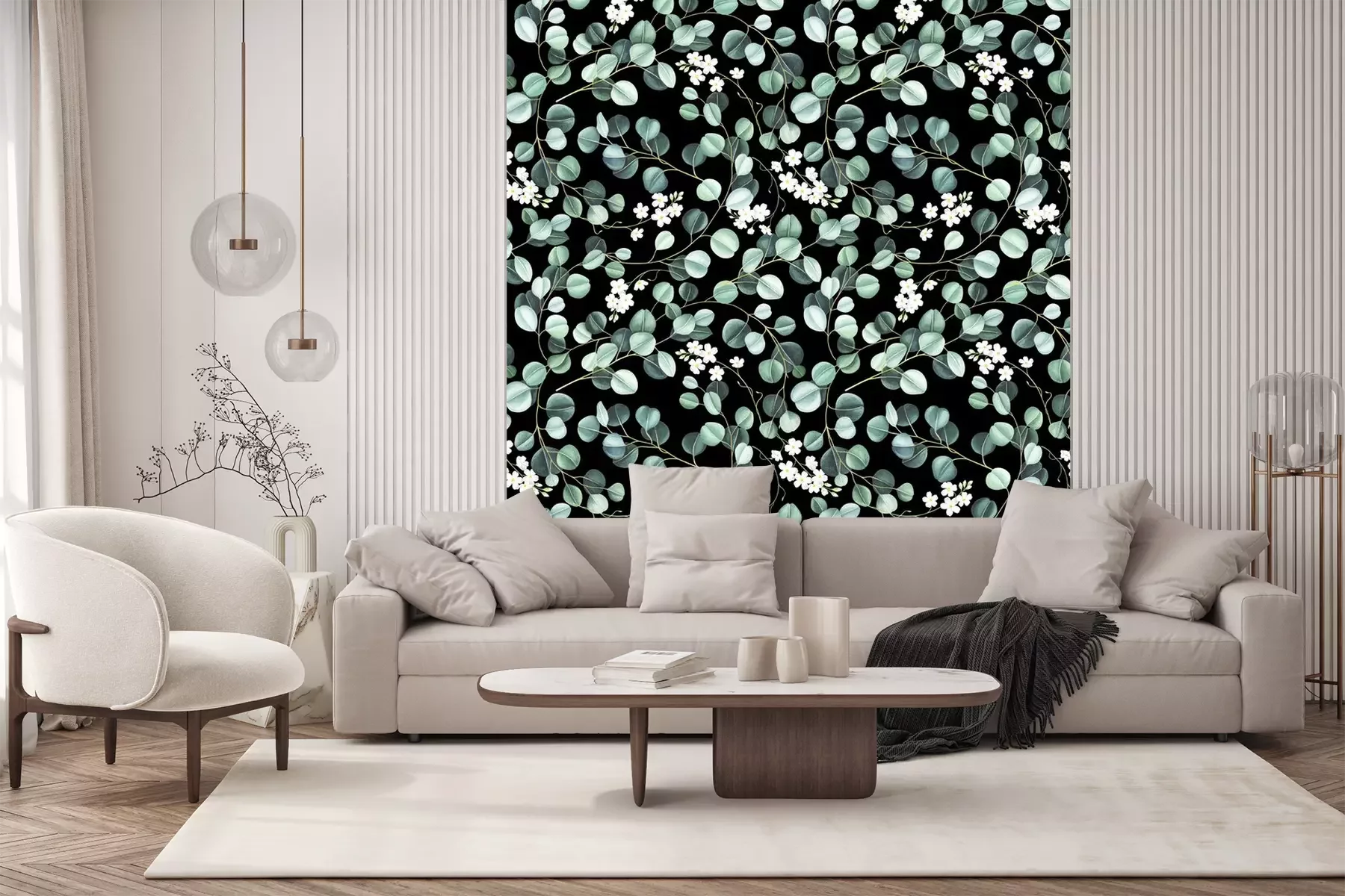 Sticker  Feuilles fines sur fond noir