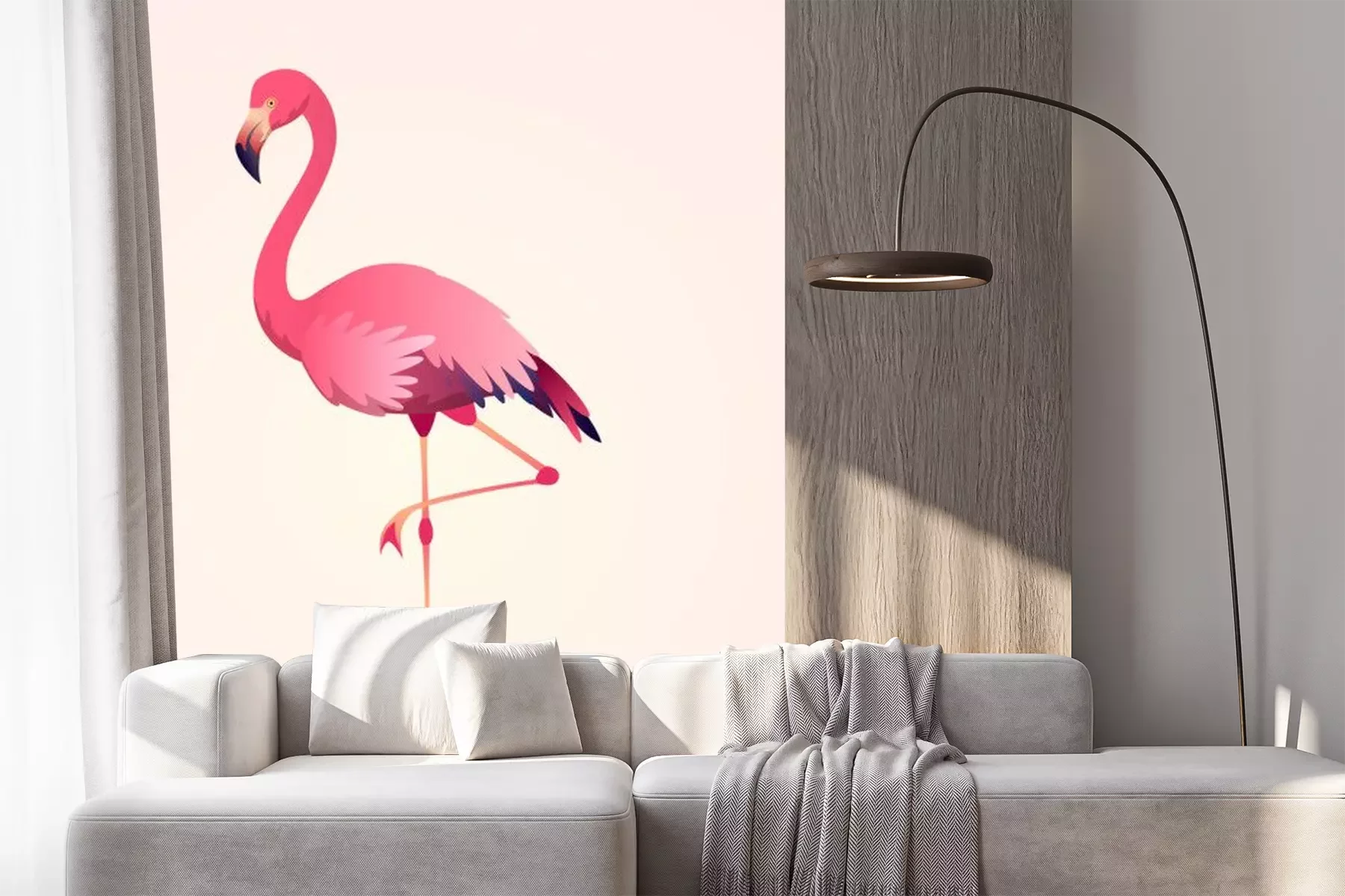 Sticker  Flamant mignon Oiseau rose tropical, affiche de carte fille nature sauvage exotique, dessin animé isolé de beauté plage fête