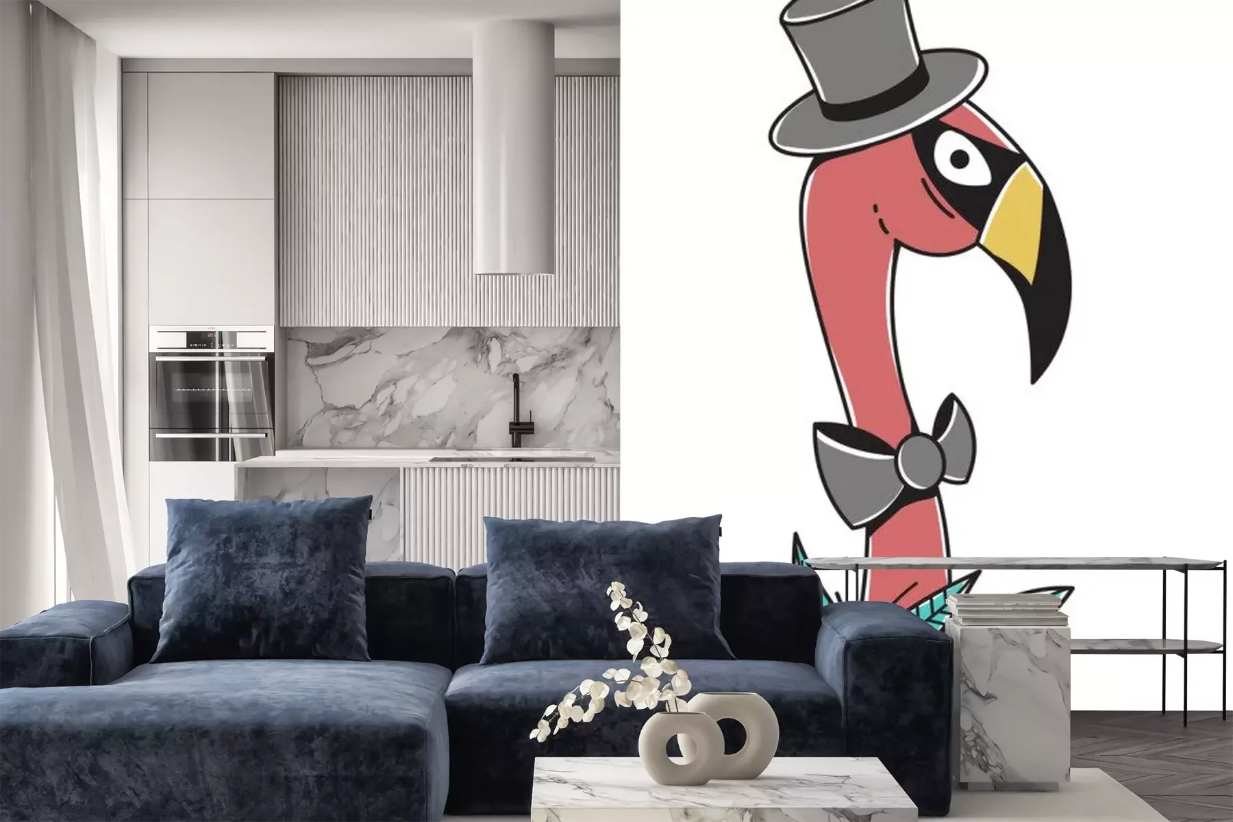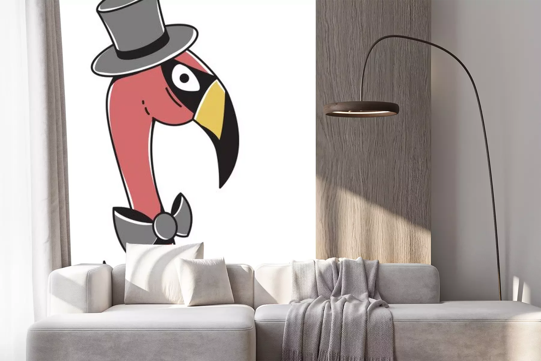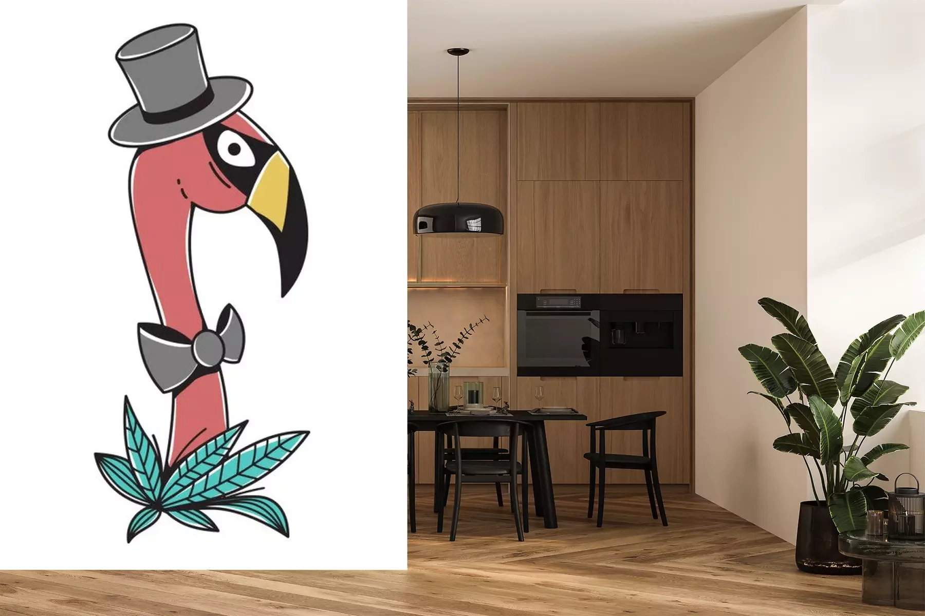 Sticker  Flamant rose dans un noeud papillon et un chapeau de cylindre isolé sur fond blanc. Caractère original. Illustration vectorielle peut être utilisé comme autocollants, estampes, etc.