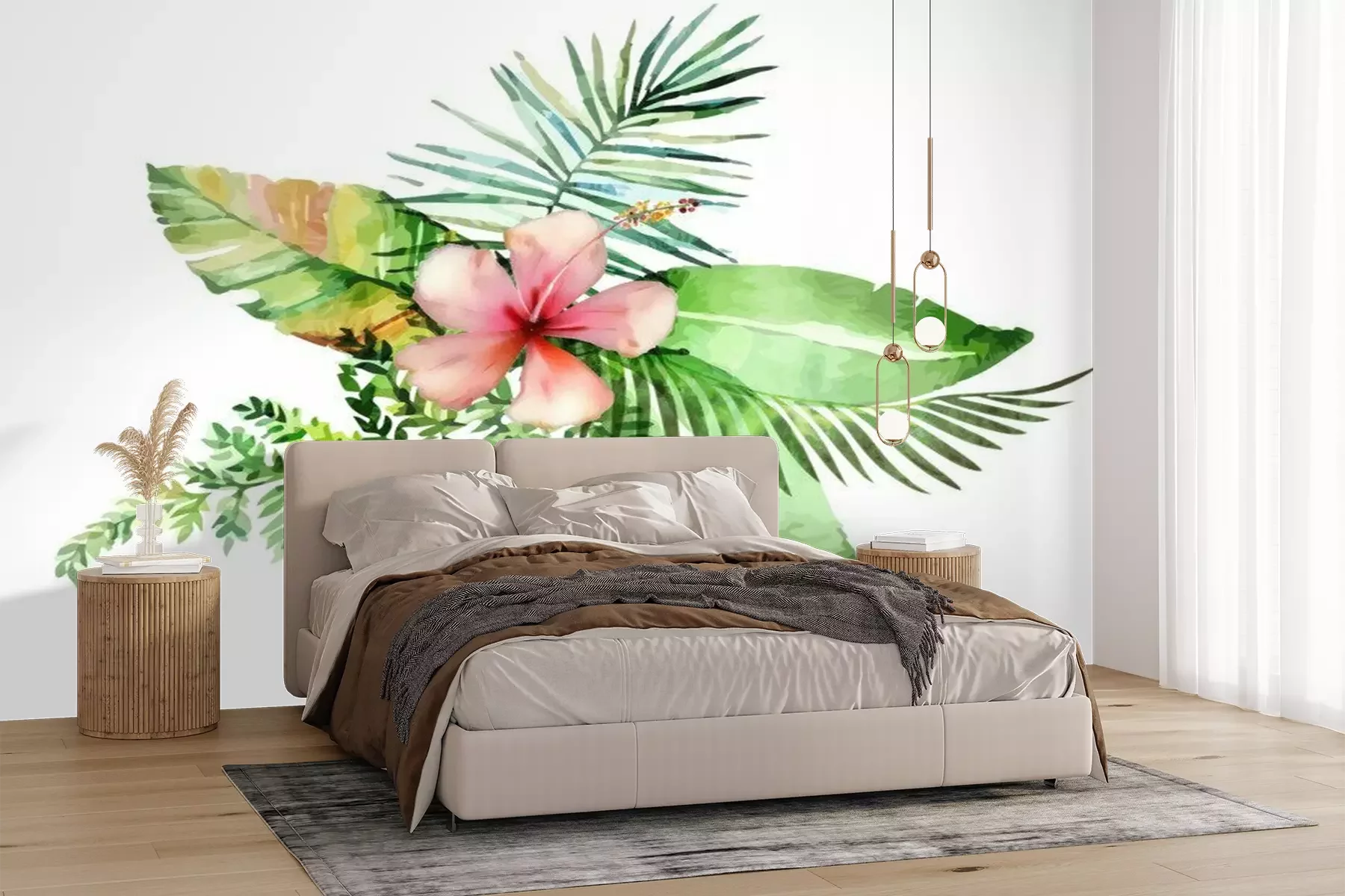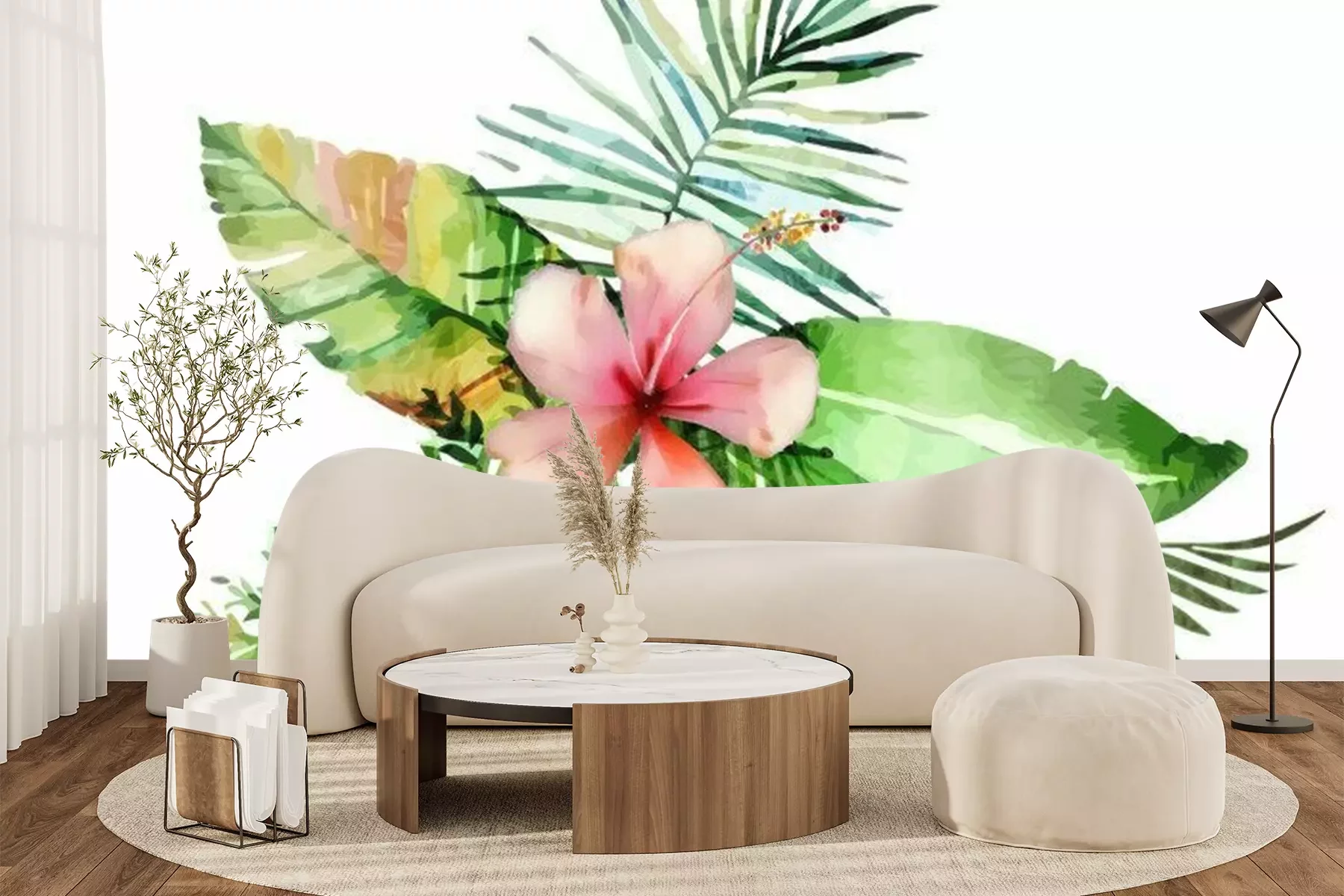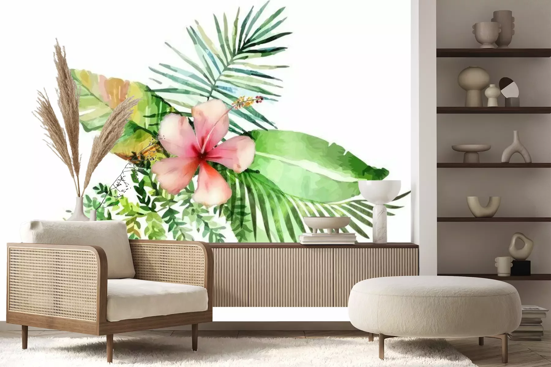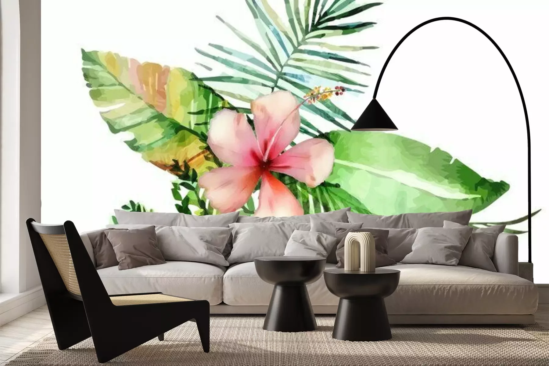 Sticker  Fleur rouge vif parmi les feuilles illustration aquarelle