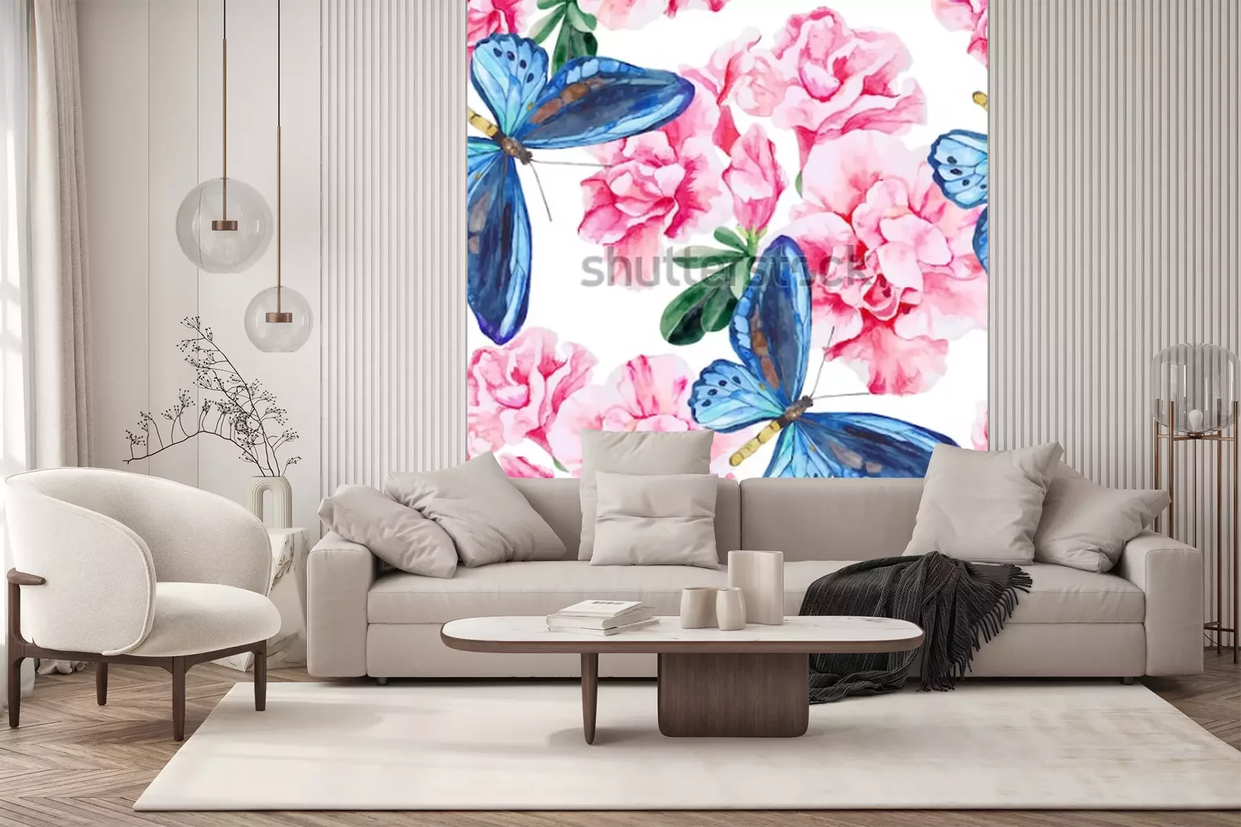 Sticker  Fleurs et papillons peints