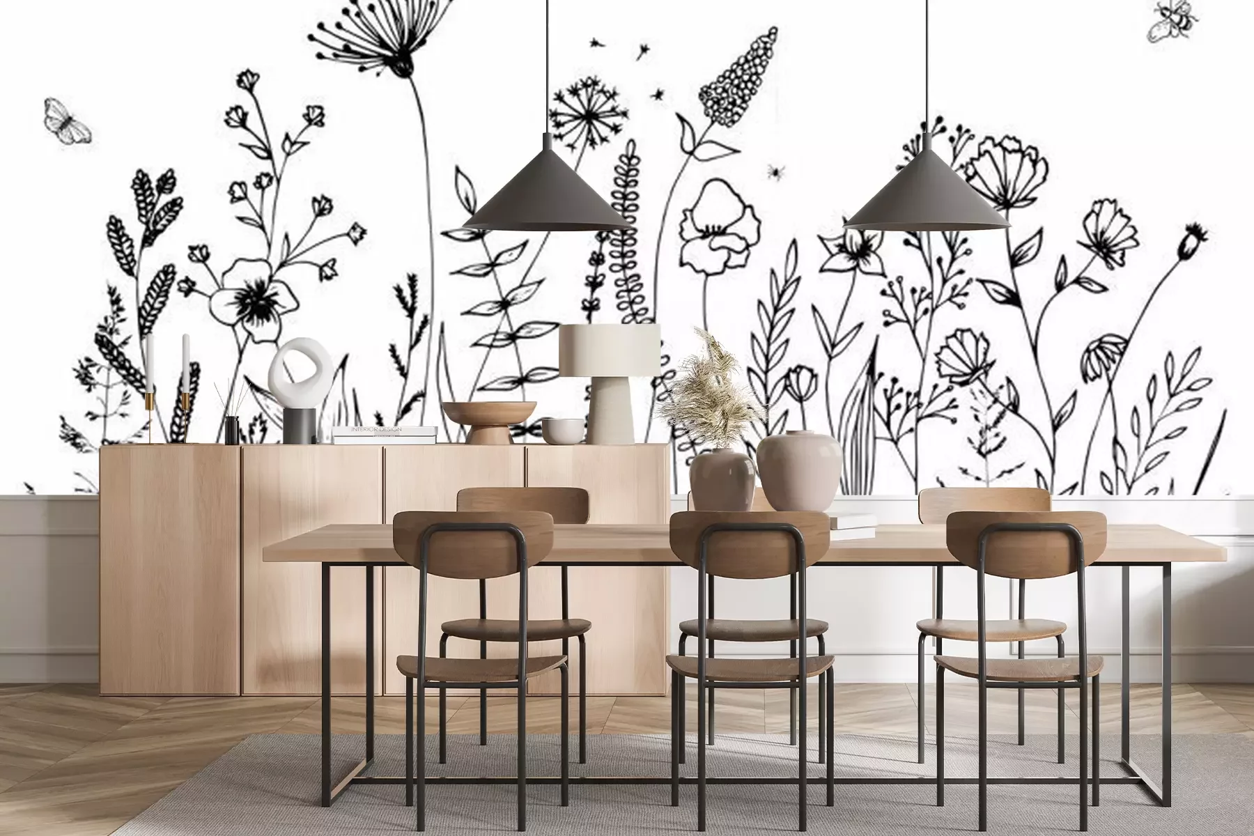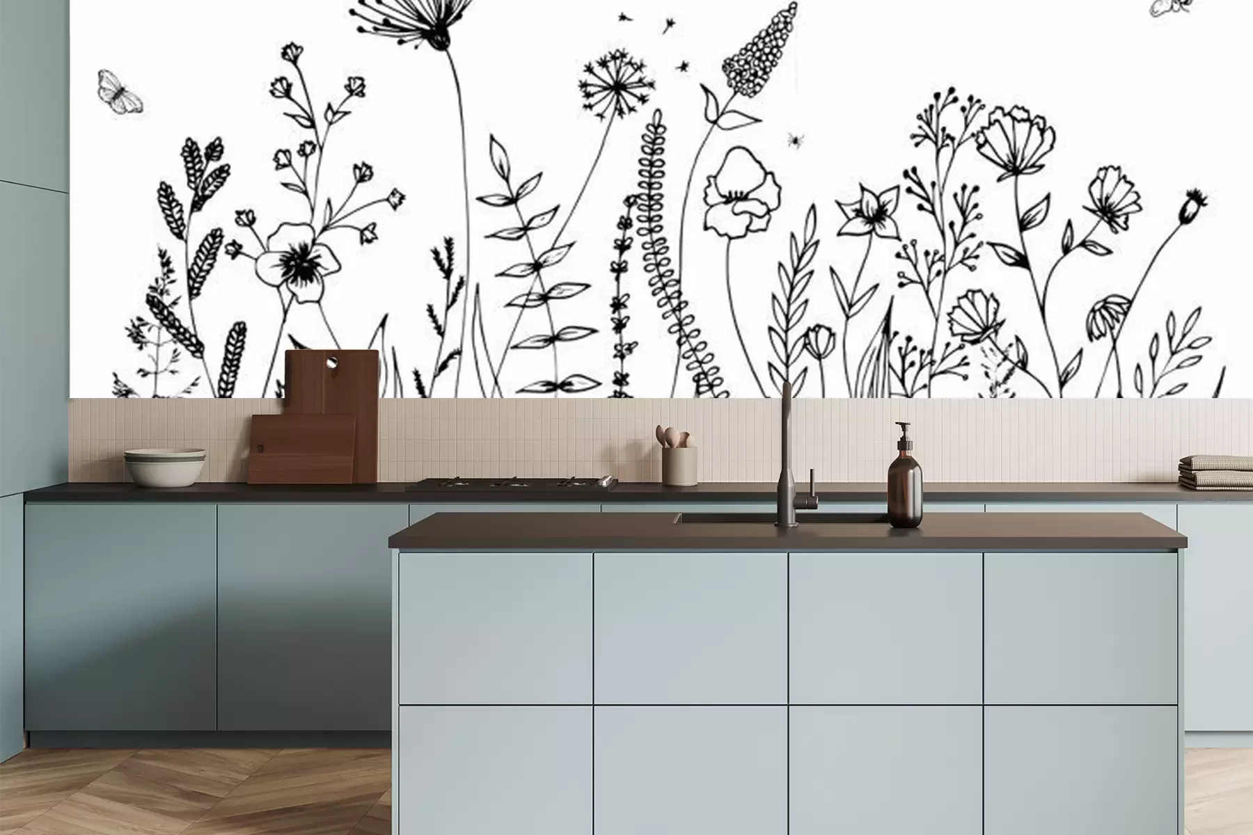 Sticker  Fleurs noires et blanches poussant dans le pré