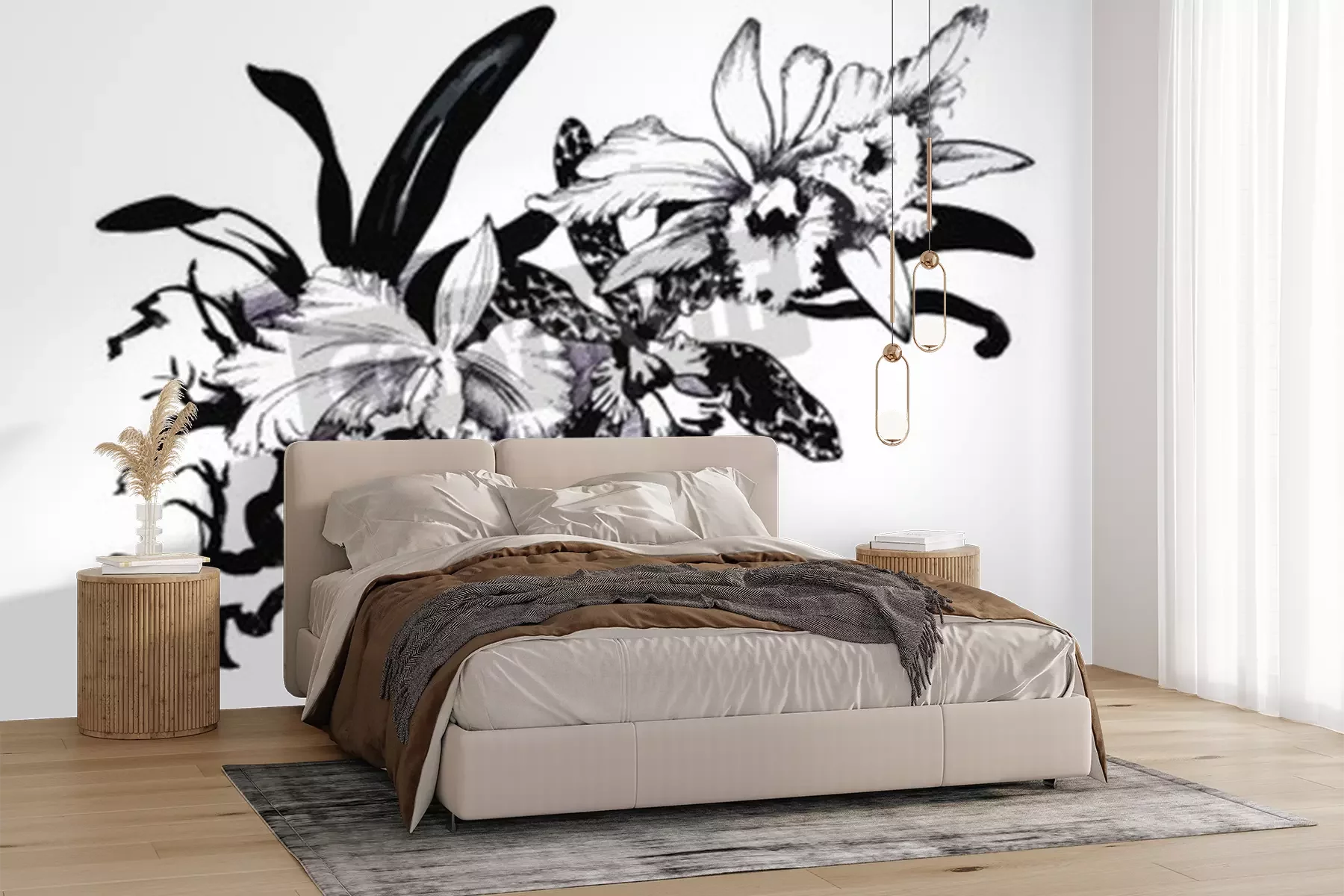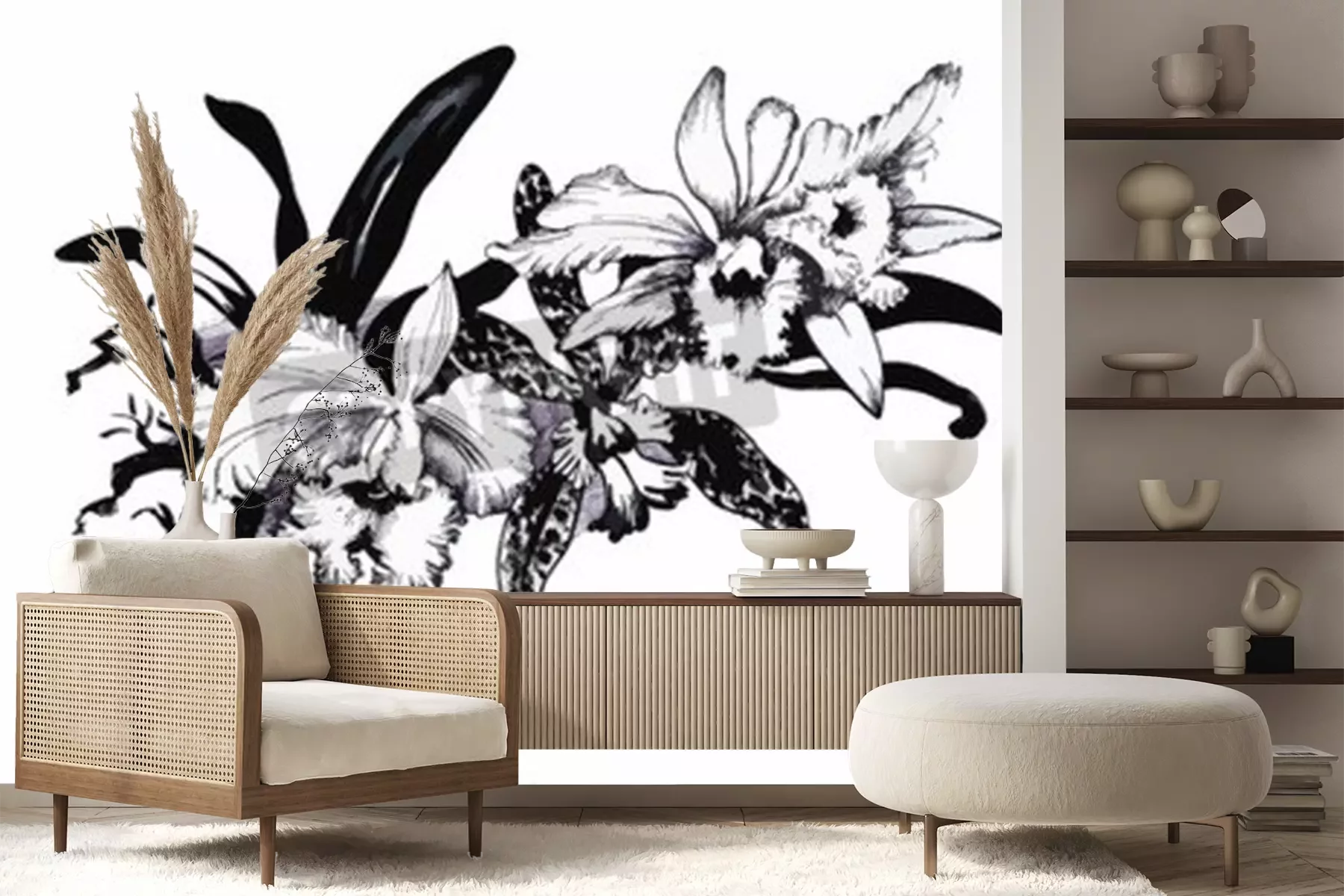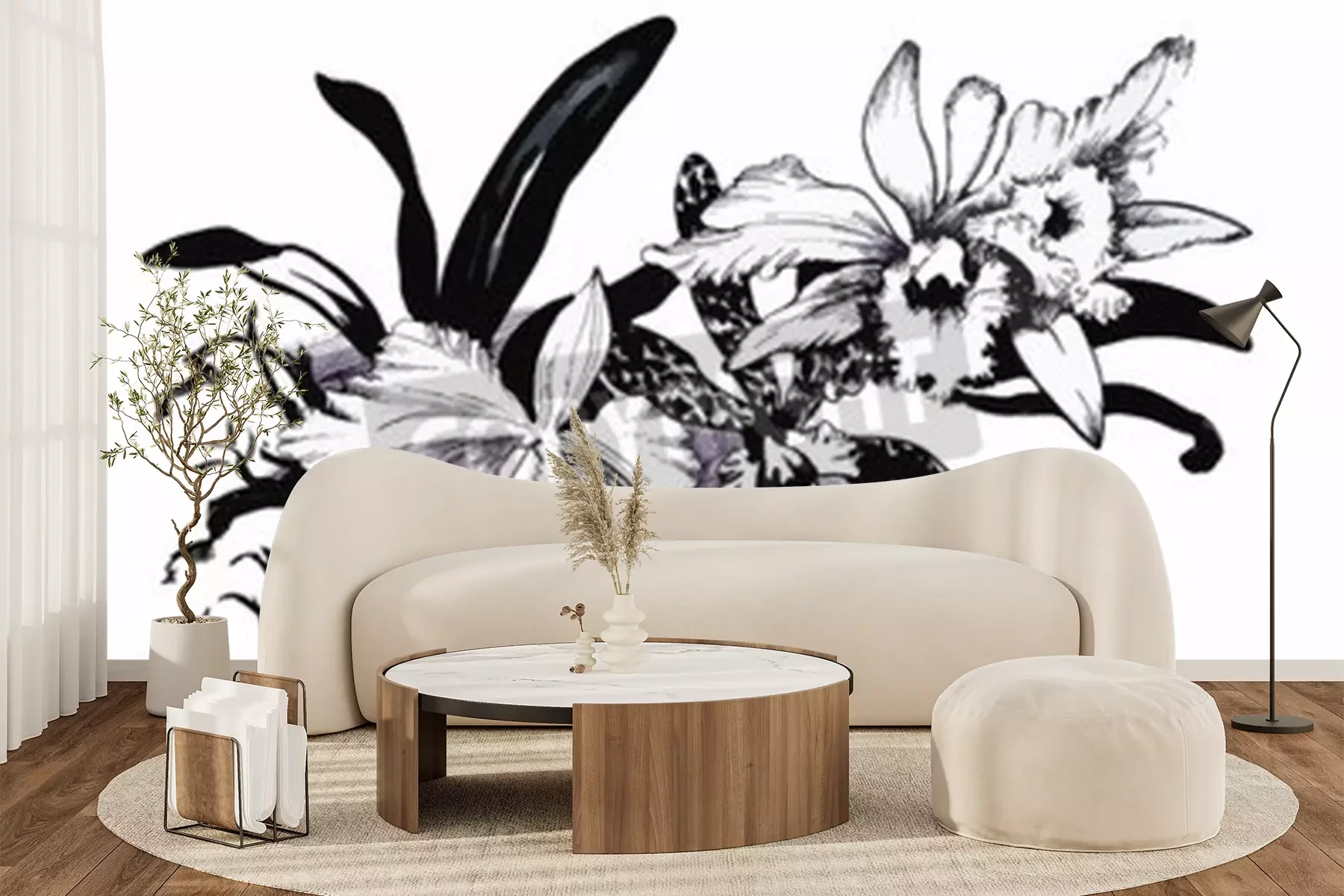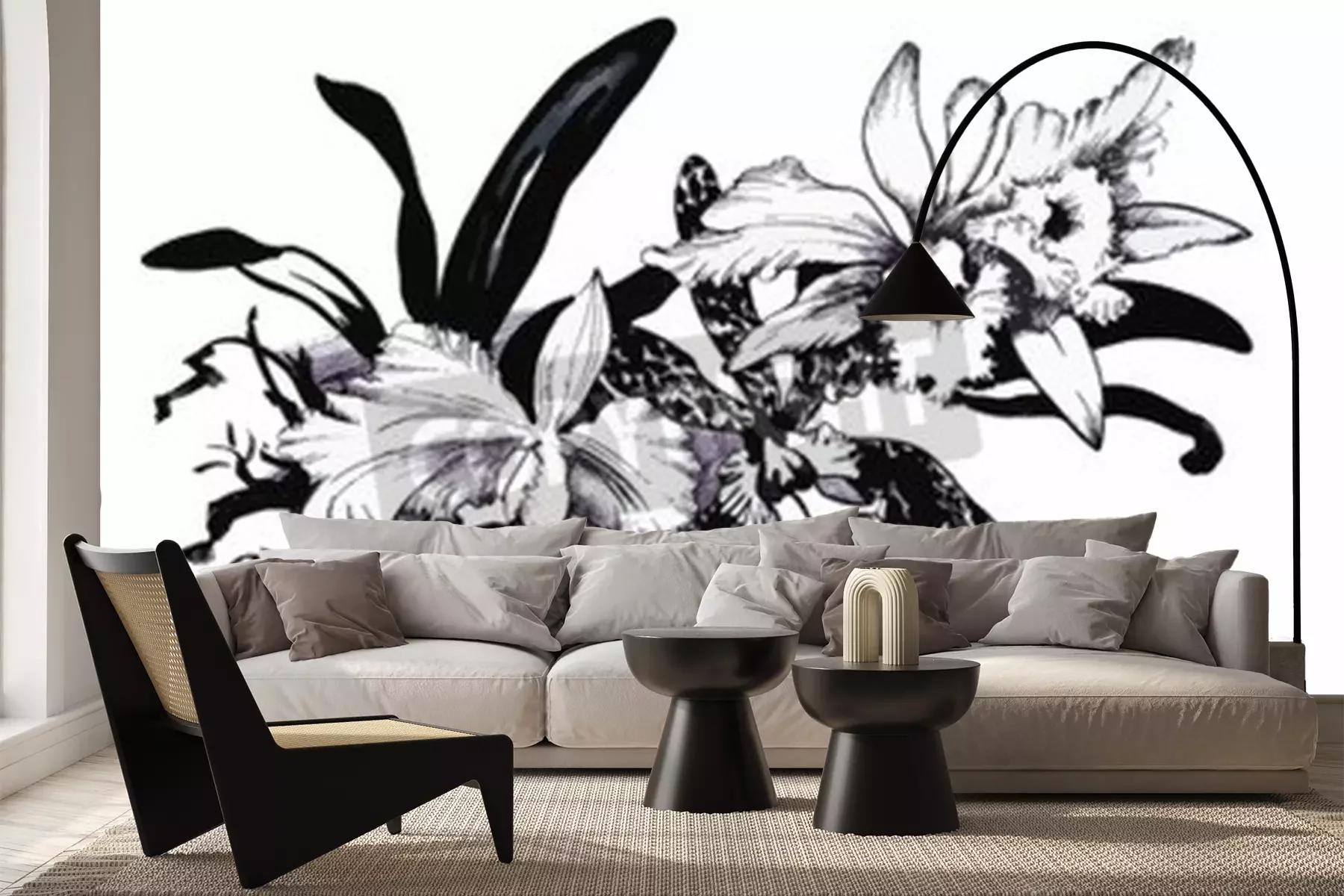 Sticker  Fleurs vintage sur une illustration en noir et blanc
