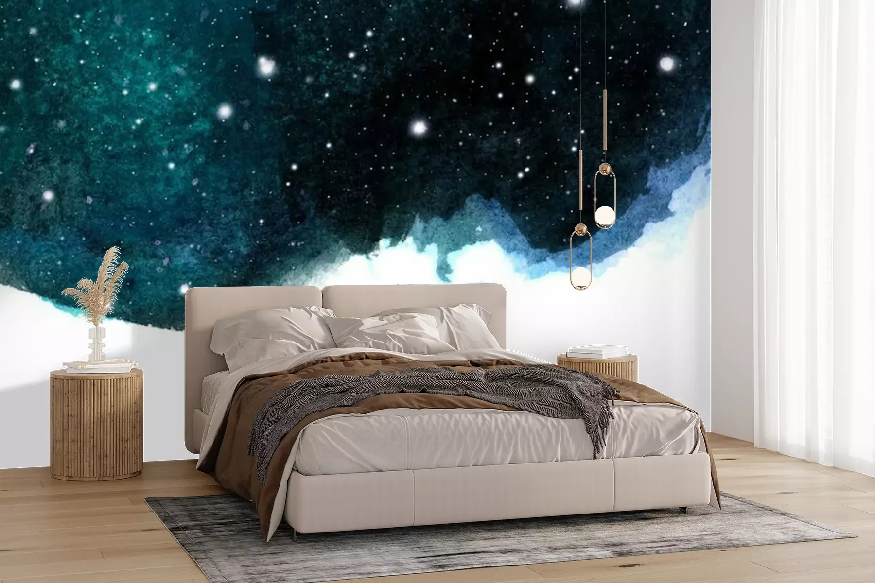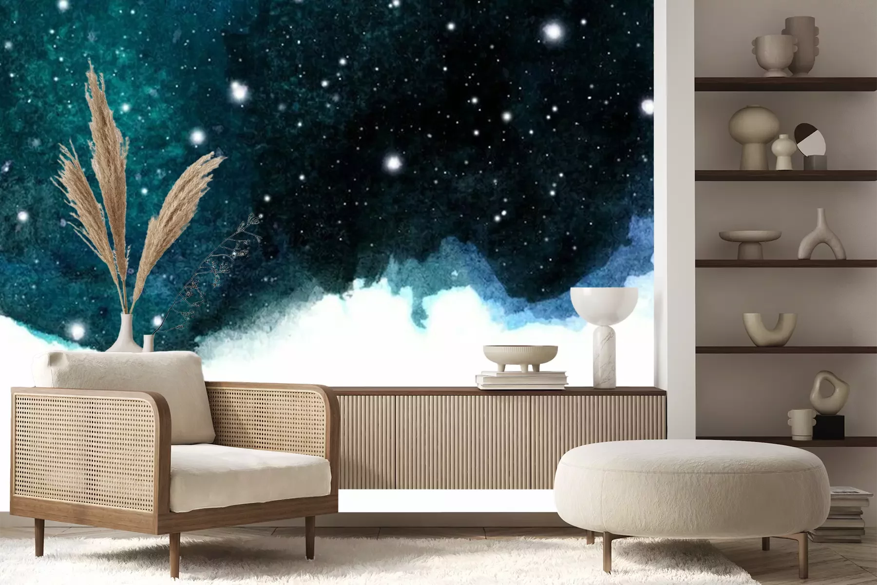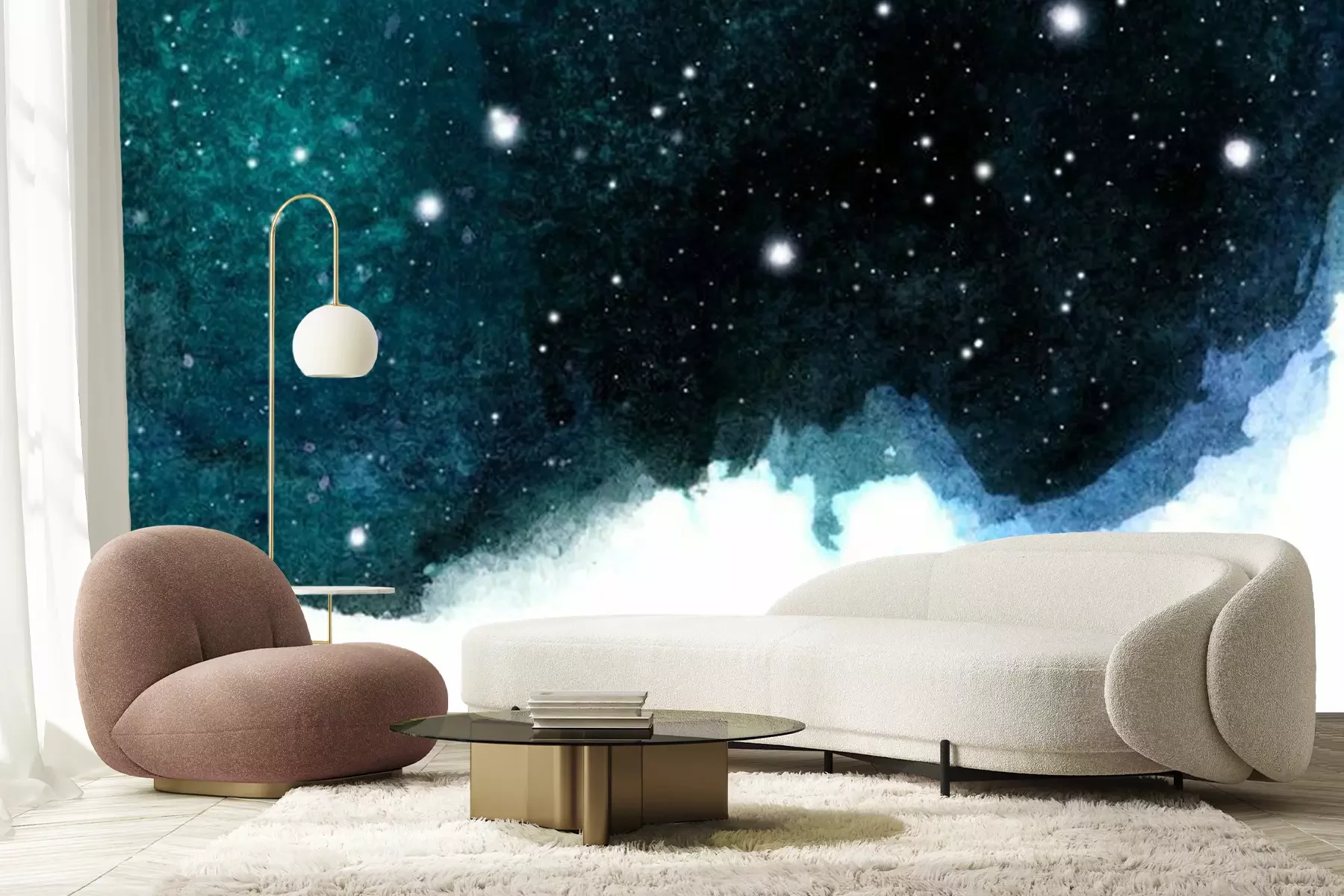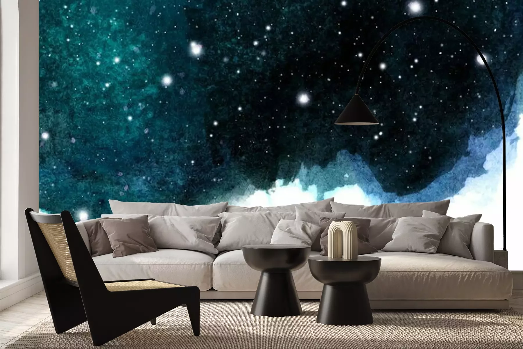 Sticker  Fond de ciel de nuit aquarelle avec des étoiles. mise en page cosmique avec un espace pour le texte.