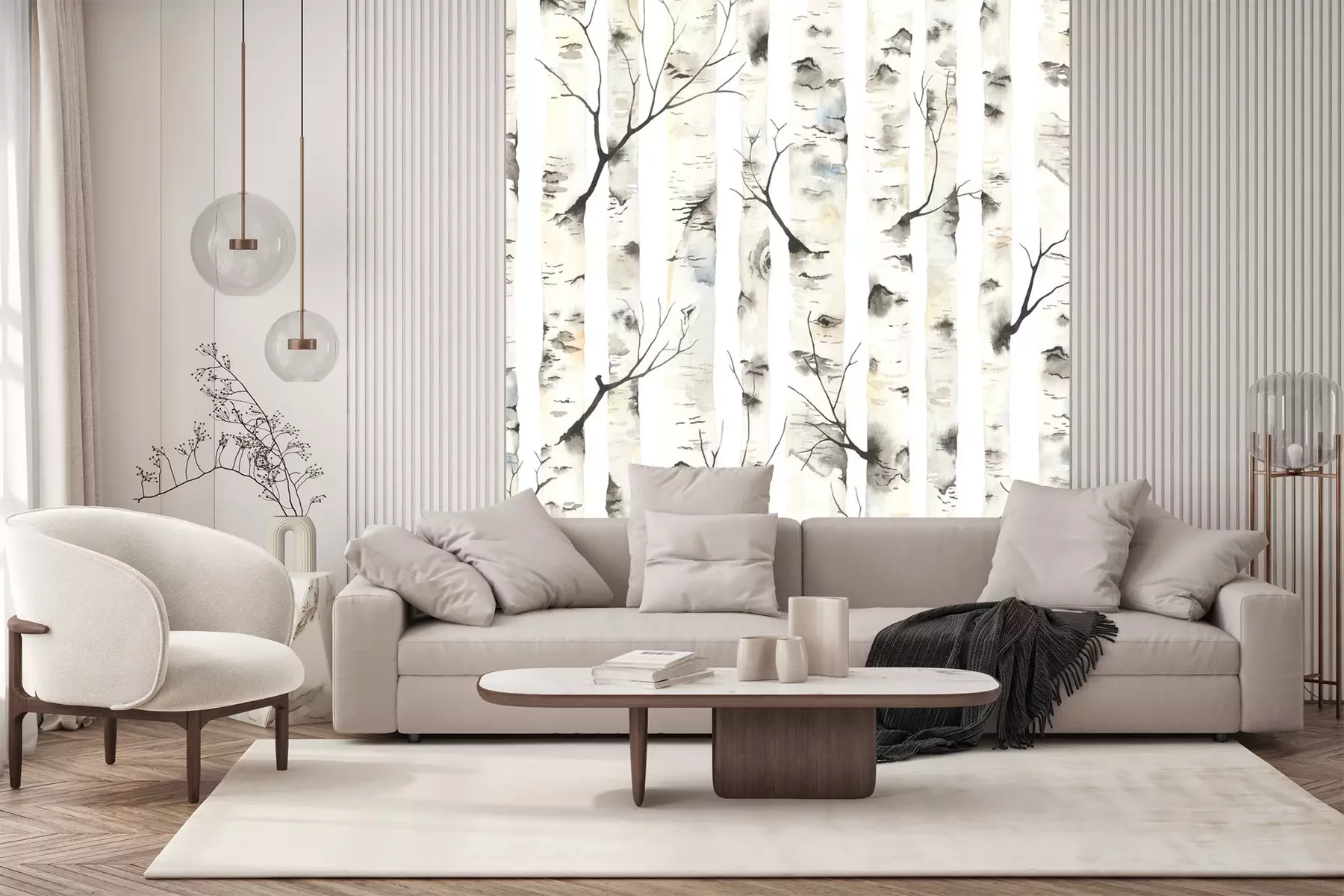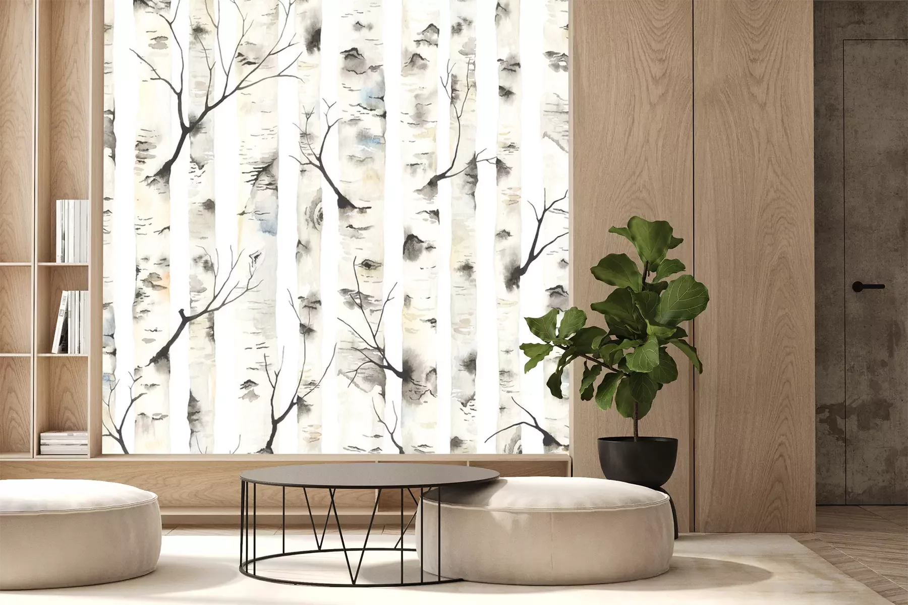 Sticker  Forêt de bouleaux peinte à l'aquarelle