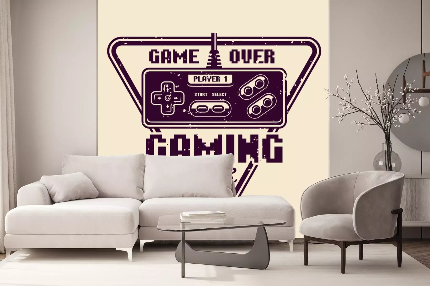 Sticker  Gaming club vector emblem with retro gamepad
