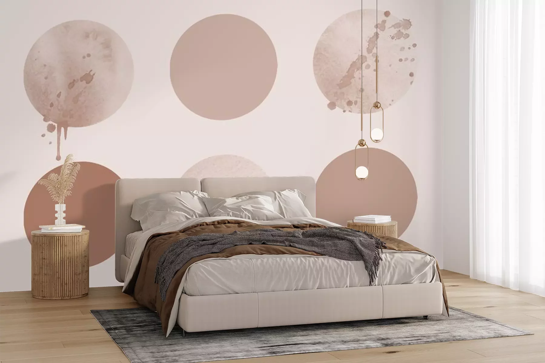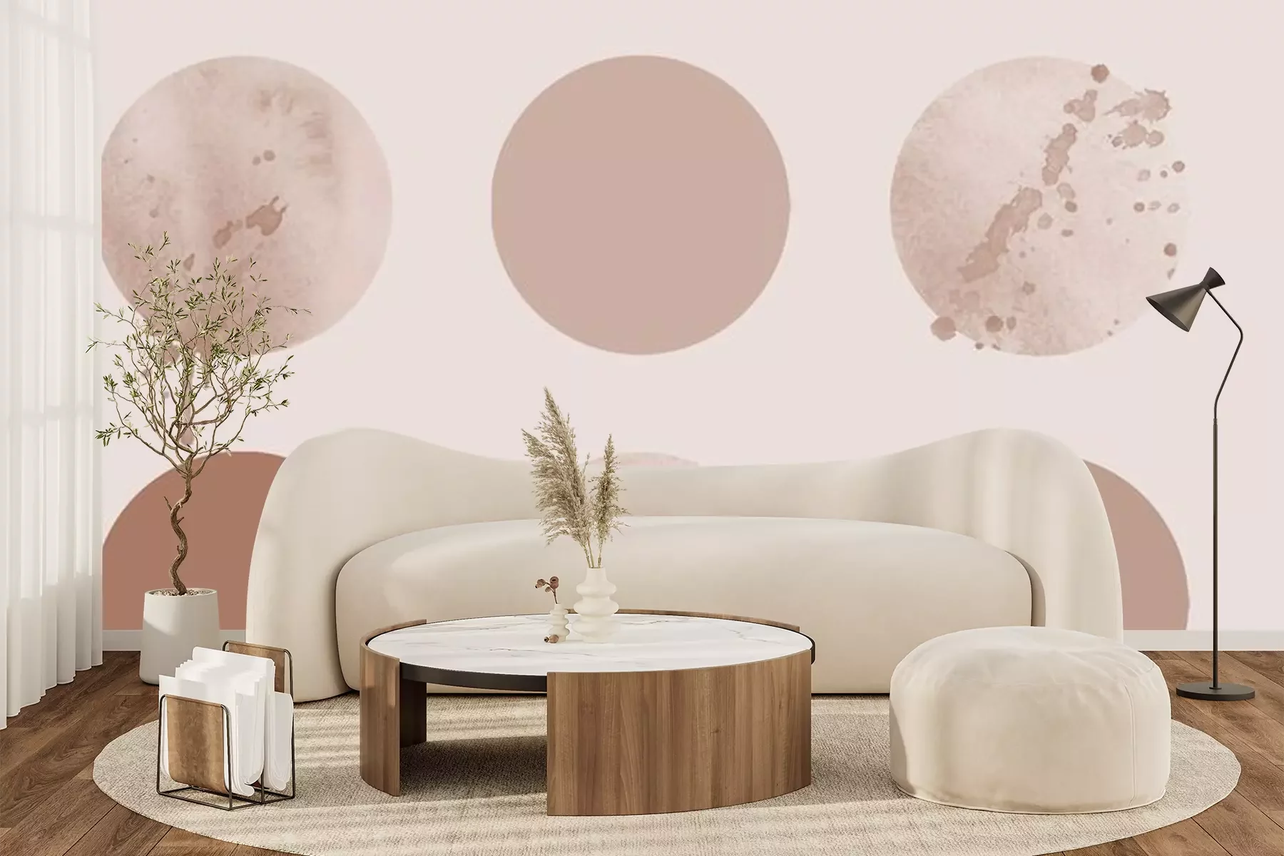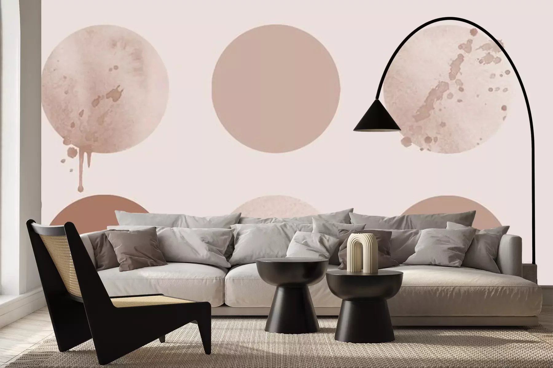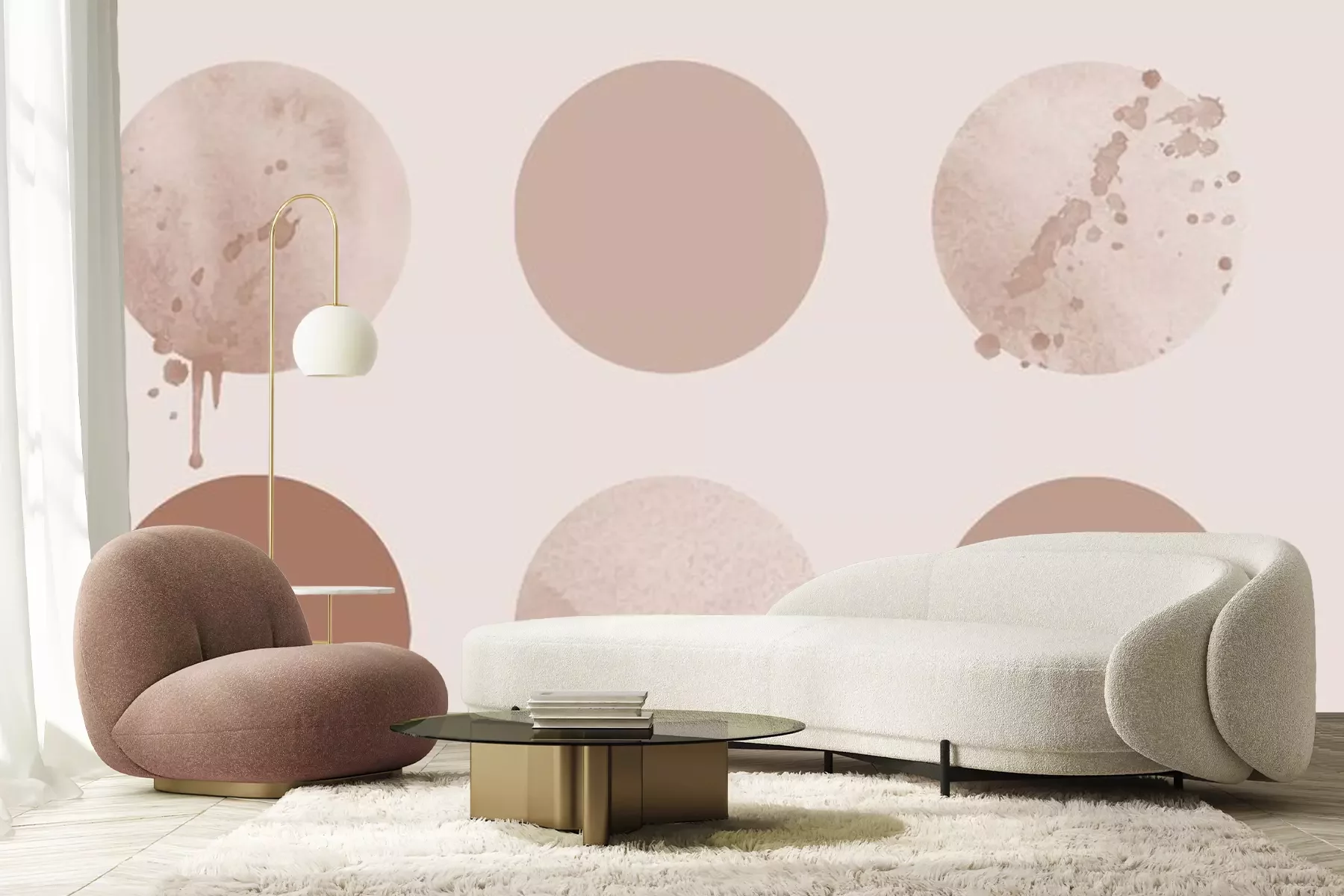 Sticker  Geometric Abstract Set of Circles, aesthetic beige contemporary background, mid century modern design.
