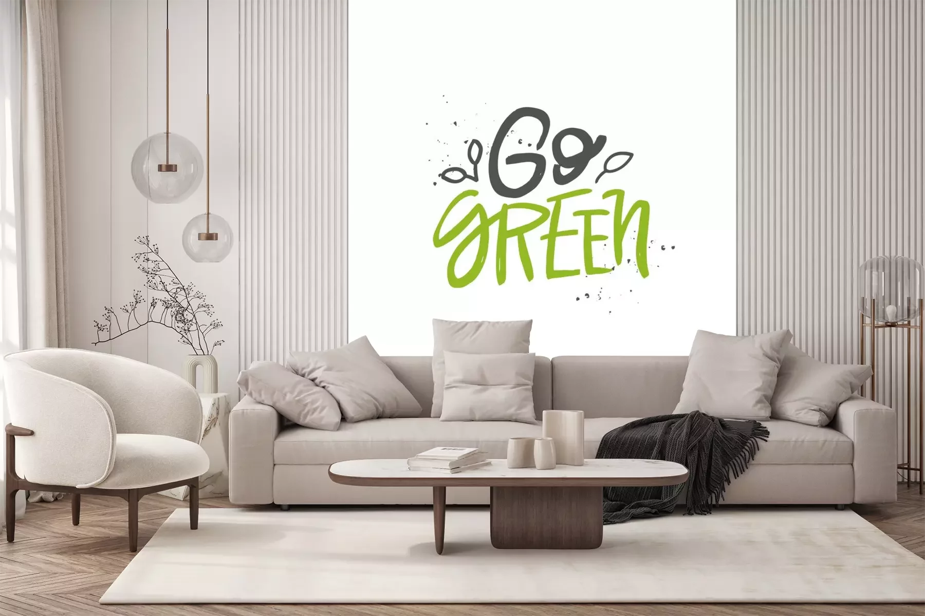 Sticker  Go green vector handwritten quote, motivational brush lettering inscription. Zero waste concept.