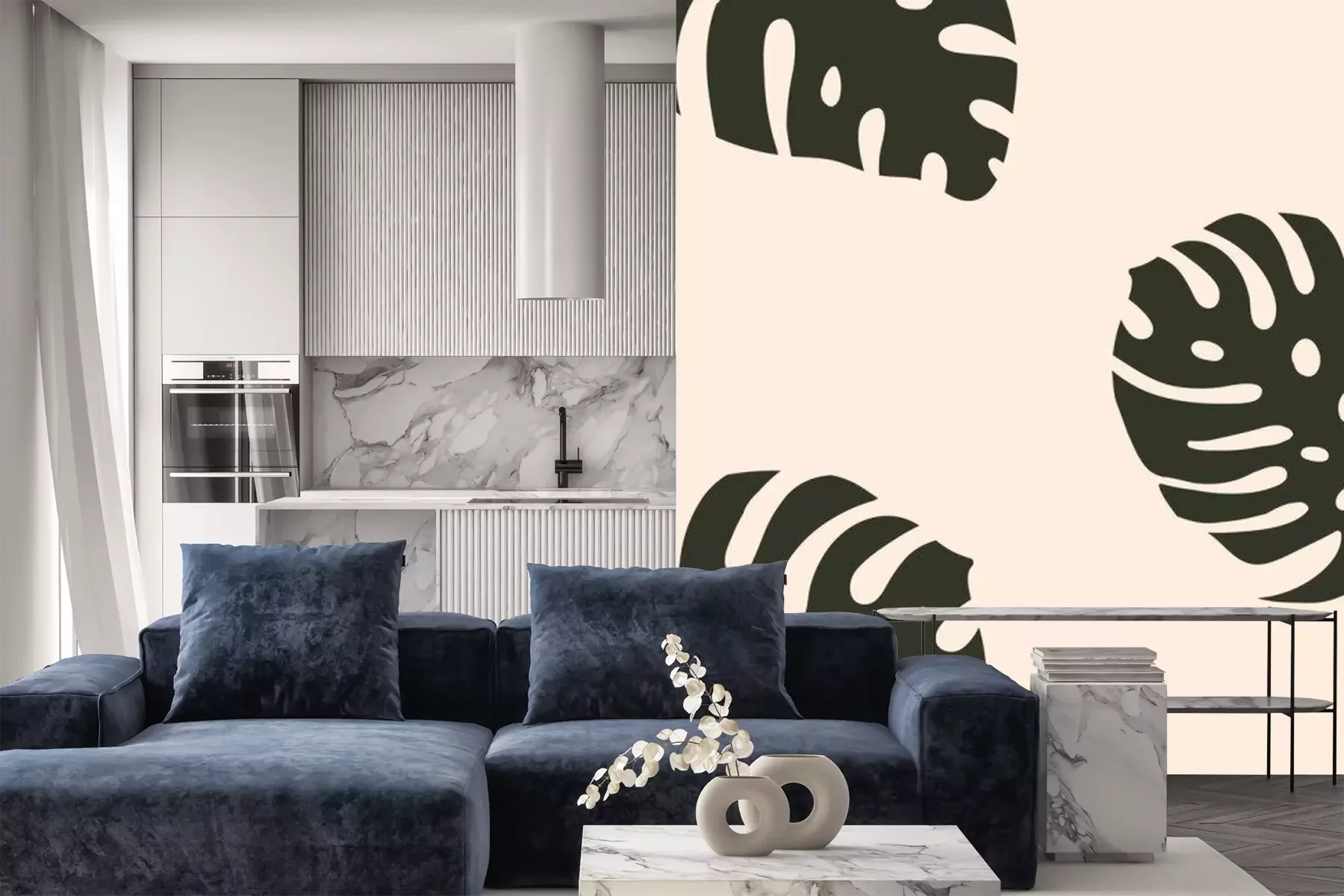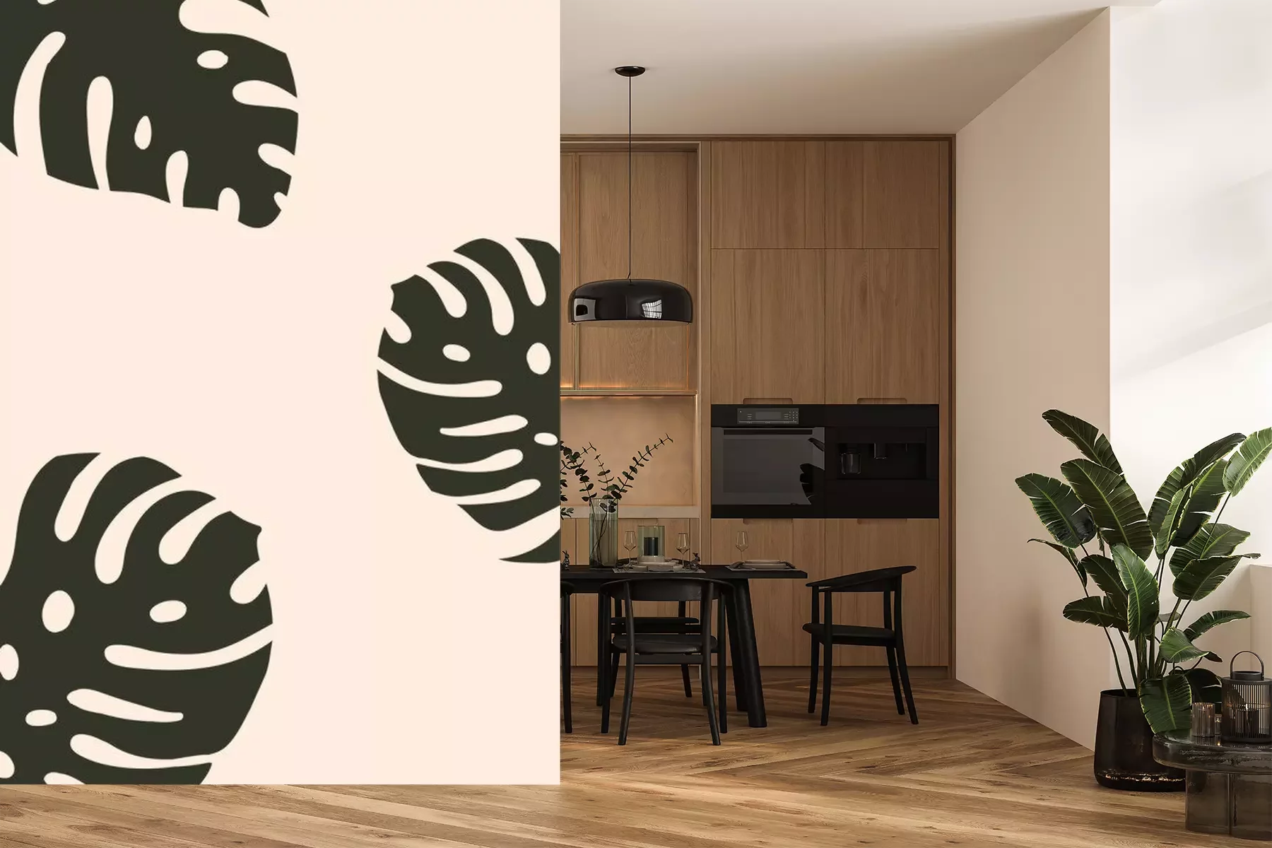 Sticker  Graphismes minimalistes avec des feuilles de monstera