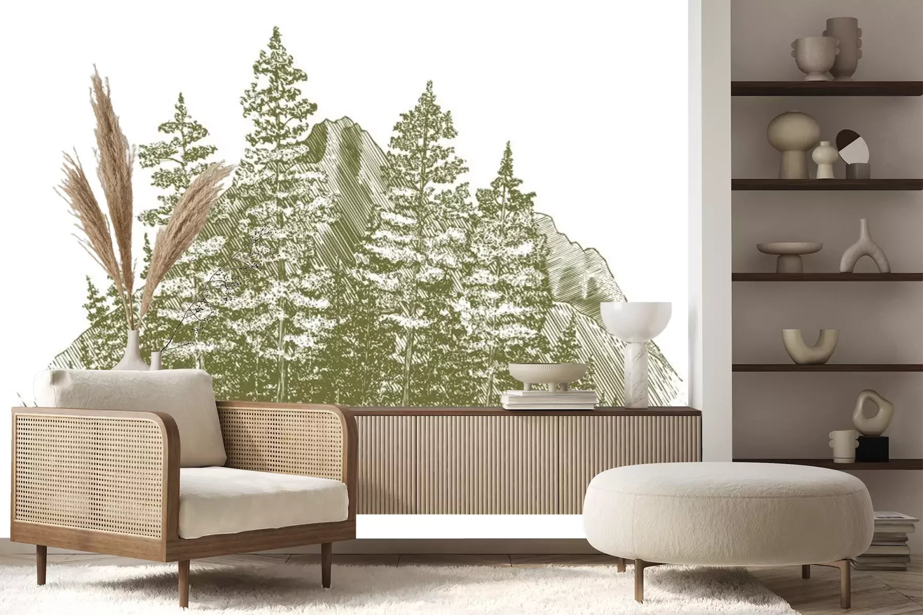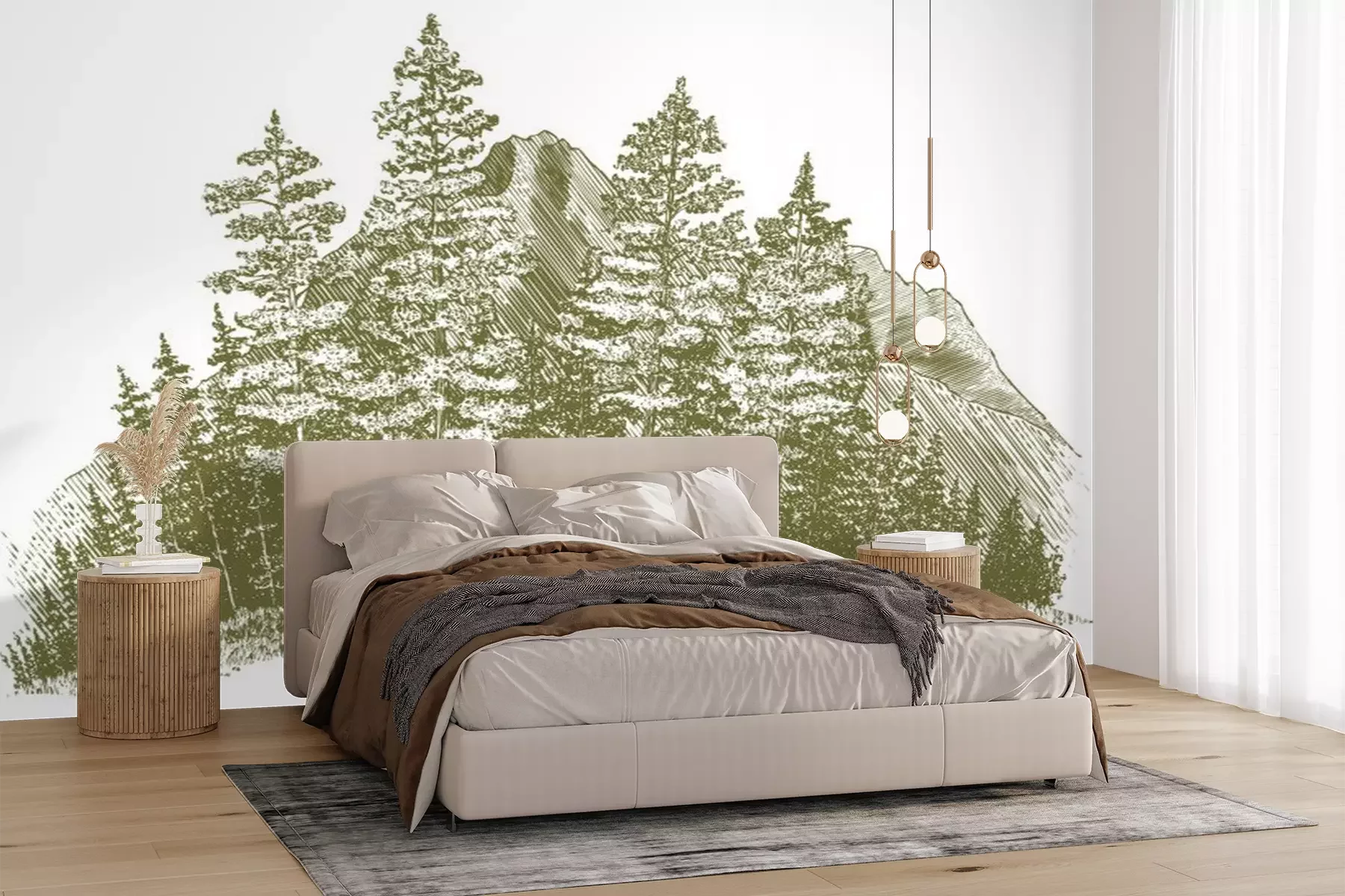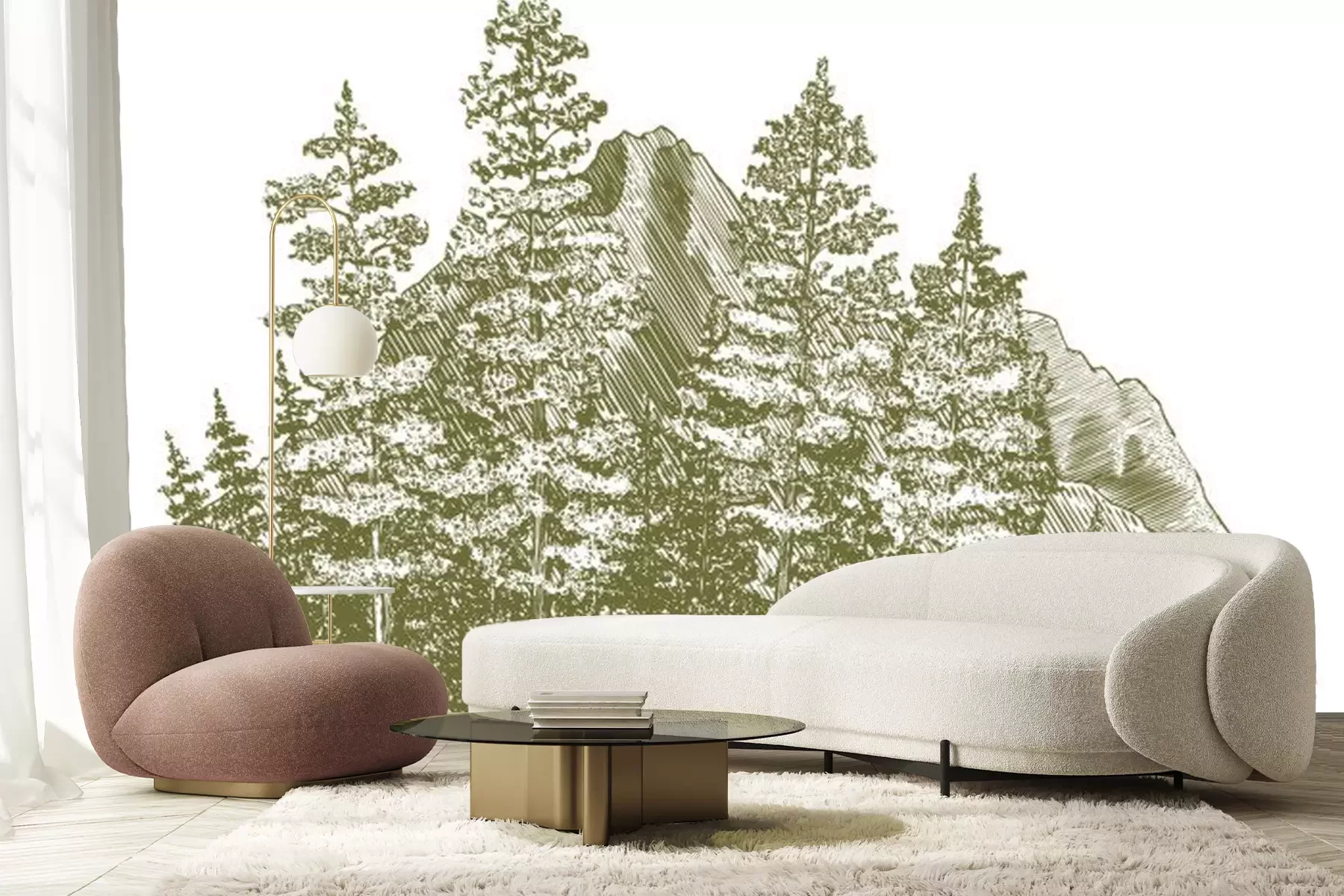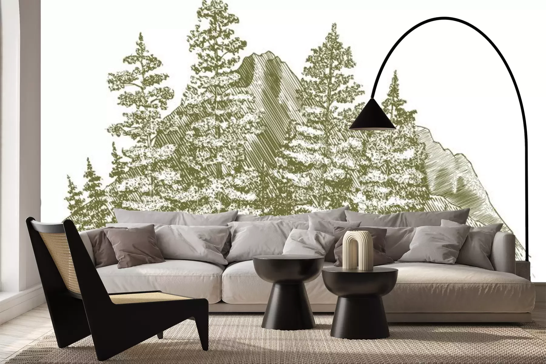 Sticker  Gravure sur bois Montagne Dessin