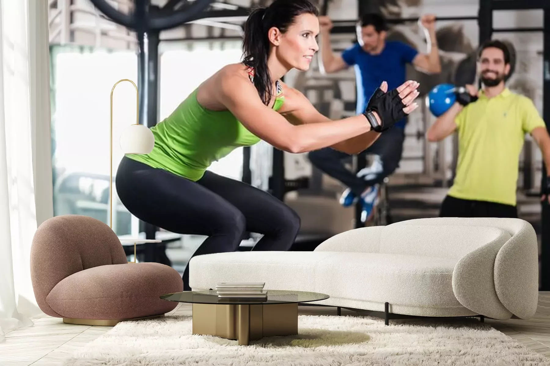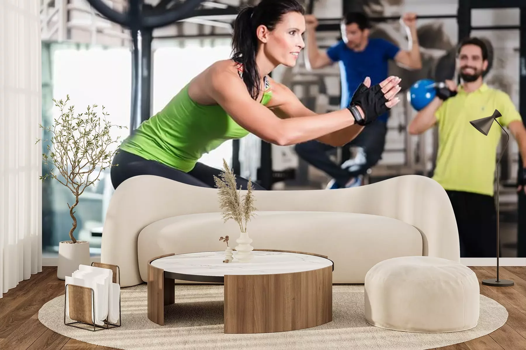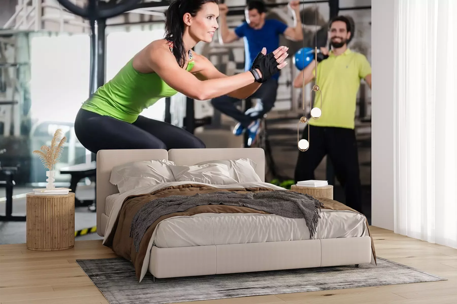 Sticker  Gruppe Männer und Frau beim Formation fonctionnelle dans Fitnessstudio
